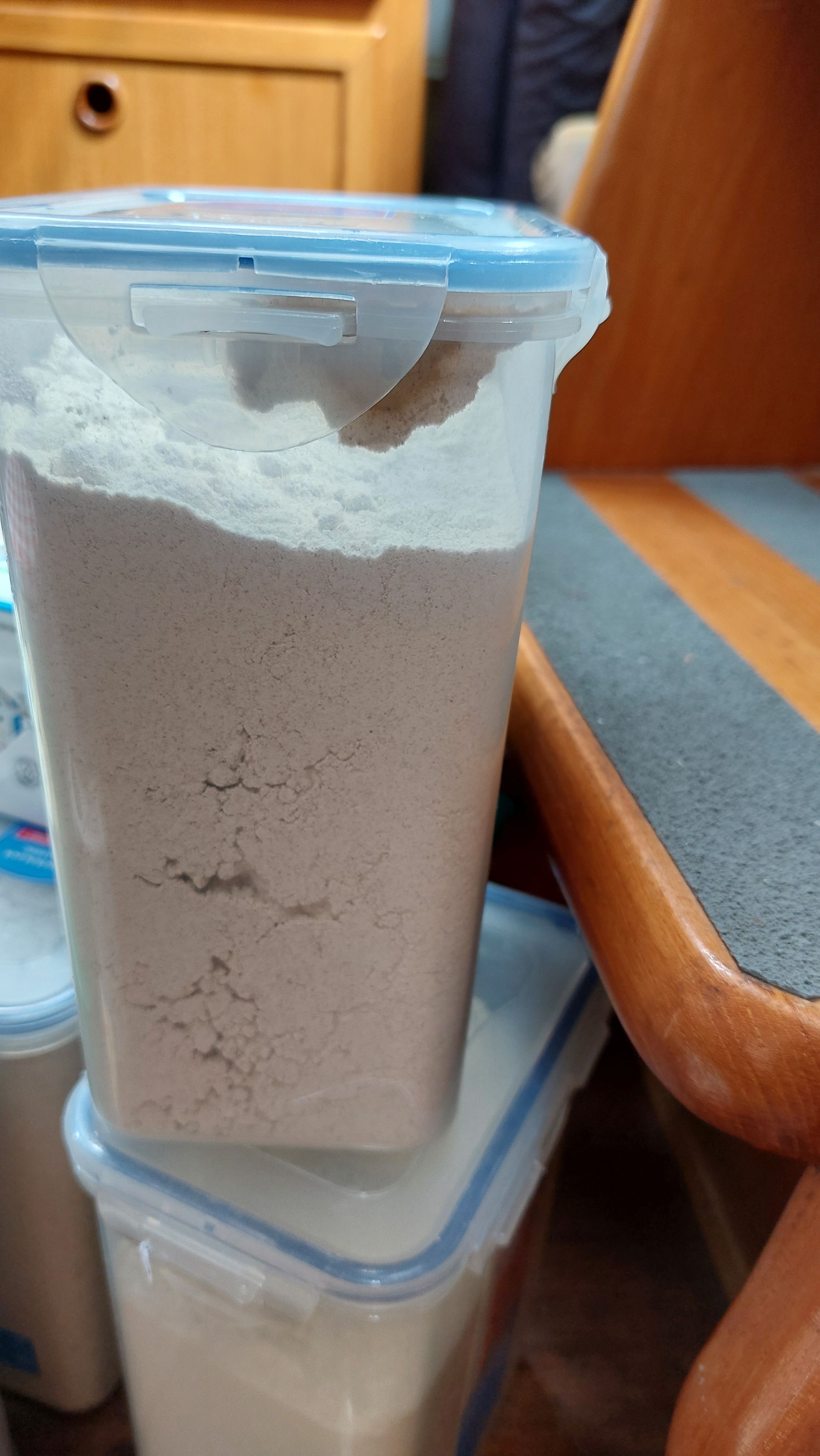 Eine Packung Knäckebrot und meine letzte Brotbackmischung sind Matsch. Auch in den laut Hersteller wasserdichten Lock&Lock Dosen ist das Mehl am Deckel nass. Zum Glück sind nur ein paar Placken entlang des Deckels betroffen und das nasse Mehl hat die wie eine Dichtung kein weiteres Wasser eingelassen.