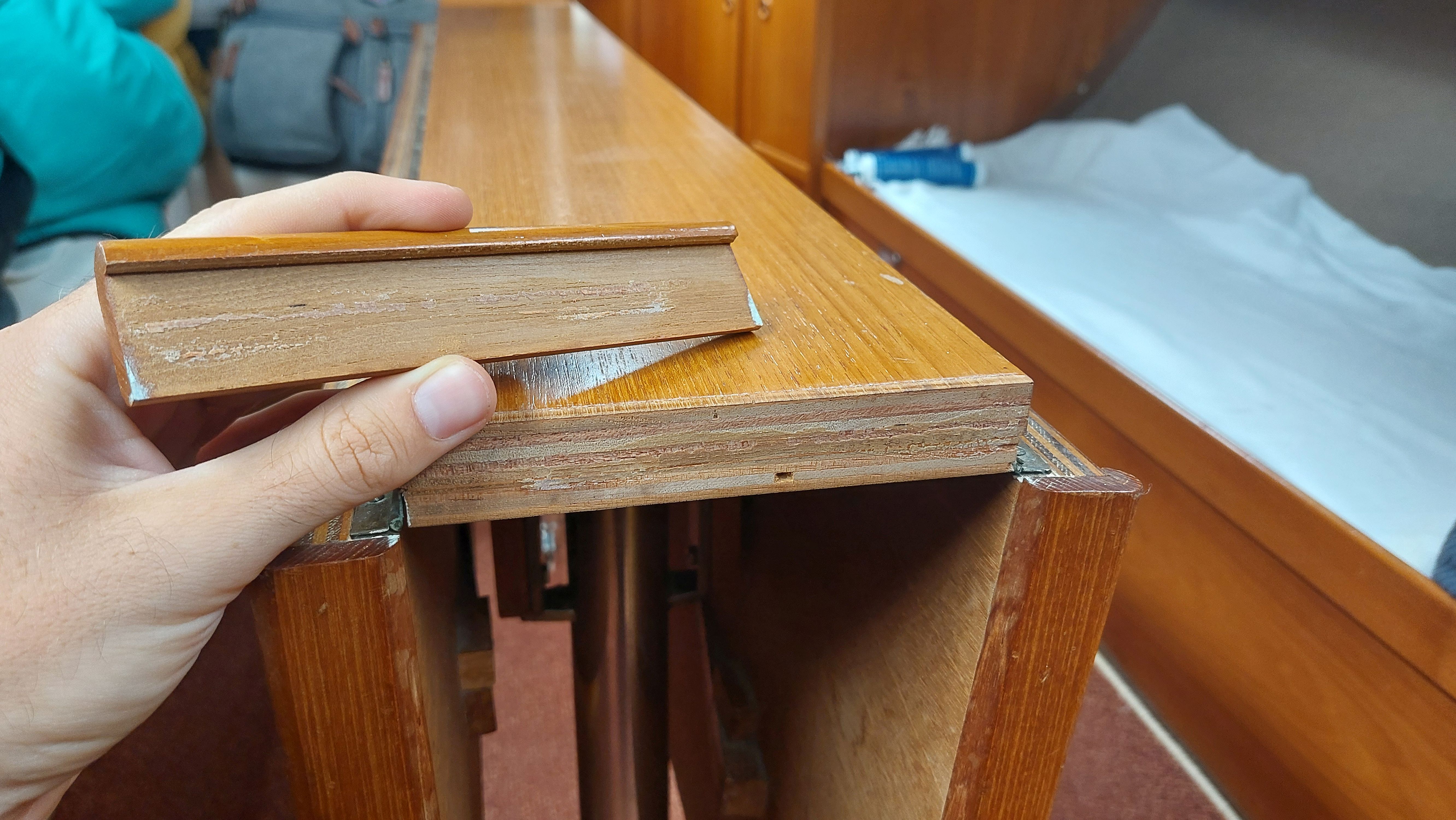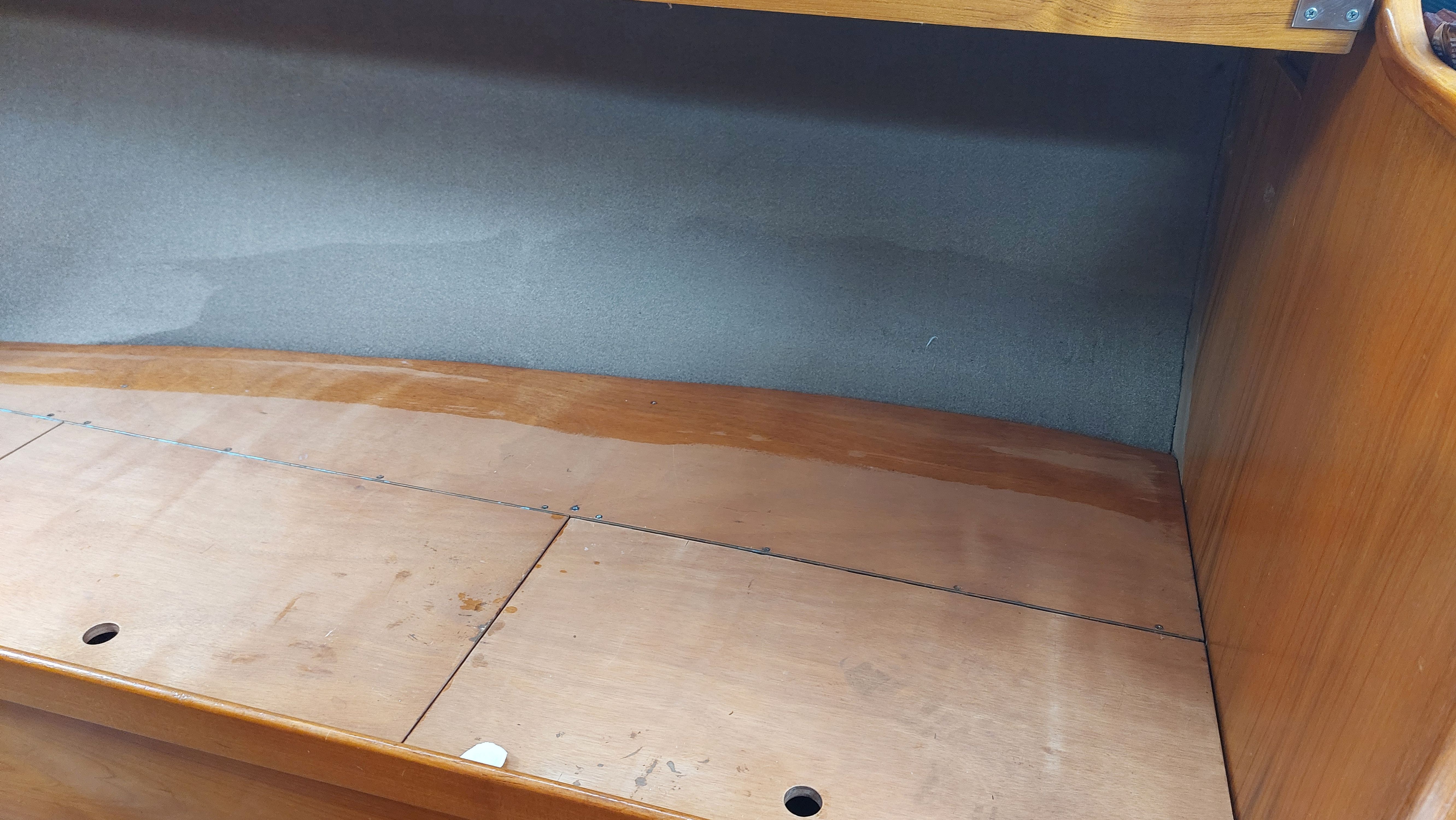 Mittwoch ziehe ich die Tankdeckel noch einmal fest und baue anschließend das Boot wieder zusammen. Bei dem Hin und Her mit dem Salontisch reiße ich am Ende noch einen Teil der Schlingerleiste ab.