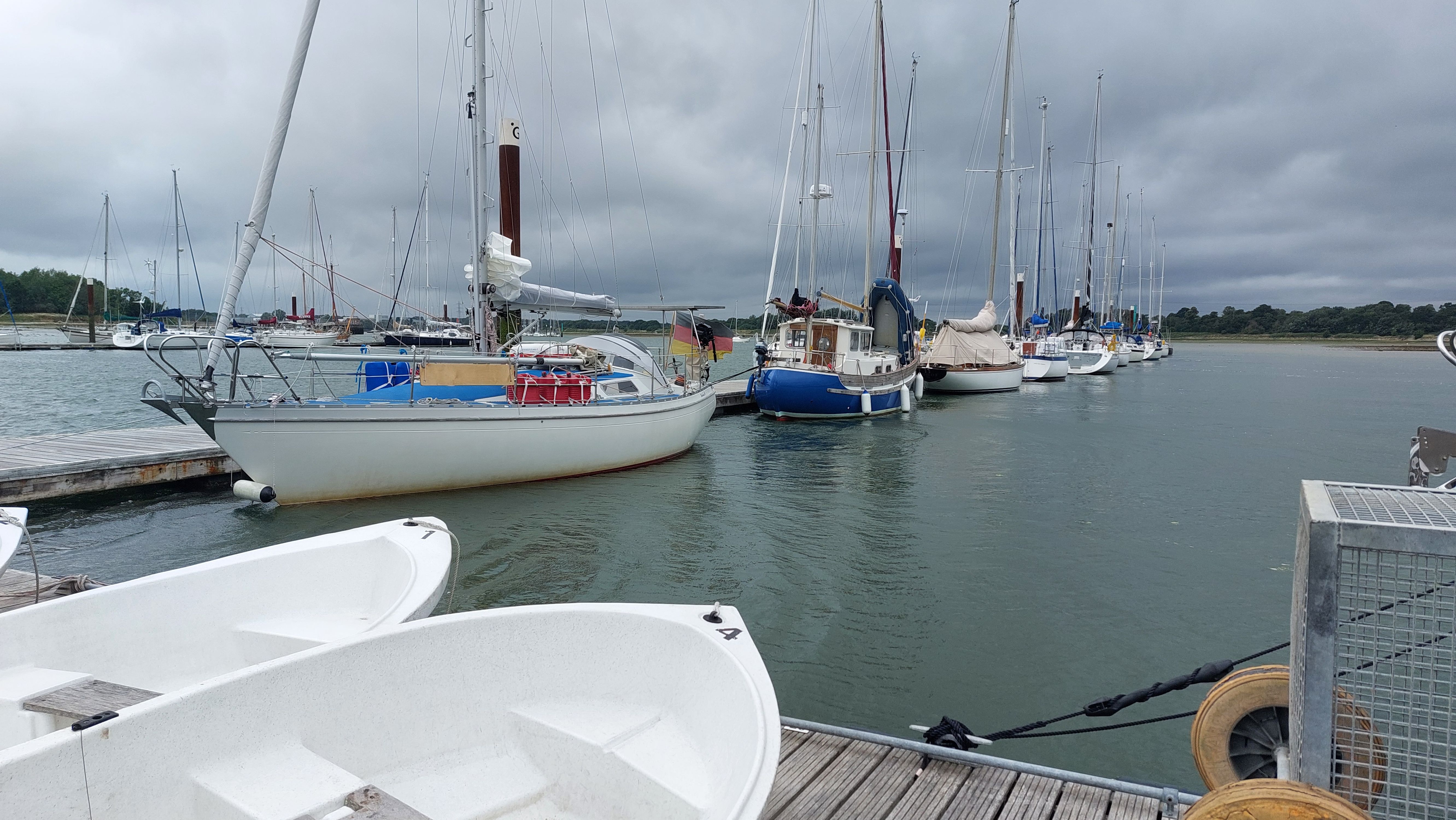 in einer ungünstigen Ecke. Hinter meiner Lücke liegen bereits andere Boote, voraus