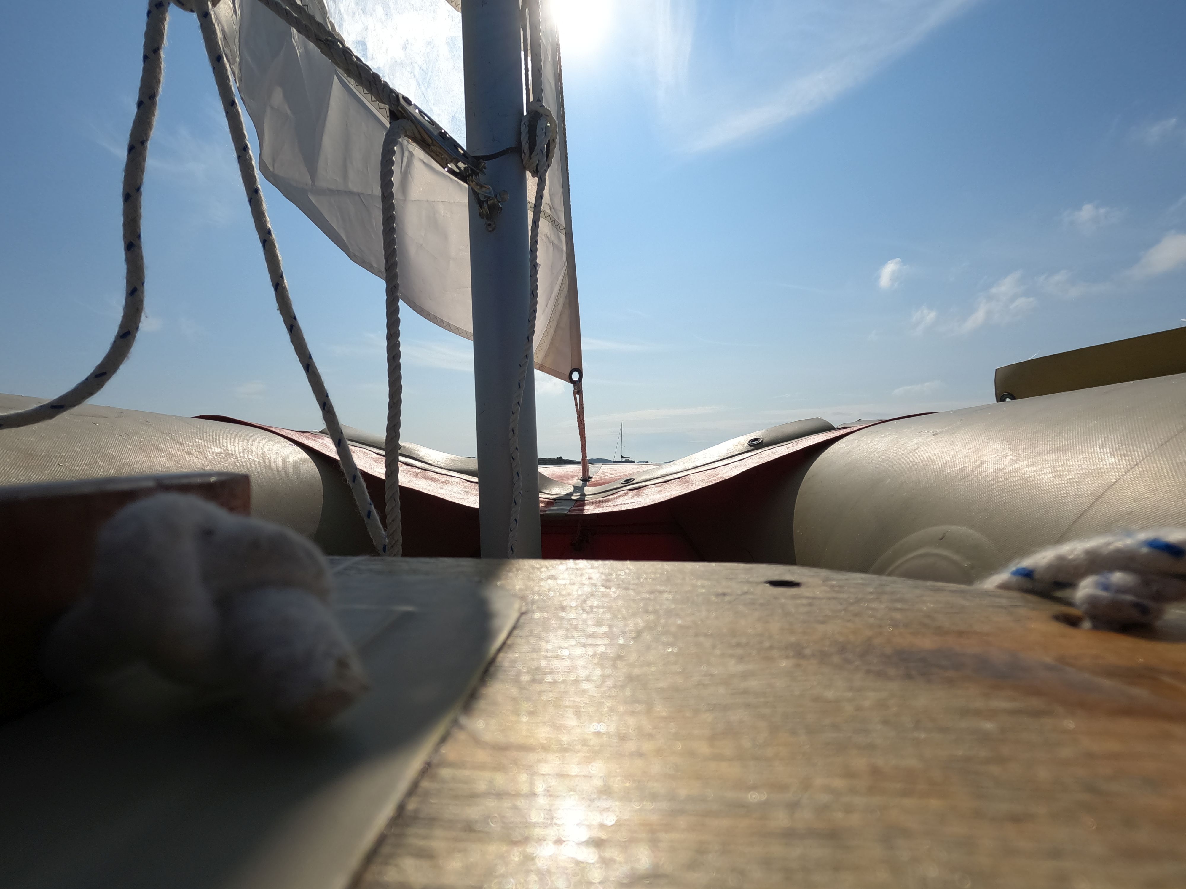 Donnerstag baue ich das Schlauchboot auf und stelle den Mast.