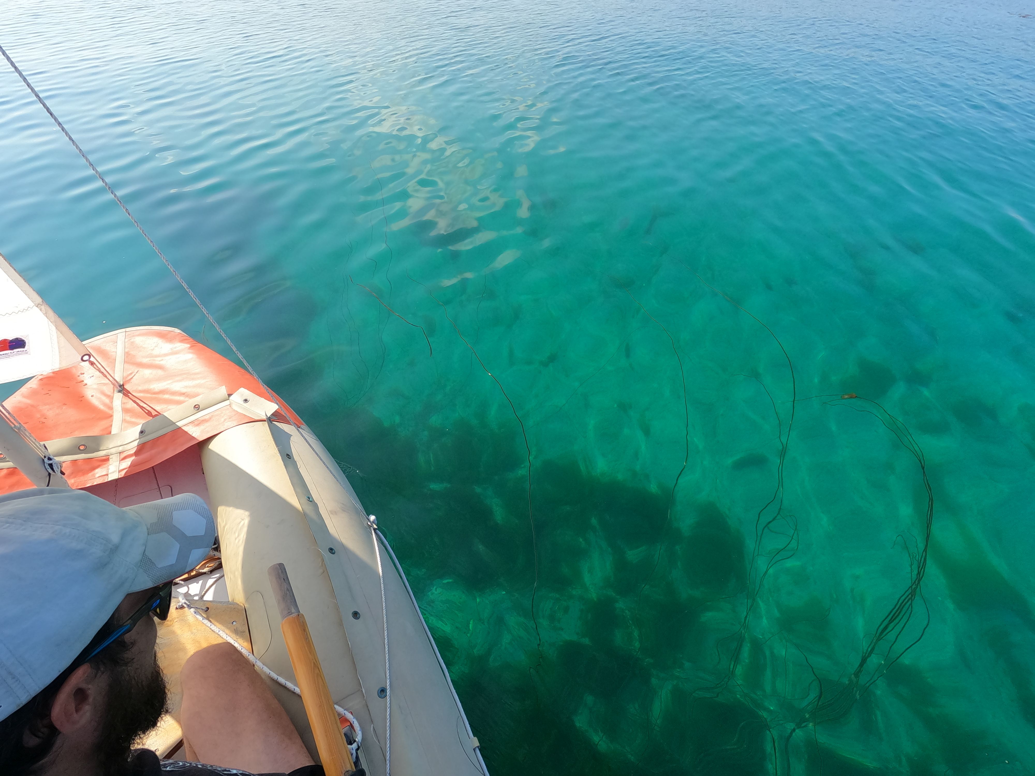 Bei Schwachwind, Sonne und sommerlichen Temperaturen drehe ich erst eine Testrunde um Lua herum und bin überrascht, wie gut selbst Kreuzen funktioniert.