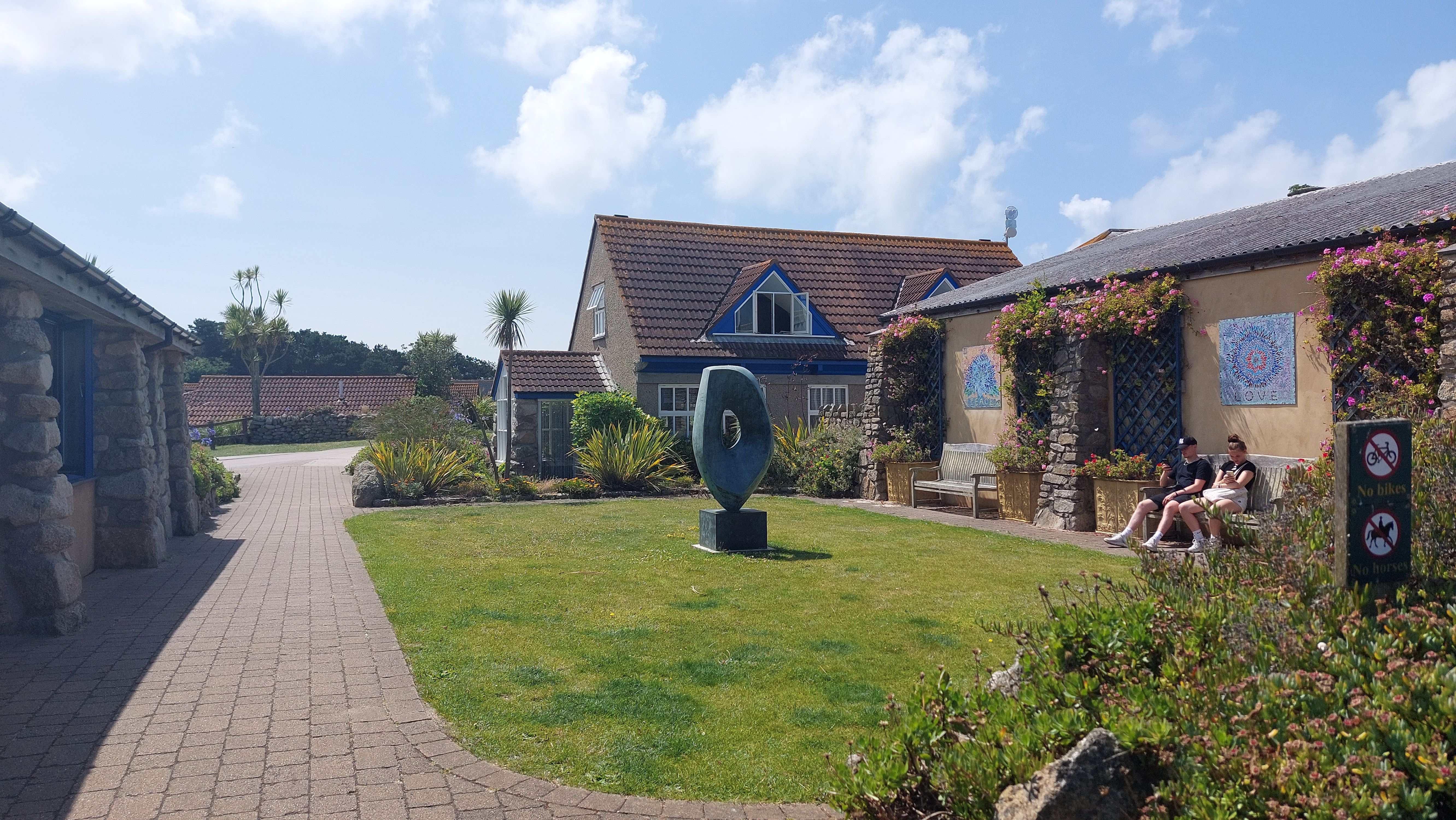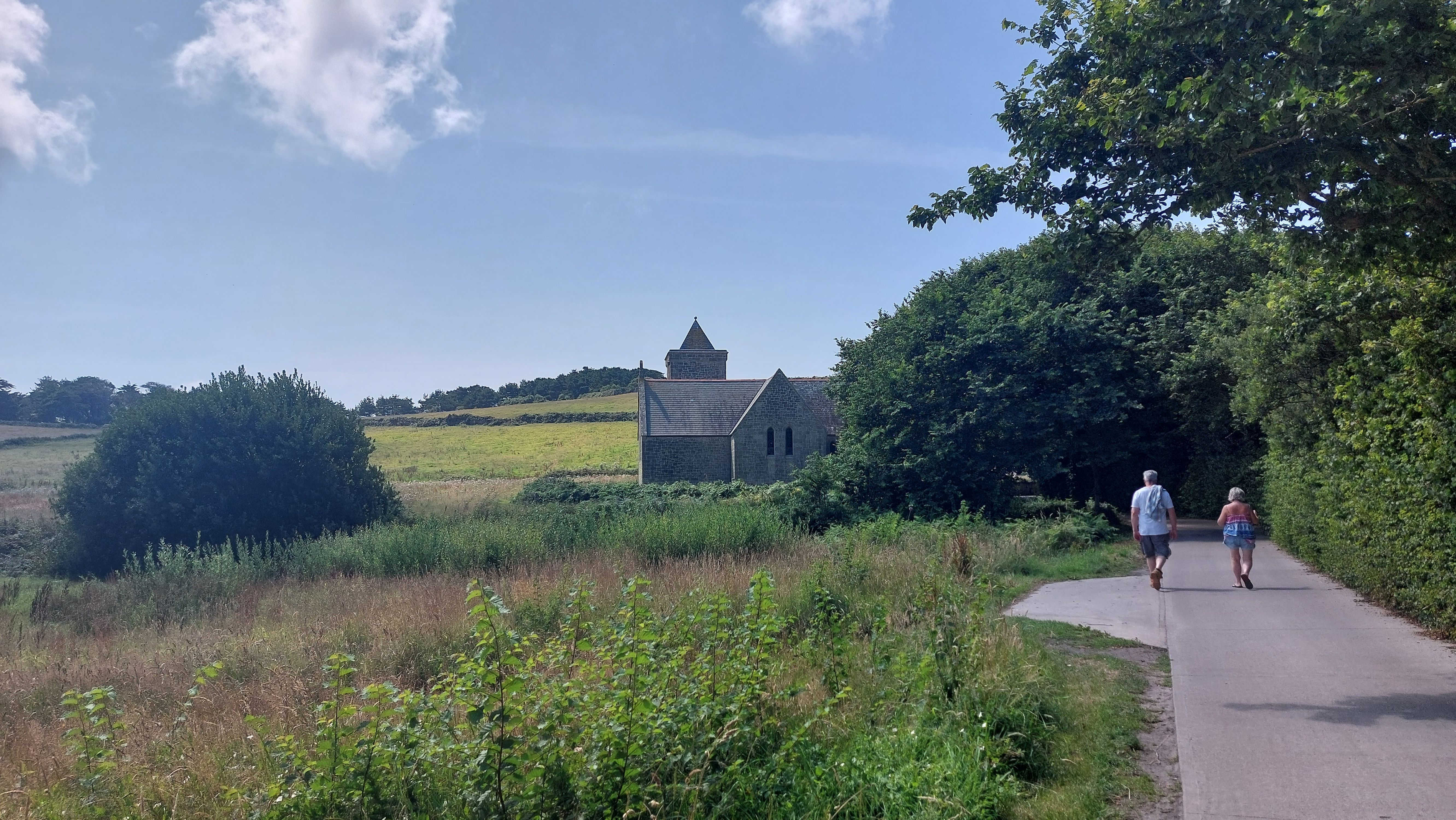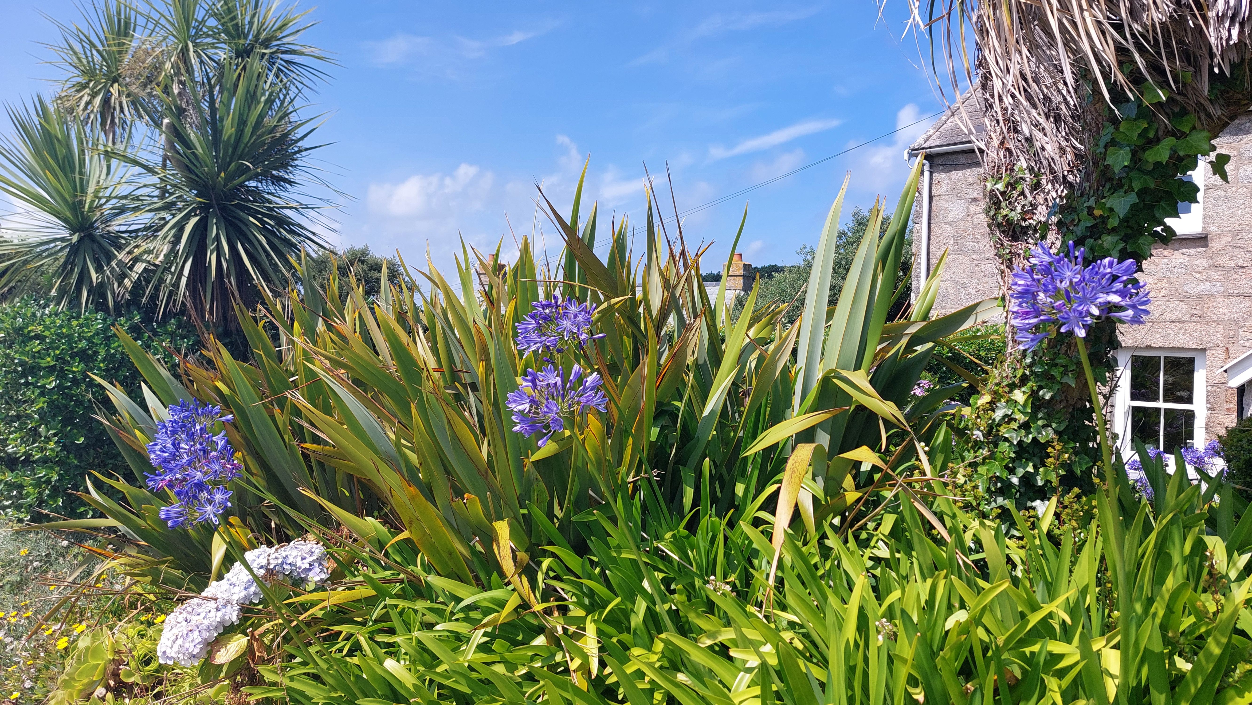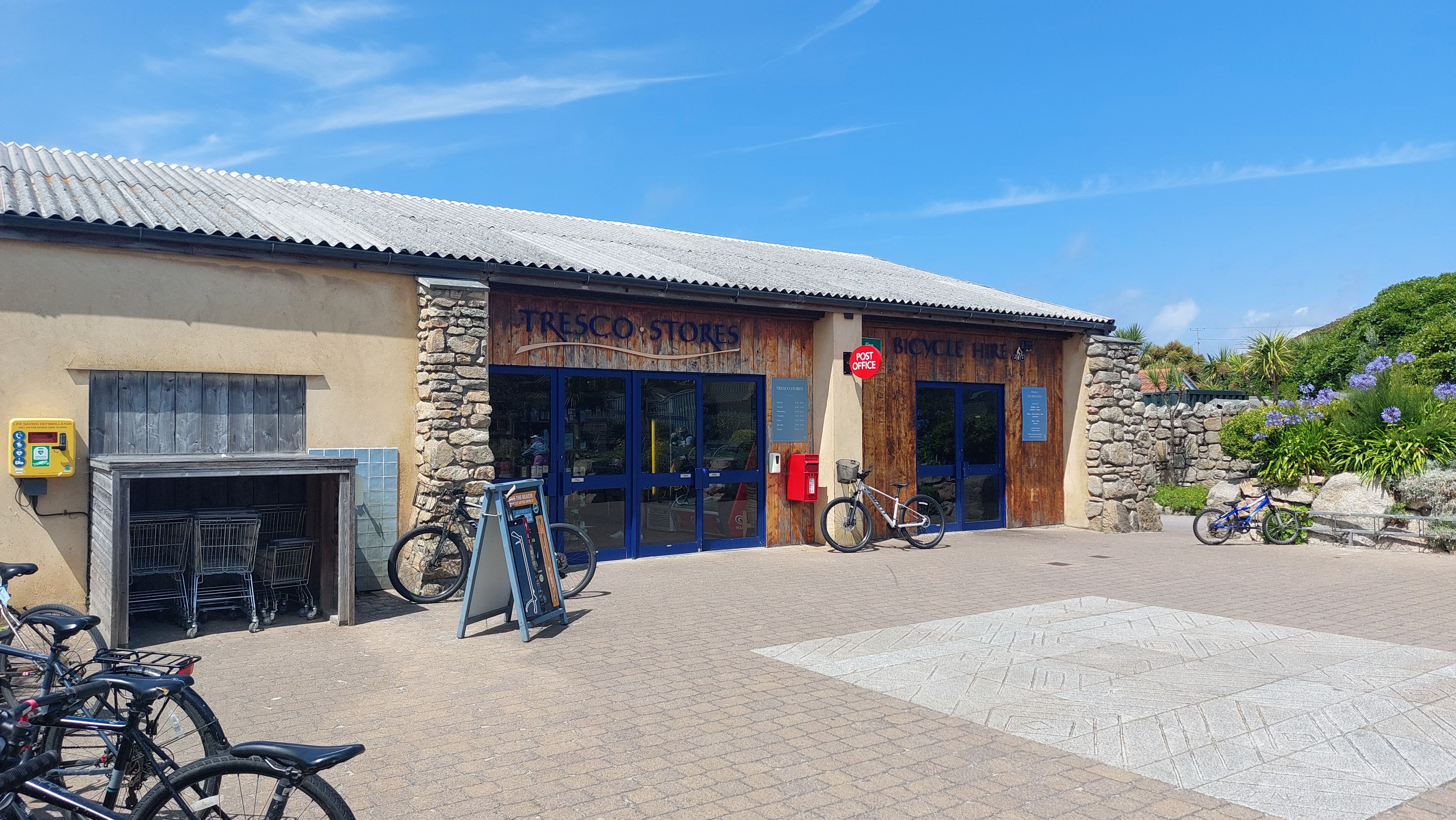 Der kleine Laden ist auf der anderen Seite von Tresco in New Grimsby. Der Weg führt vorbei an Feldern und Weiden, einer alten Kirche, hübschen Häuschen und jeder Menge farbenfroher Blumen und Pflanzen. Nach England sieht das hier nicht aus.