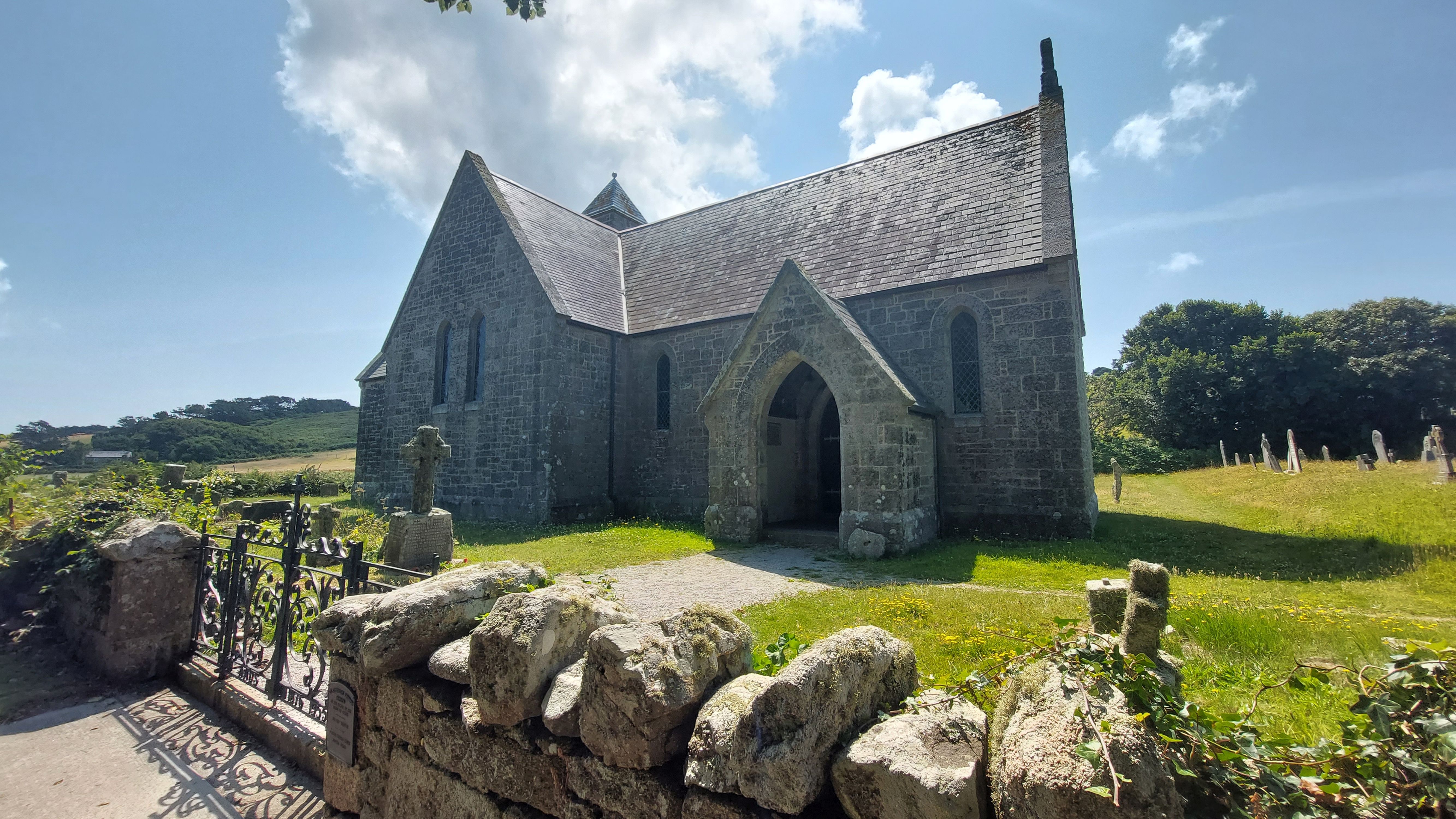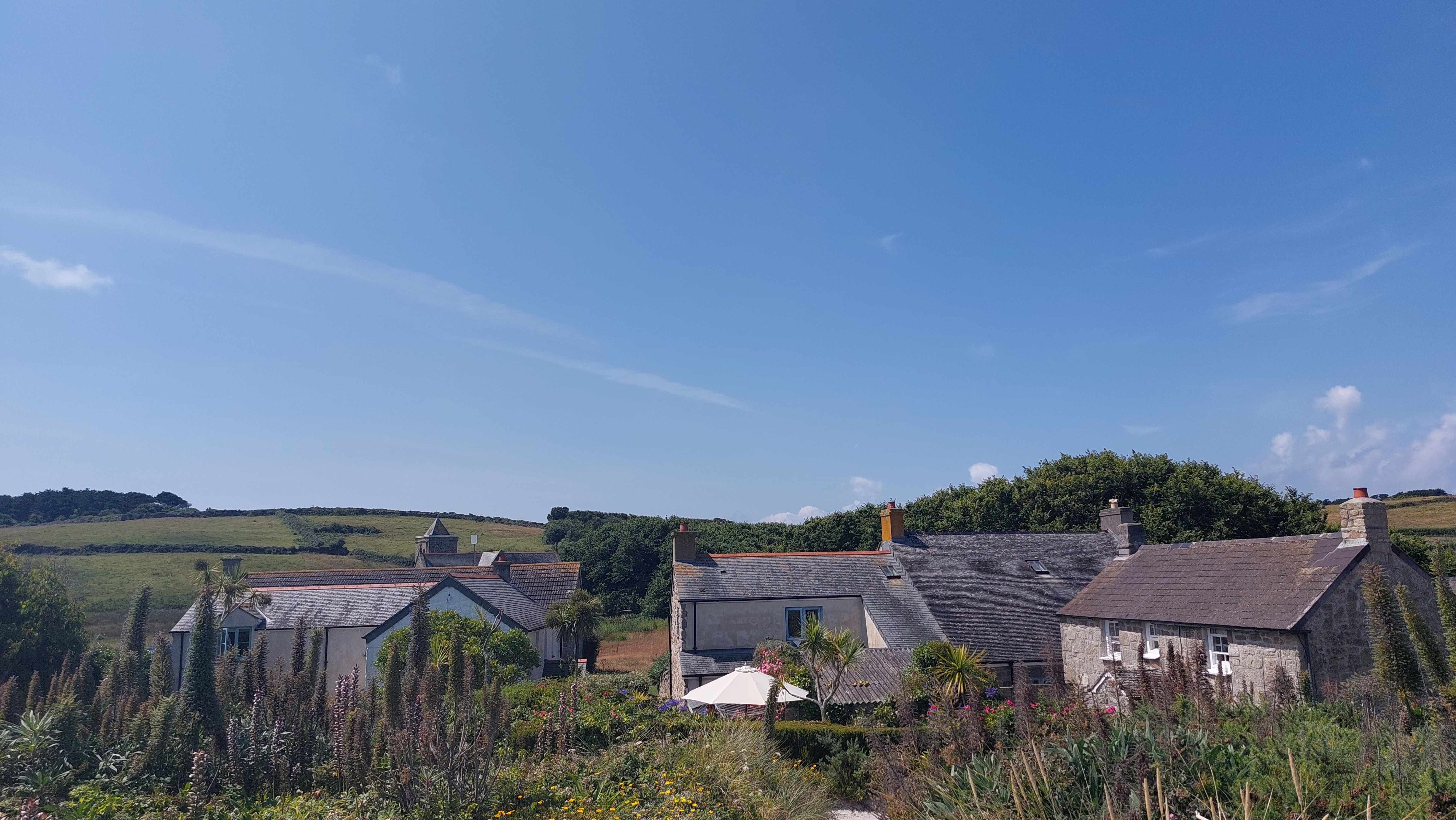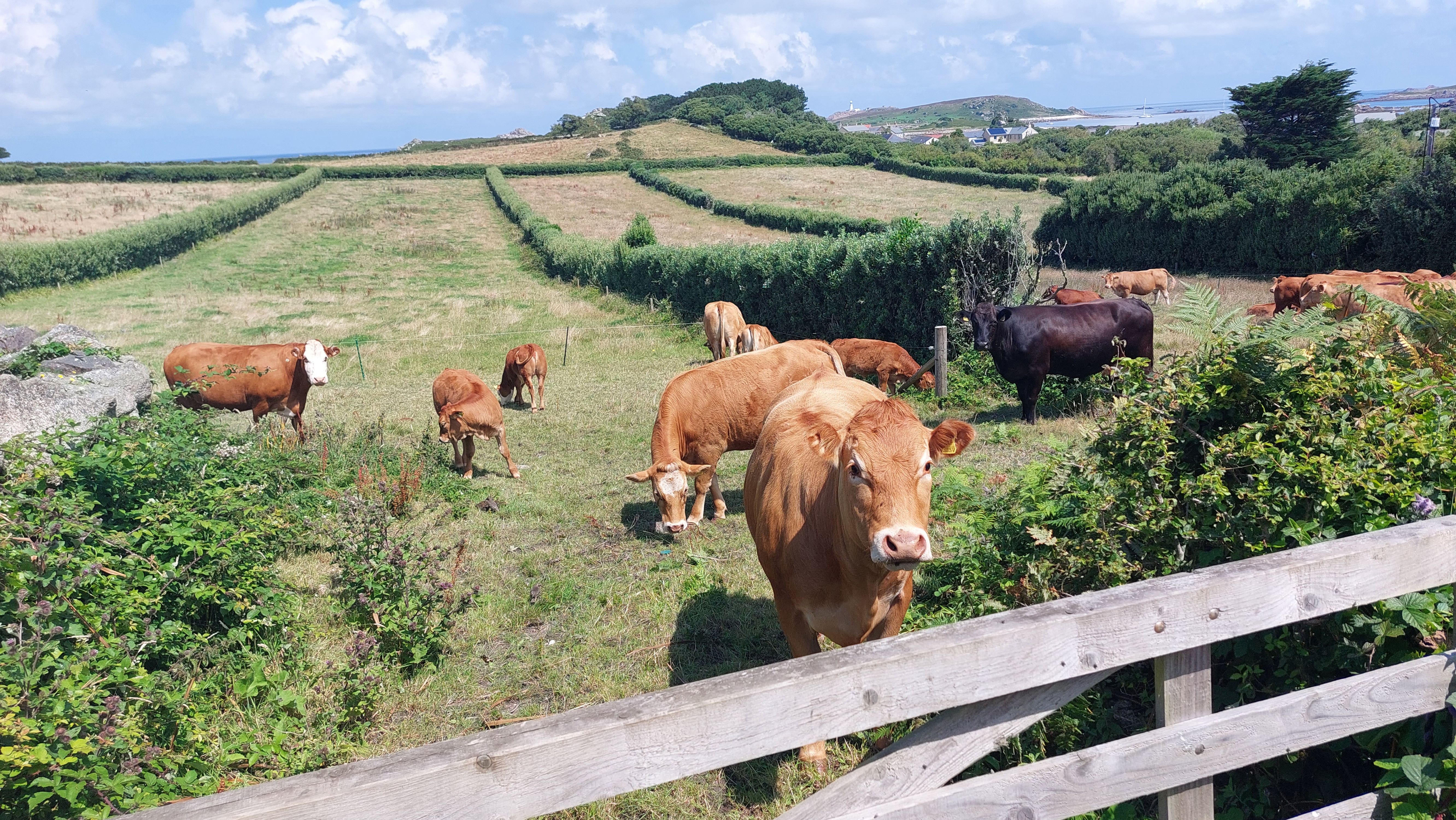 Der kleine Laden ist auf der anderen Seite von Tresco in New Grimsby. Der Weg führt vorbei an Feldern und Weiden, einer alten Kirche, hübschen Häuschen und jeder Menge farbenfroher Blumen und Pflanzen. Nach England sieht das hier nicht aus.
