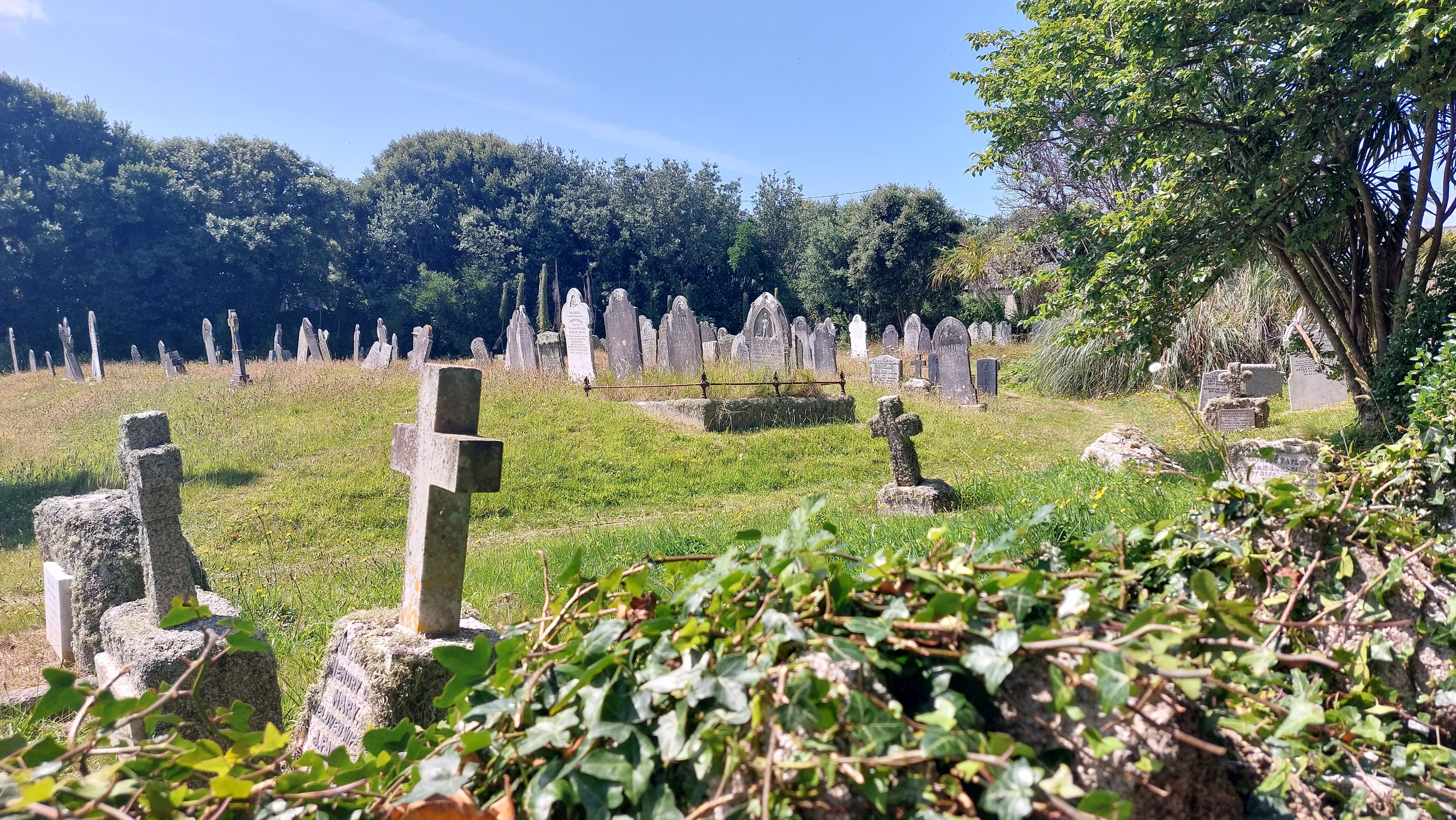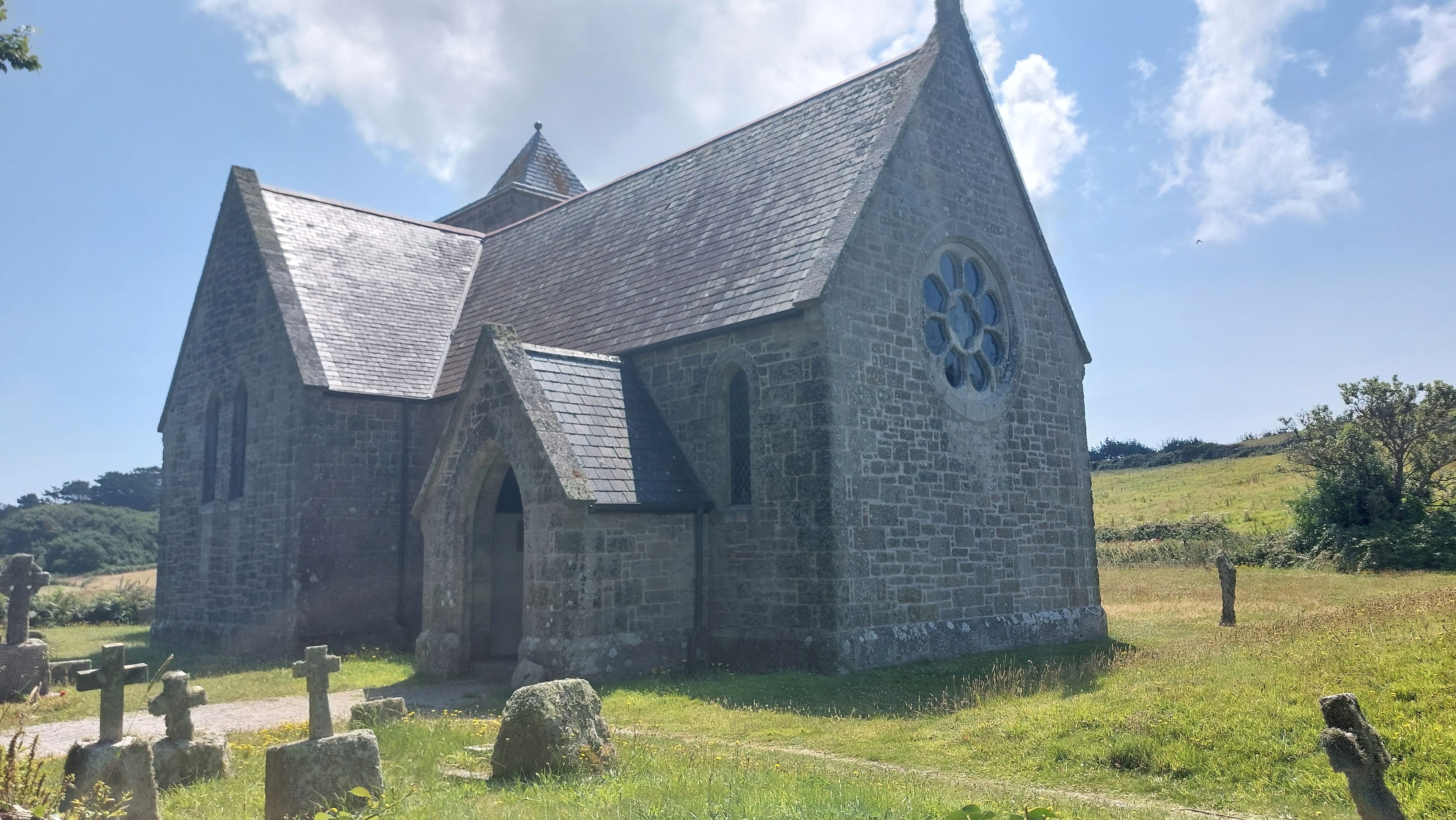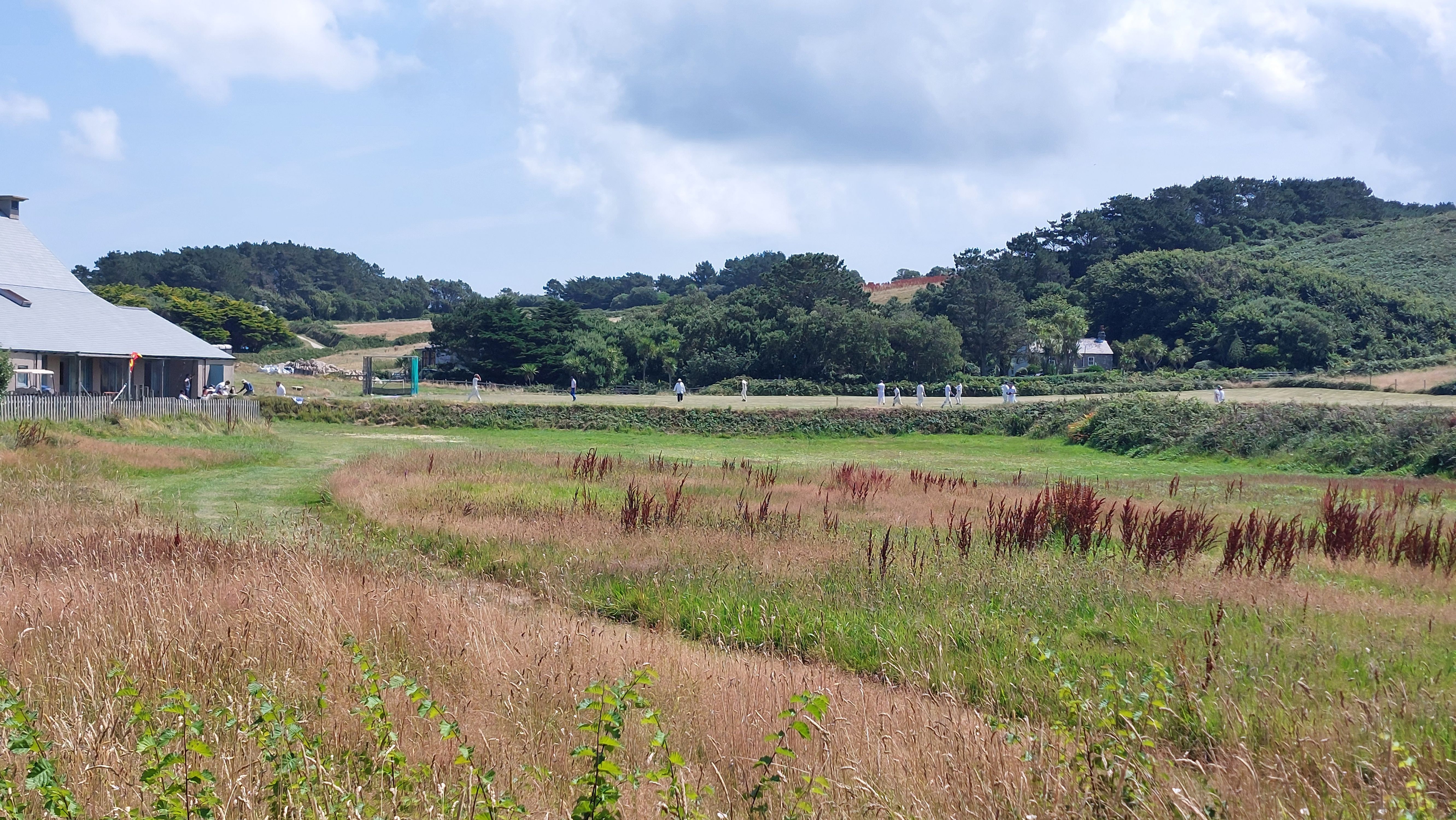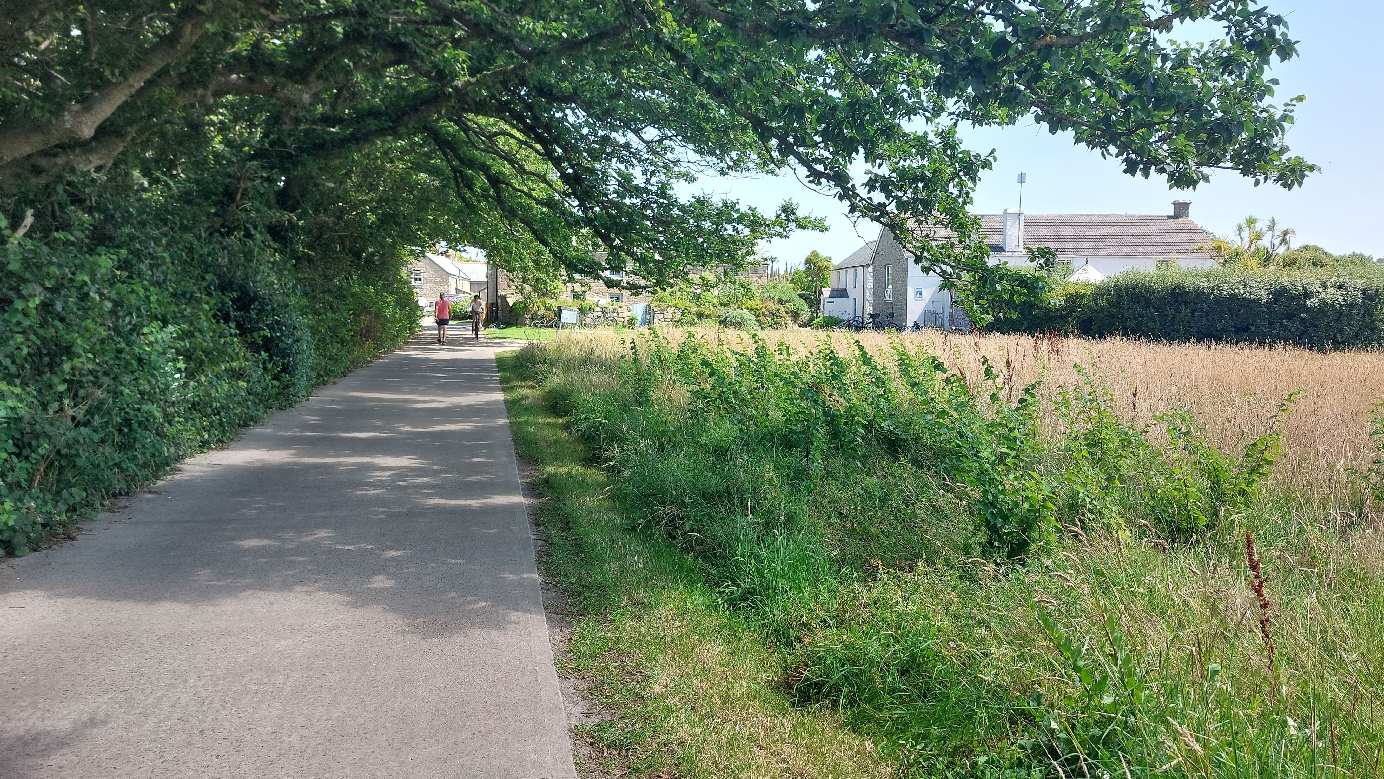 Der kleine Laden ist auf der anderen Seite von Tresco in New Grimsby. Der Weg führt vorbei an Feldern und Weiden, einer alten Kirche, hübschen Häuschen und jeder Menge farbenfroher Blumen und Pflanzen. Nach England sieht das hier nicht aus.