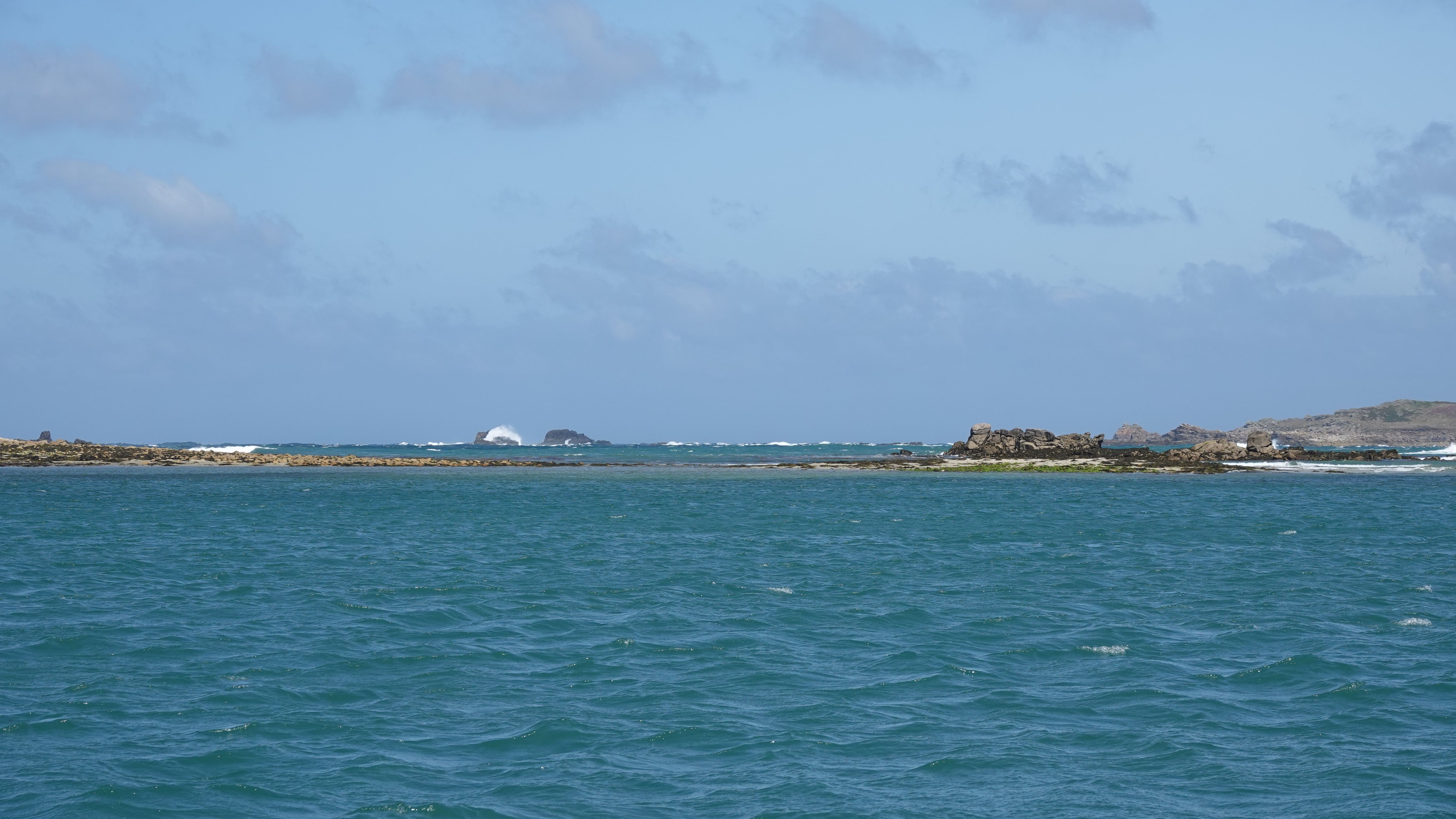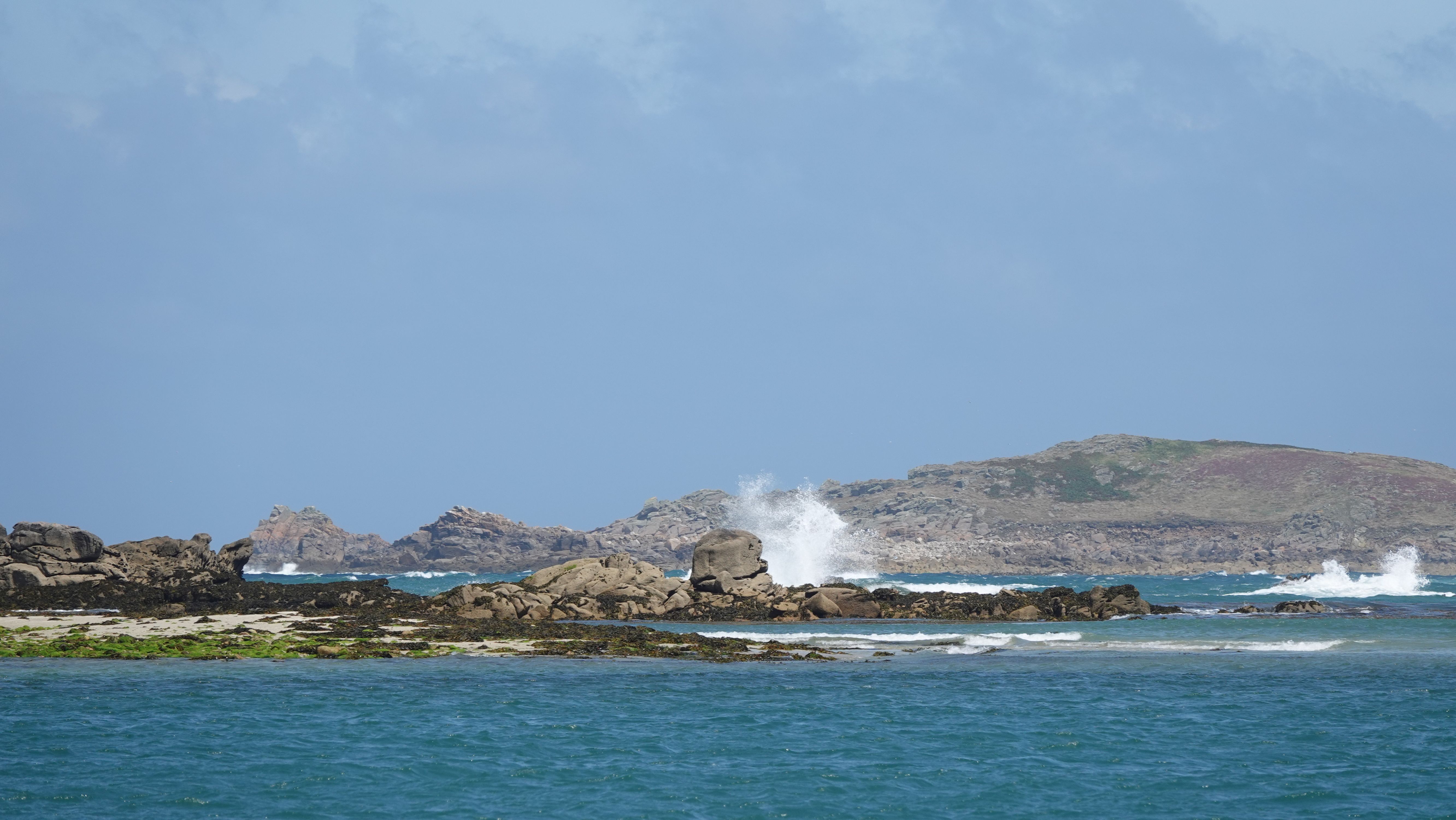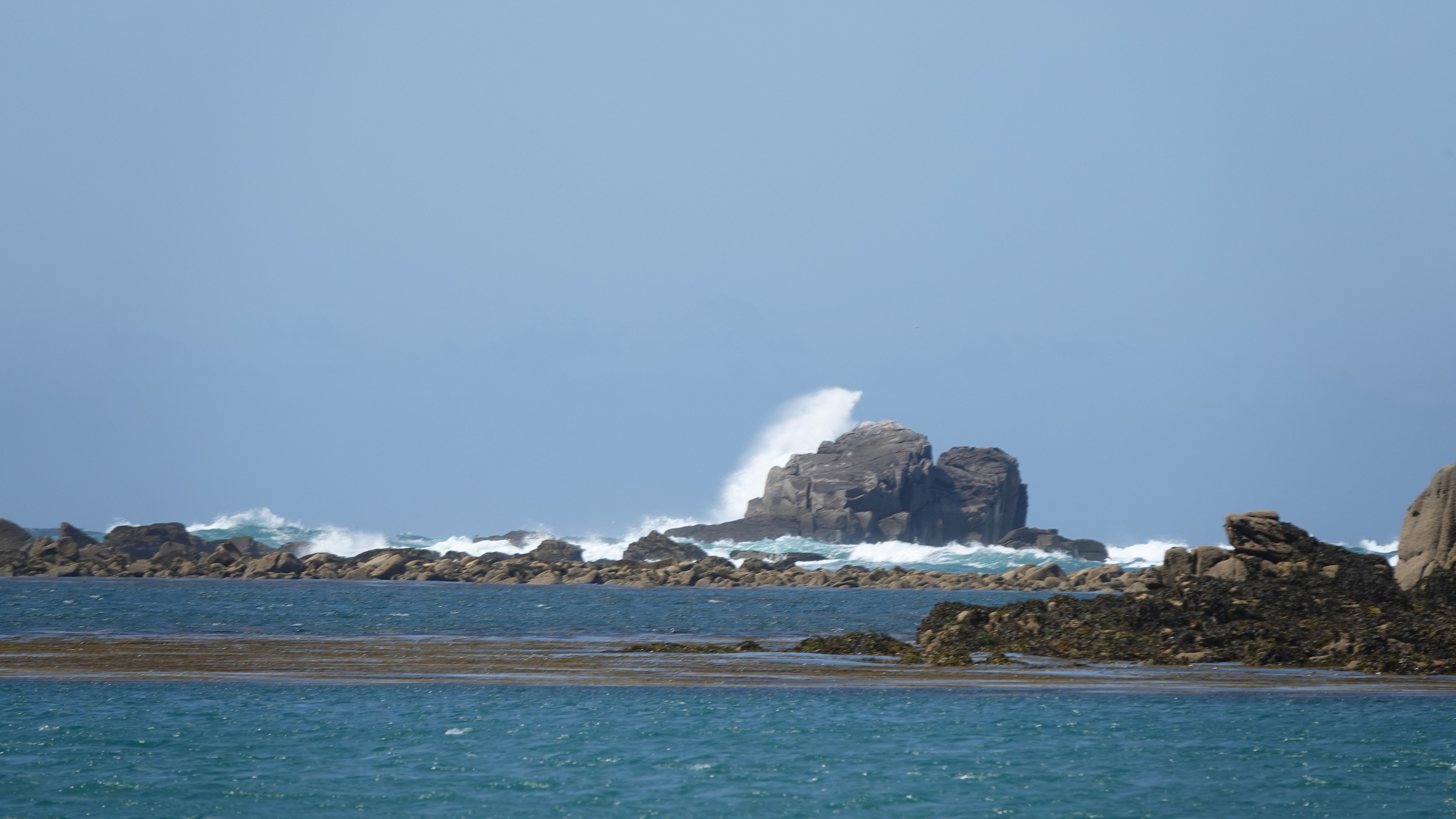Es fetzt und regnet den ganzen Tag. Bei Hochwasser ist ein Großteil der Felsen im Nordwesten überspült und es wird ganz schön schaukelig am Ankerplatz. Selbst die große Oyster hinter mir gerät kräftig in Bewegung.