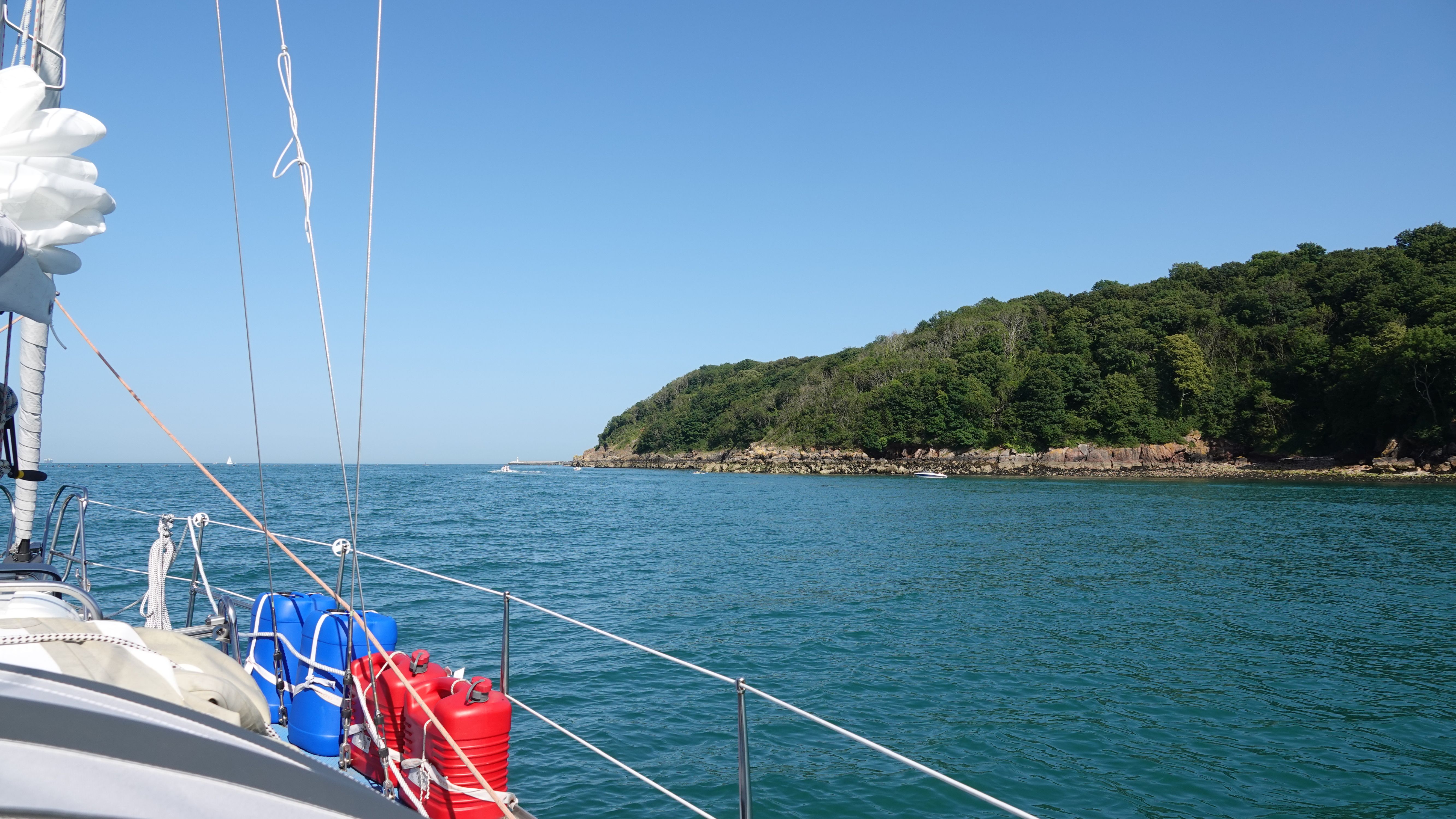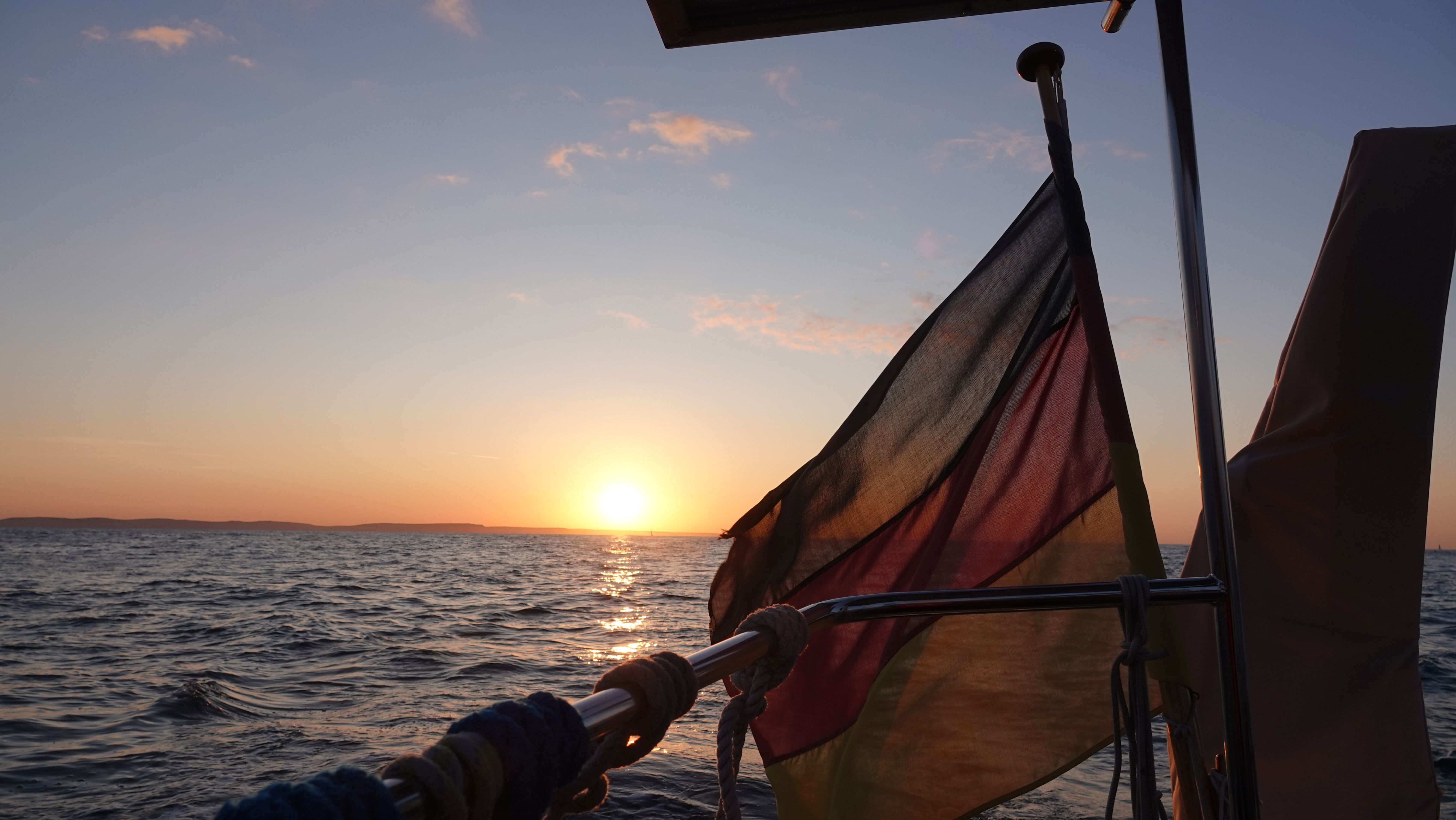 Am frühen Nachmittag schläft der Wind dann ein und es wird richtig warm in der Sonne. Die letzte Stunde bis zum Ankerplatz schiebt die Maschine.