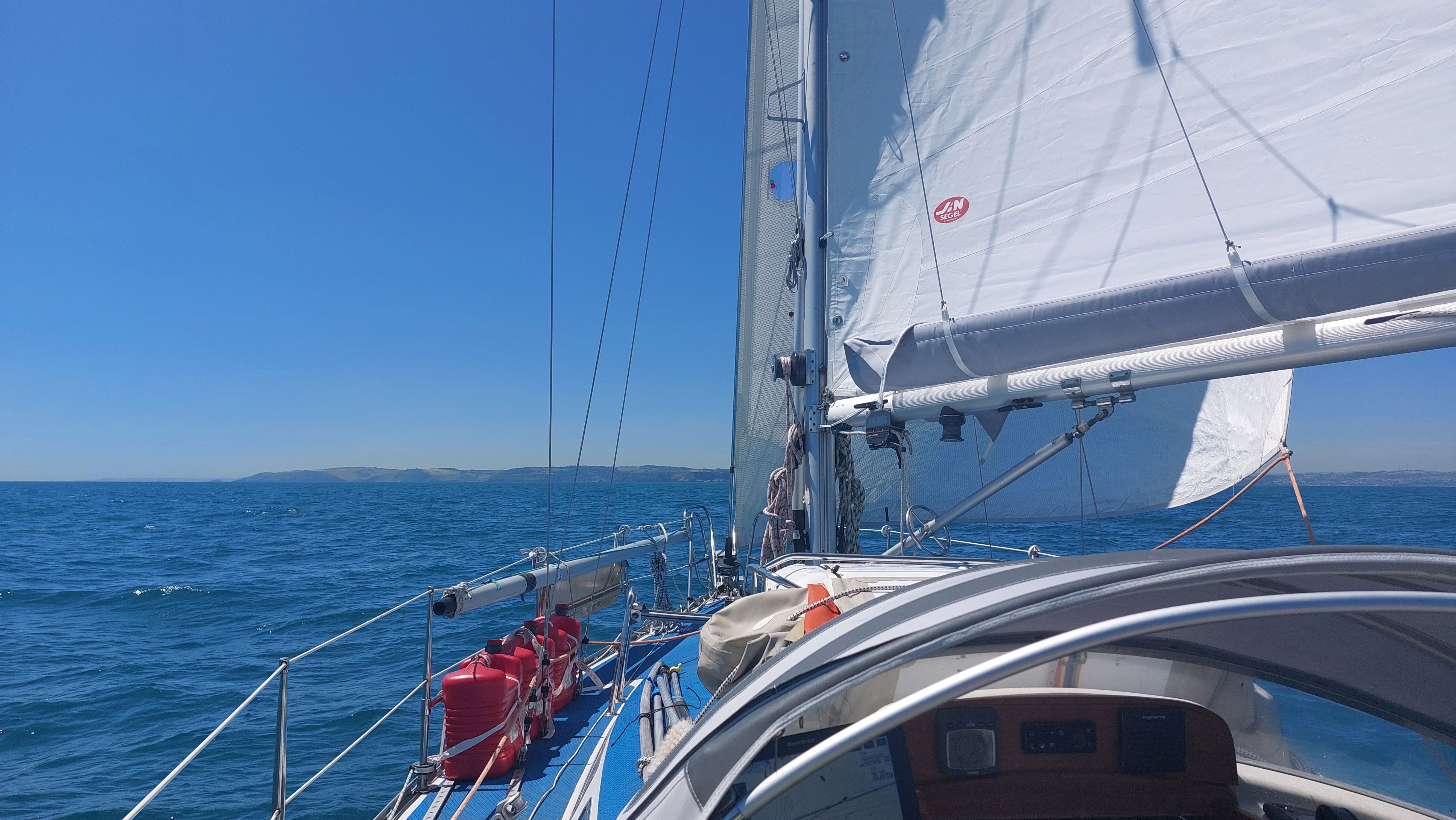 Kurz nach neun kann ich Segel setzen und die Sonne kommt raus. Nach und nach lege ich die vielen Schichten warmer Kleidung ab.