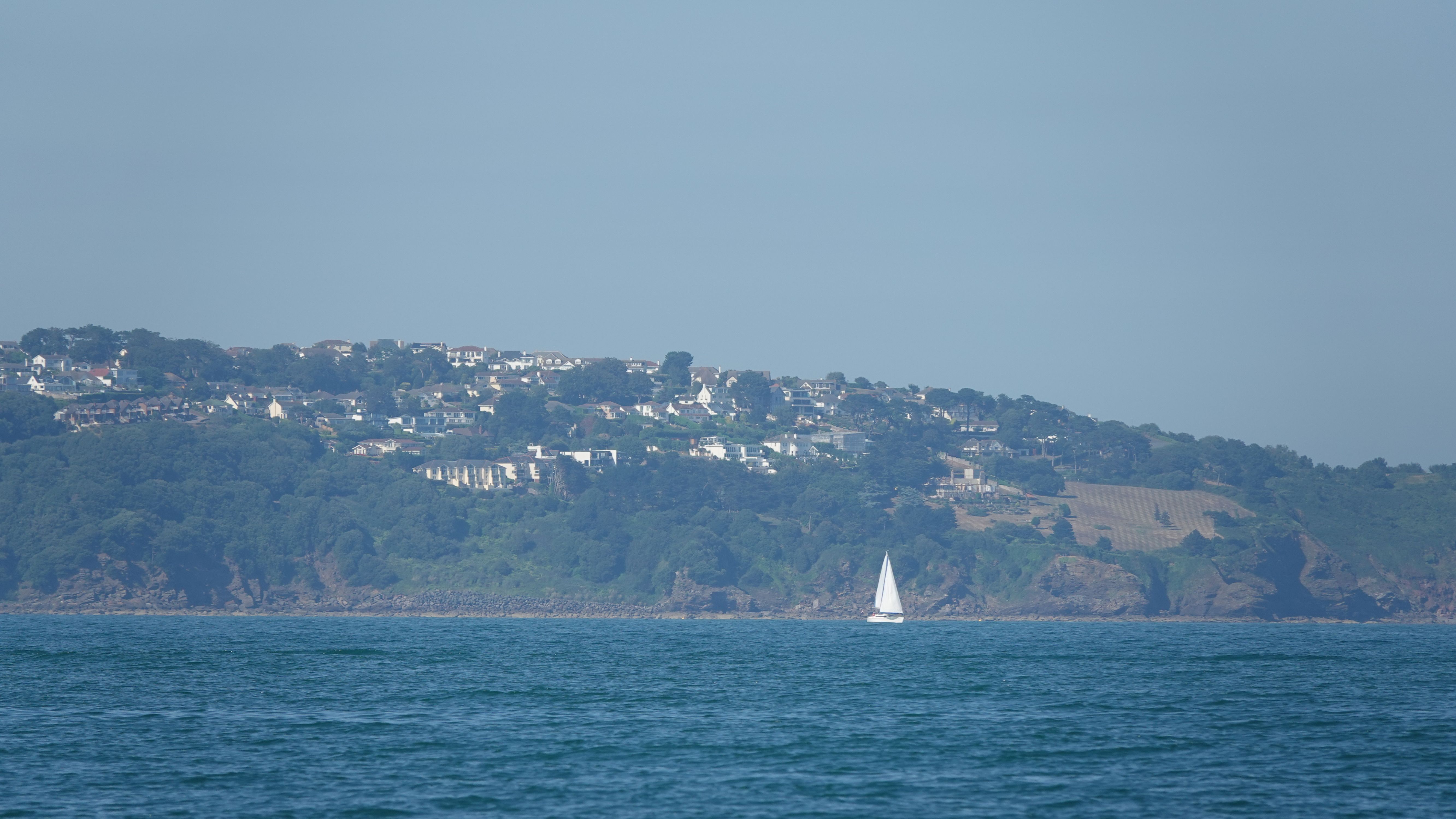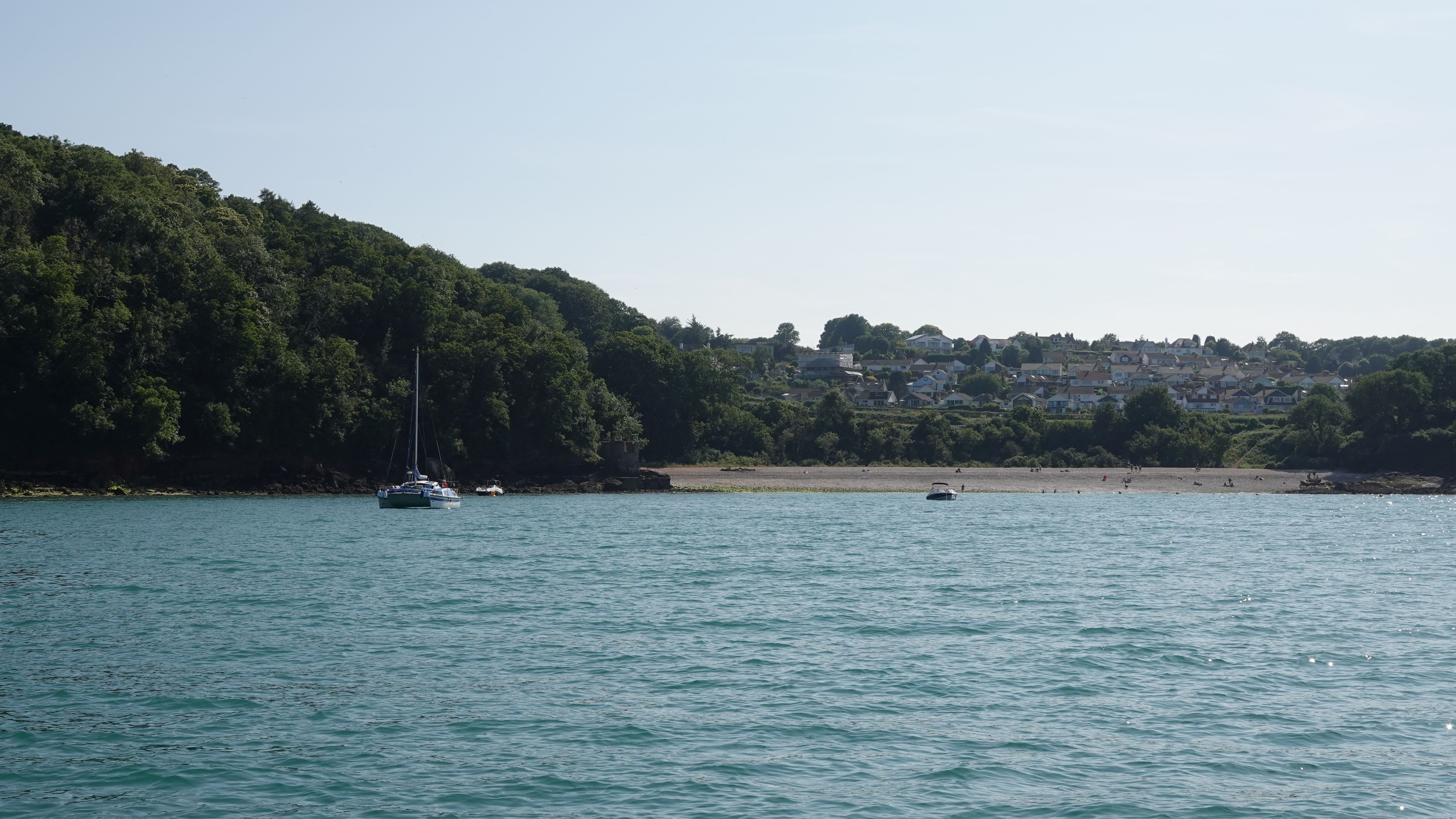 Mein bevorzugter Ankerplatz, die kleine Bucht Fishcombe Cove direkt neben der Marina Brixham, ist schon komplett voll. Ich finde eine Bucht weiter, in der Silver Cove eine Ecke für meinen Anker. Hier liegen einige Motorboote und es herrscht reges Treiben mit Jet Skis und großen RIBs die unentwegt auf und ab rasen.