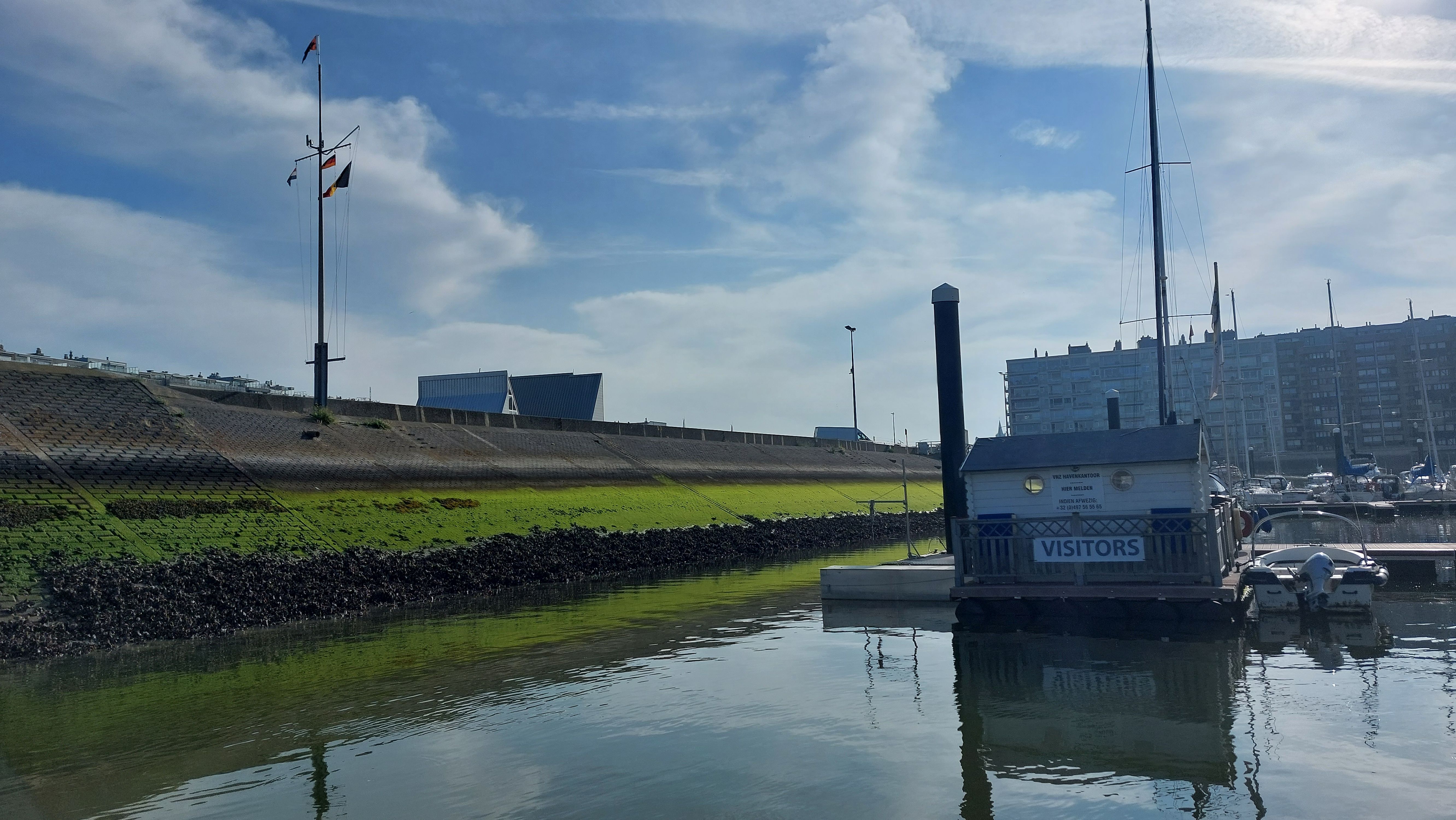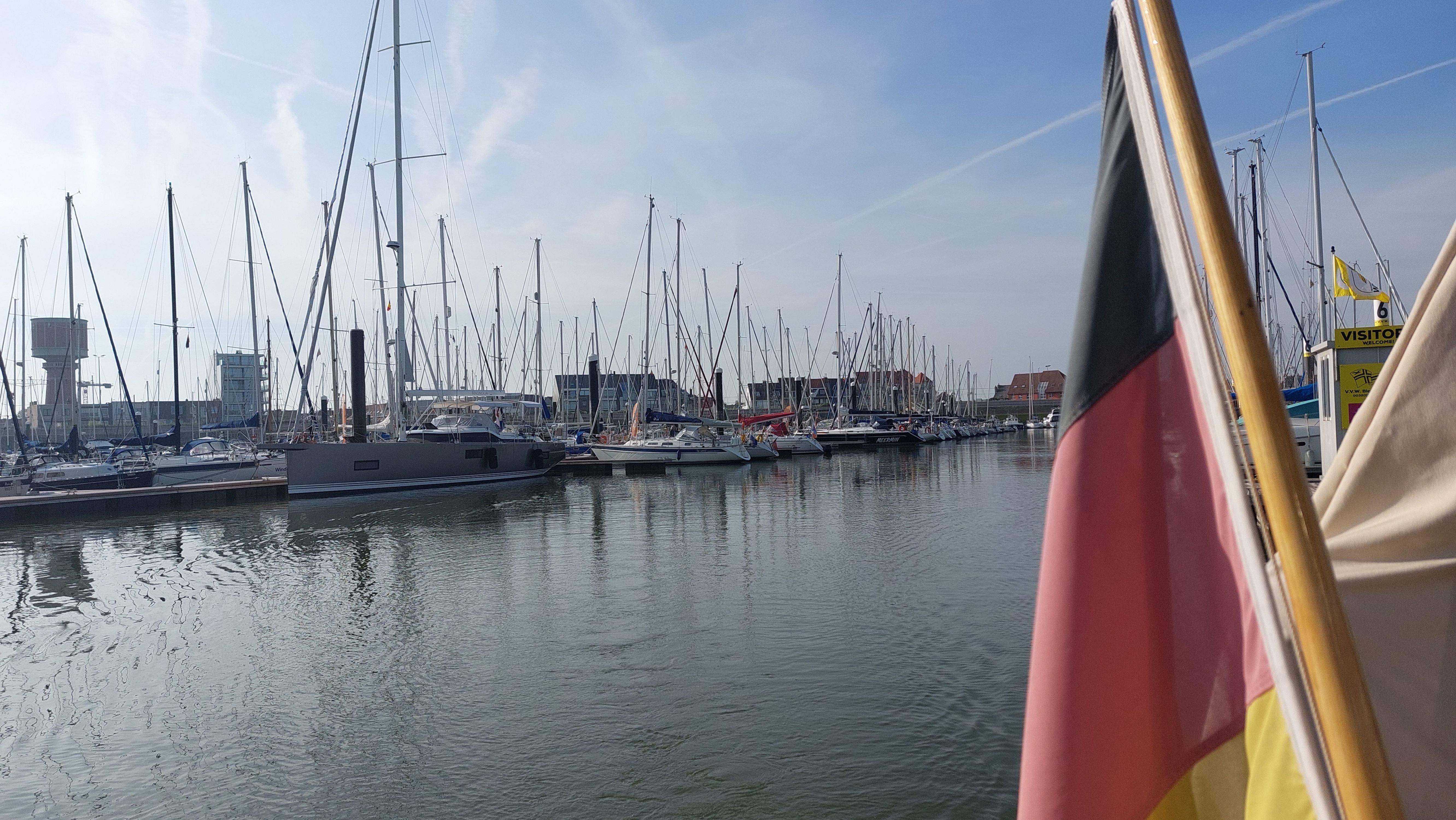 Mittwoch ist es wieder freundlich. Ich schlafe in Ruhe aus und nutze die gewaltigen Duschräume des Hafens. Der Vlaamse Yachthaven Nieuwpoort bewirbt sich als "The biggest marina of Northern Europe" mit über eintausend Liegeplätzen und mit entsprechender Kapazität sind die Sanitärräume gestaltet.