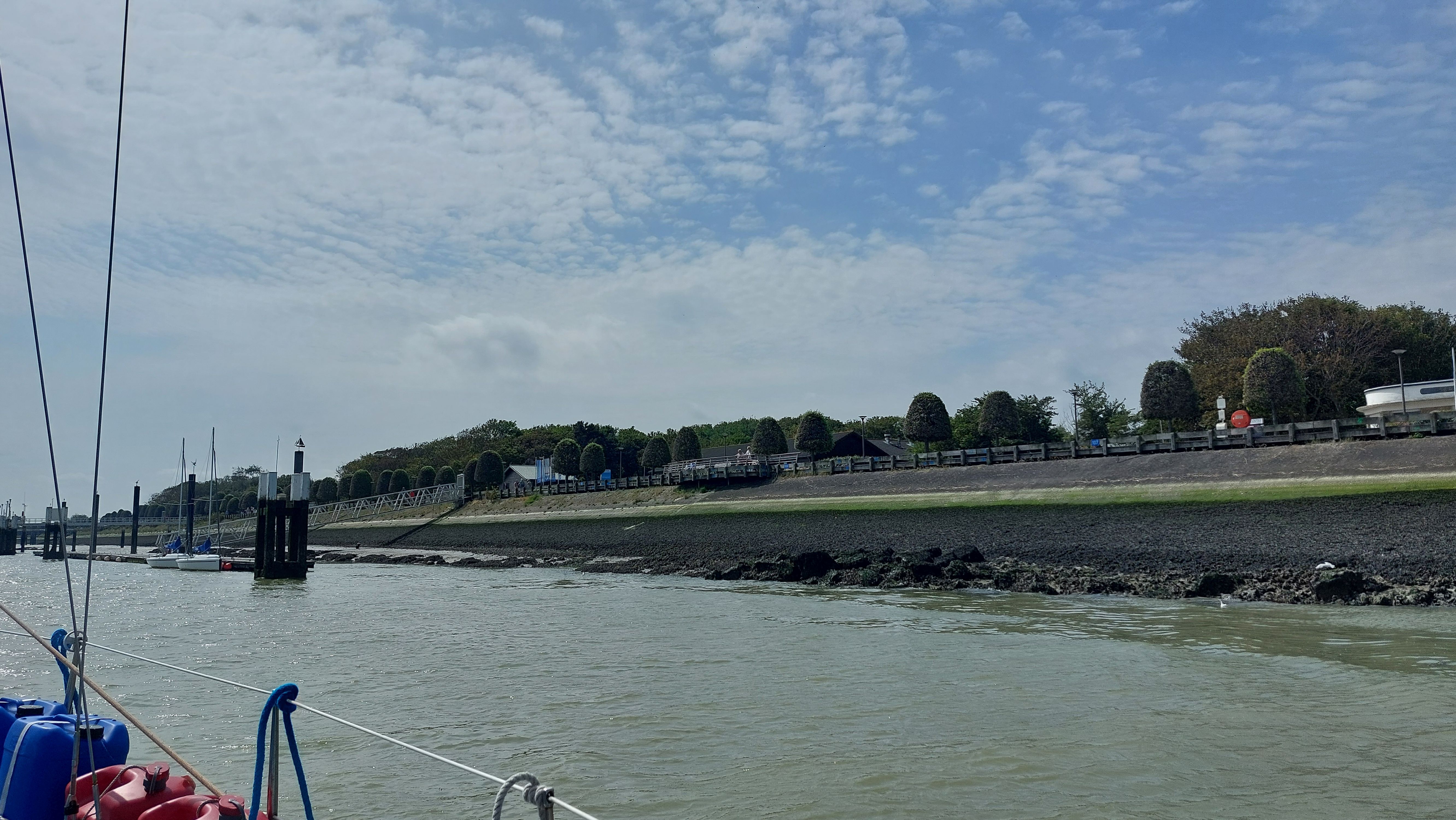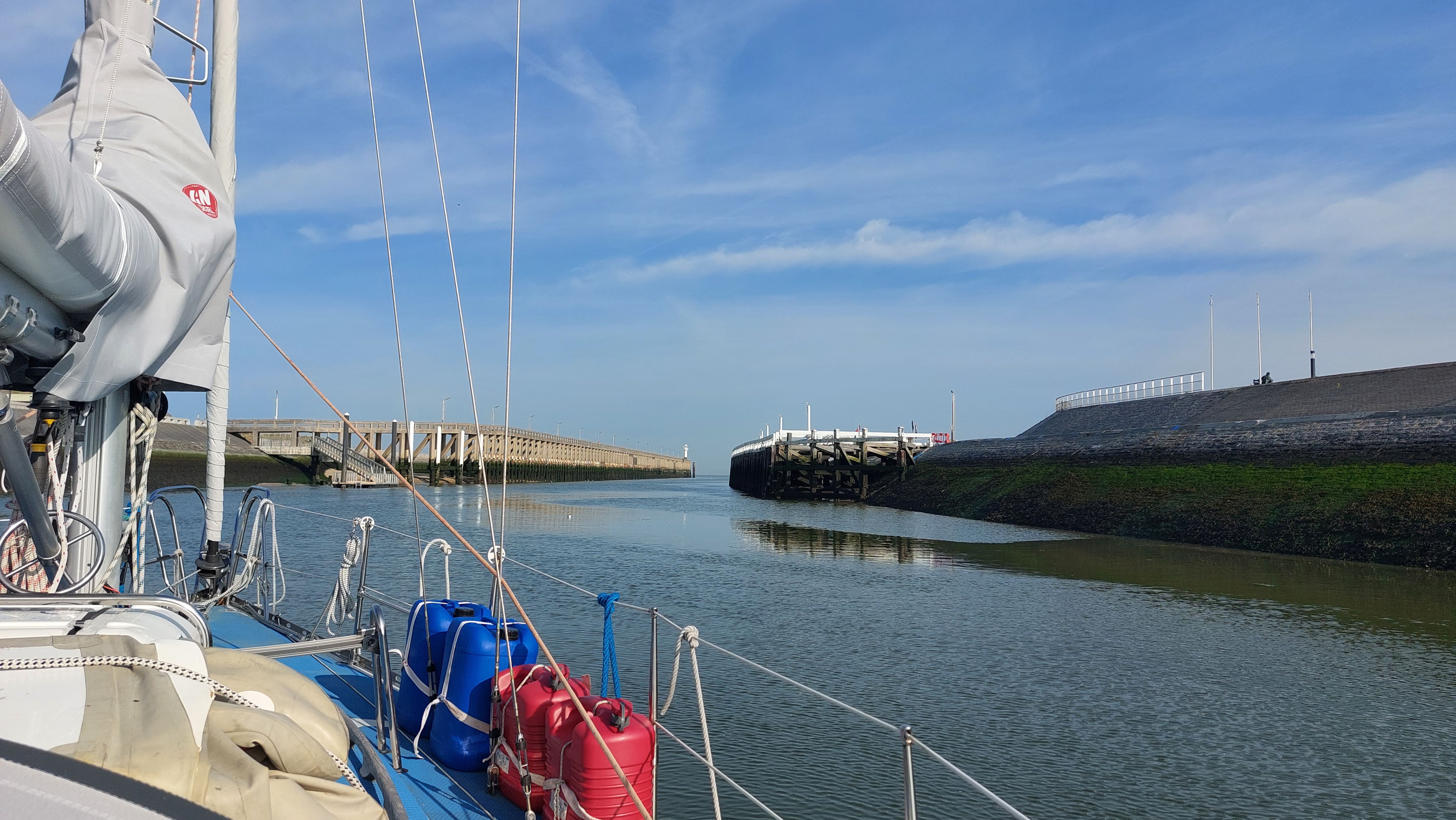 In der langen Einfahrt wird gerade eine neue Sturmflutsperre gebaut. In der Seekarte und im Reeds wird vor der Baustelle gewarnt. Zumindest während ich dort durchfahre gibt es aber keinerlei Probleme.