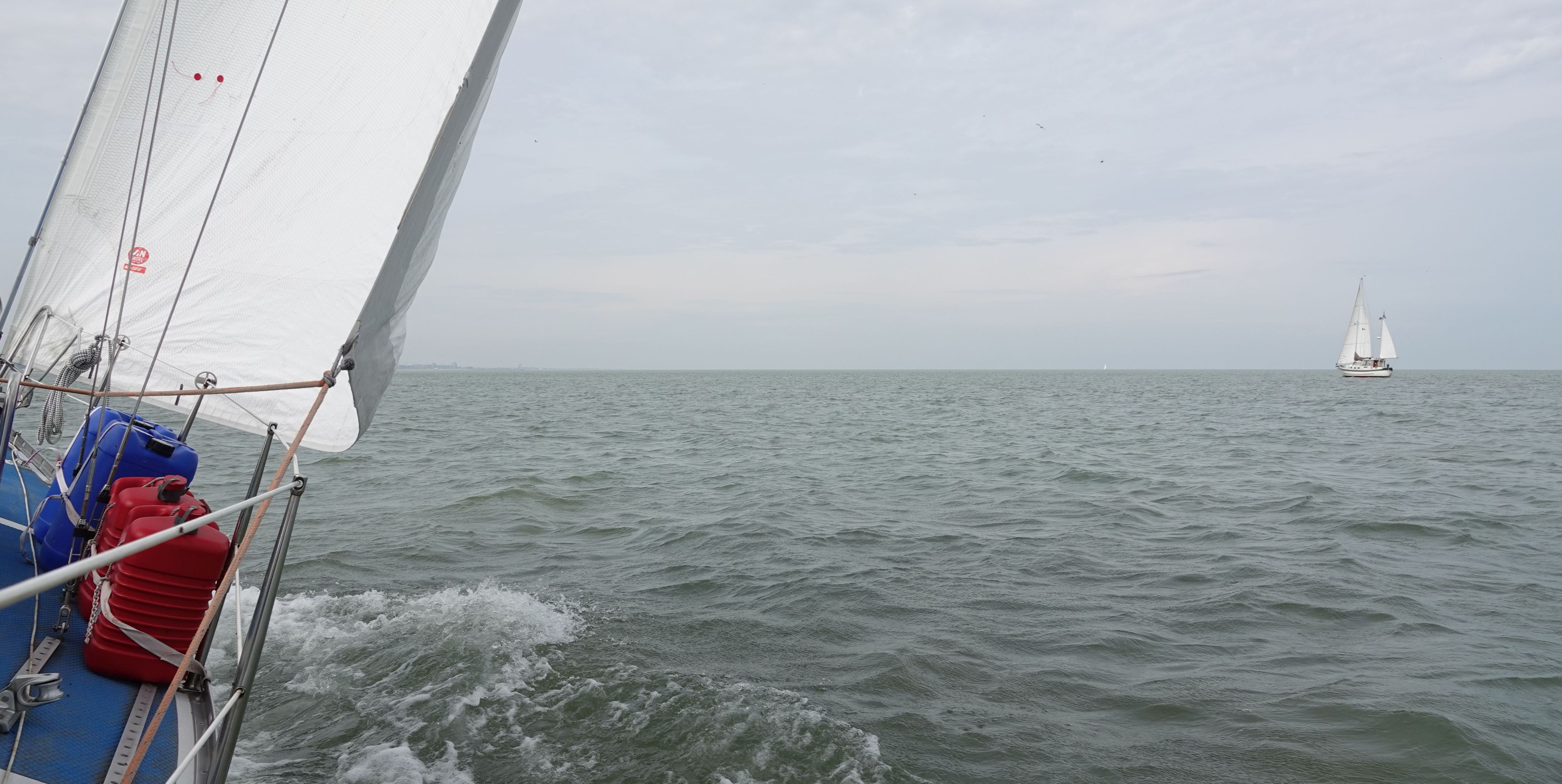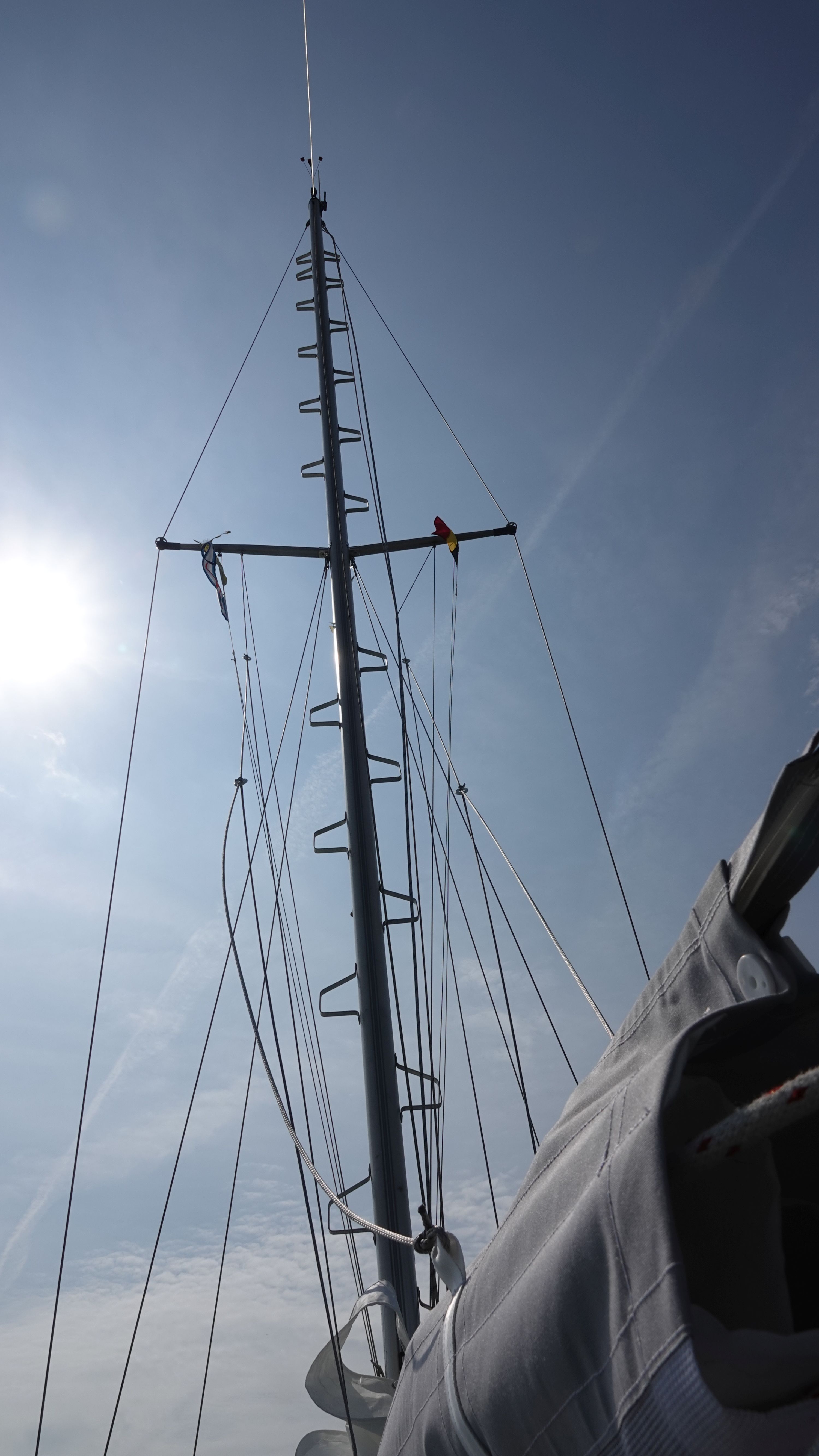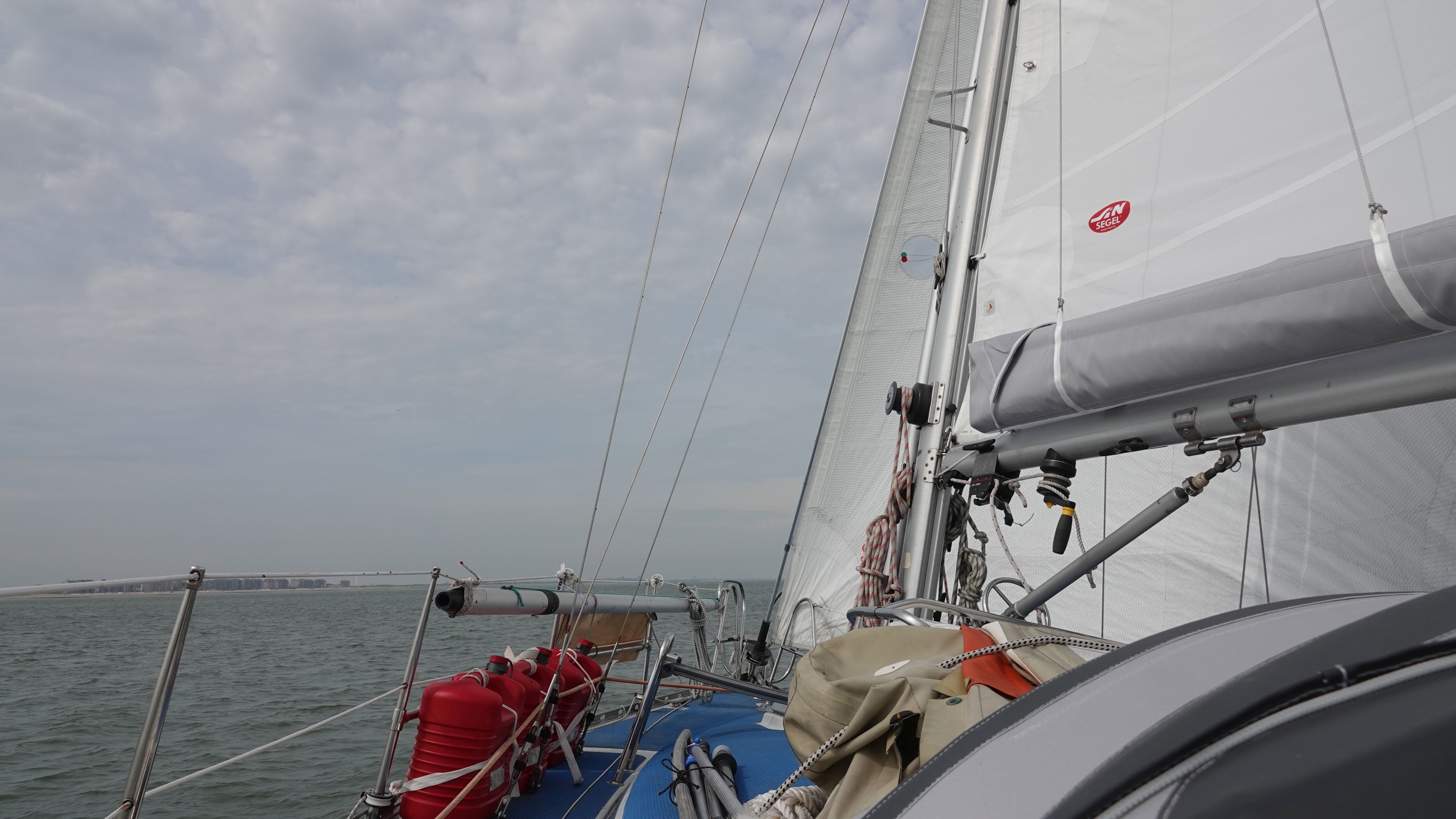 Die Sonne scheint, es weht ein angenehmer Segelwind aus Süd, der Strom schiebt und mit Großsegel und Genua komme ich wieder auf Spitzen von über acht Knoten Fahrt. Es läuft prima.