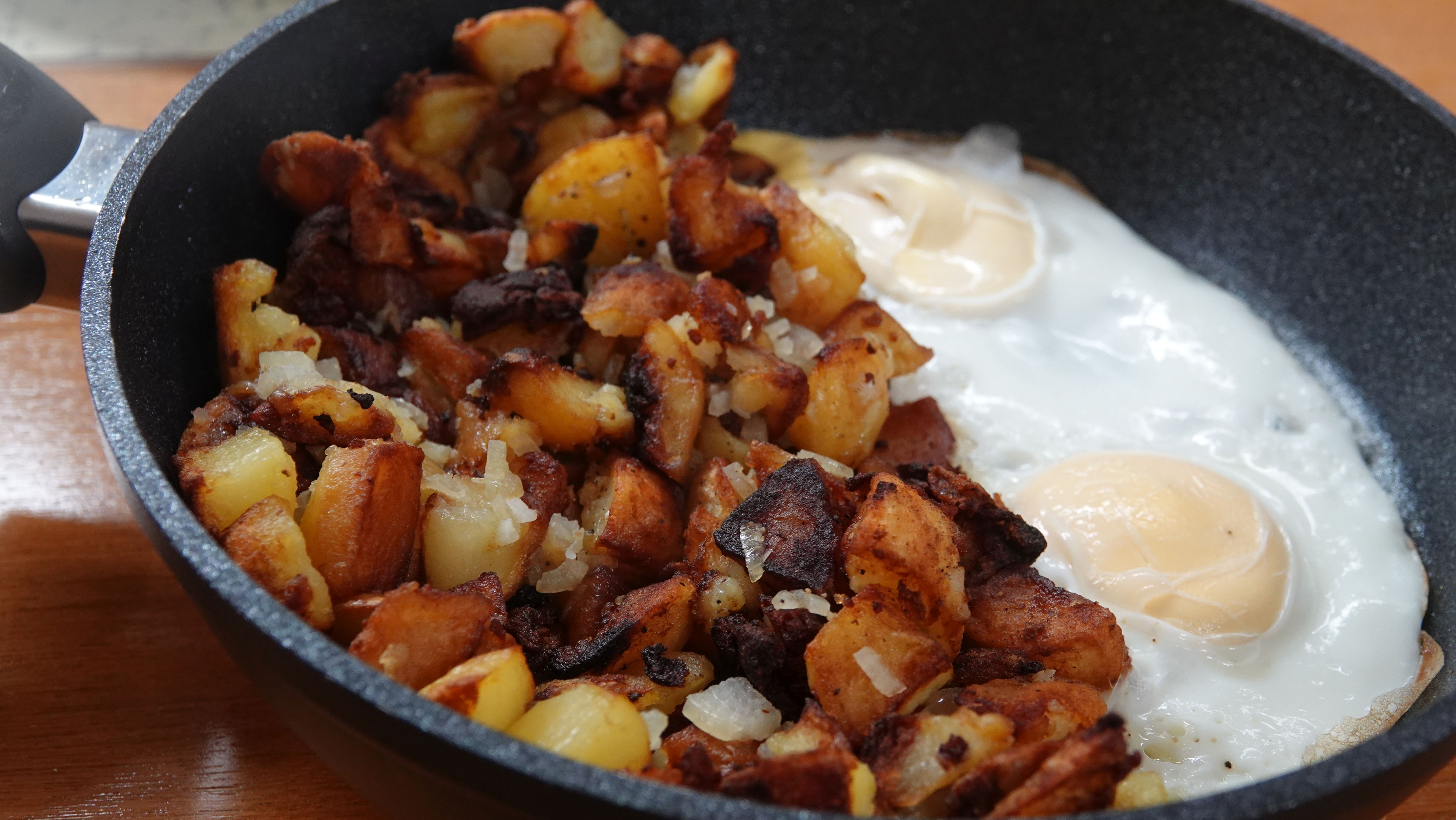 Zu Abend gibt es Bratkartoffeln. Die Kartoffeln sind noch aus Haarlem und haben in der Hitze der letzten zehn Tage zum Teil angefangen kräftig zu keimen und ich muss leider einige aussortieren. Fürs Abendessen reicht es aber noch