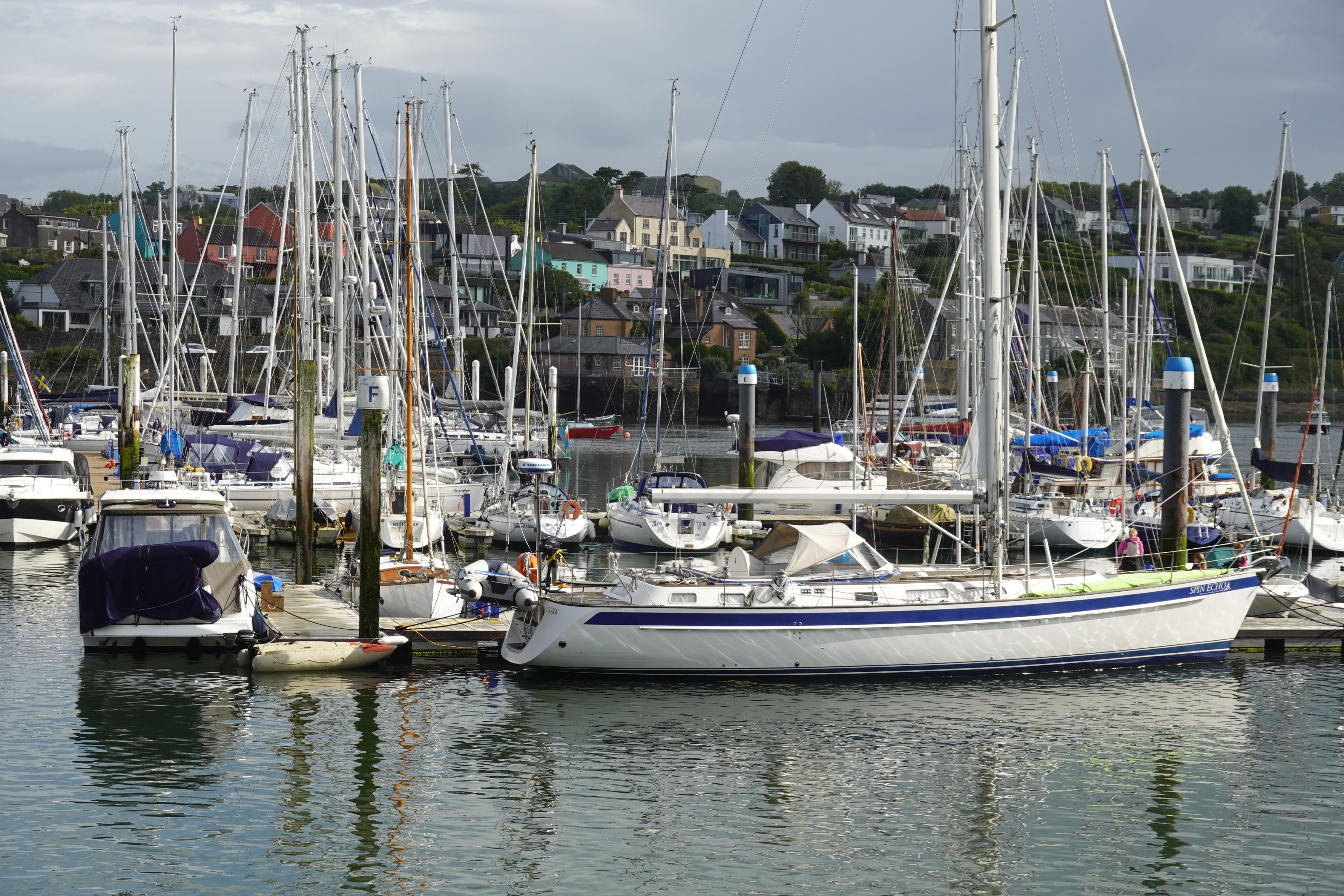 Bevor es zurück an Bord geht machen wir noch eine Stegrunde. Dabei ruft uns der Hafenmeister und hat doch noch einen Platz für heute gefunden, auf dem wir länger liegen bleiben können. Beim Verholen machen wir noch einen Schlenker über Castlepark Marina am anderen Flussufer um Diesel zu tanken (einhundertdreißig Liter schon wieder!) und das Schlauchboot einzupacken.