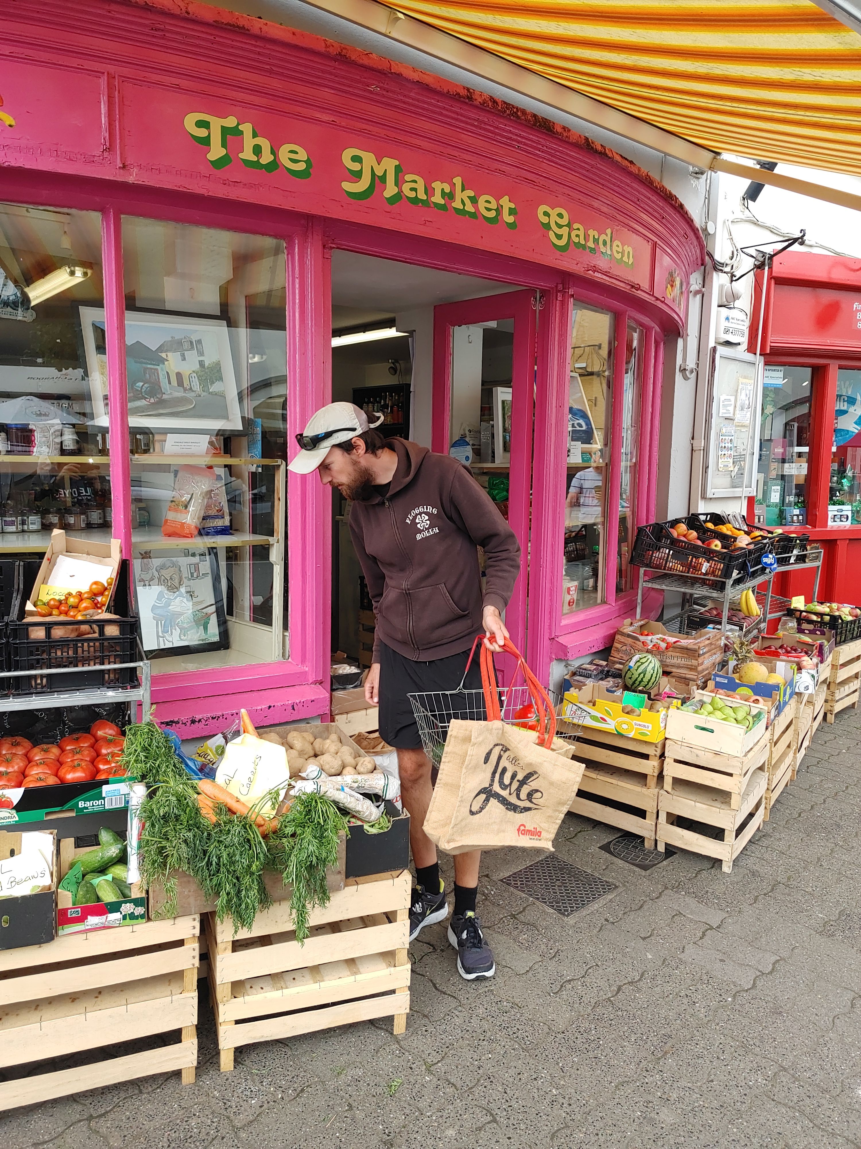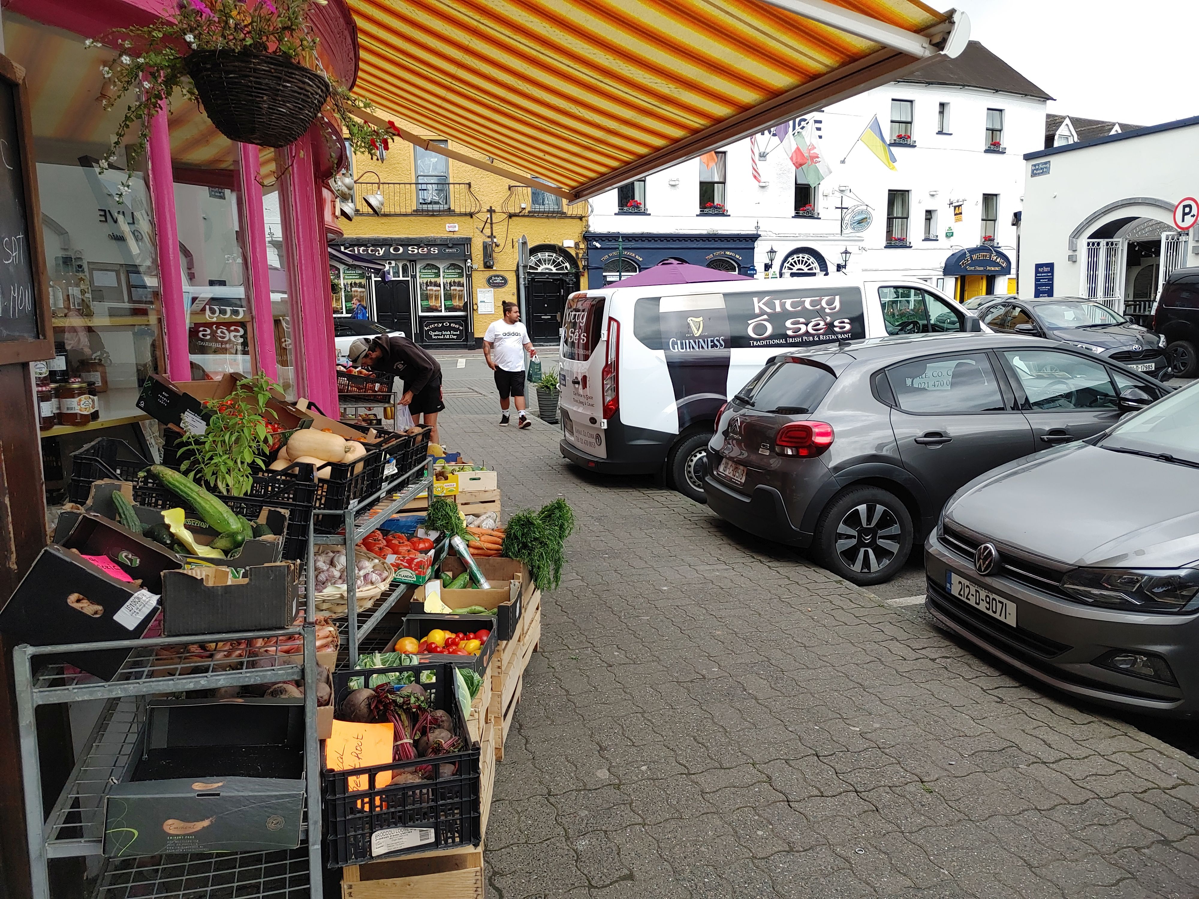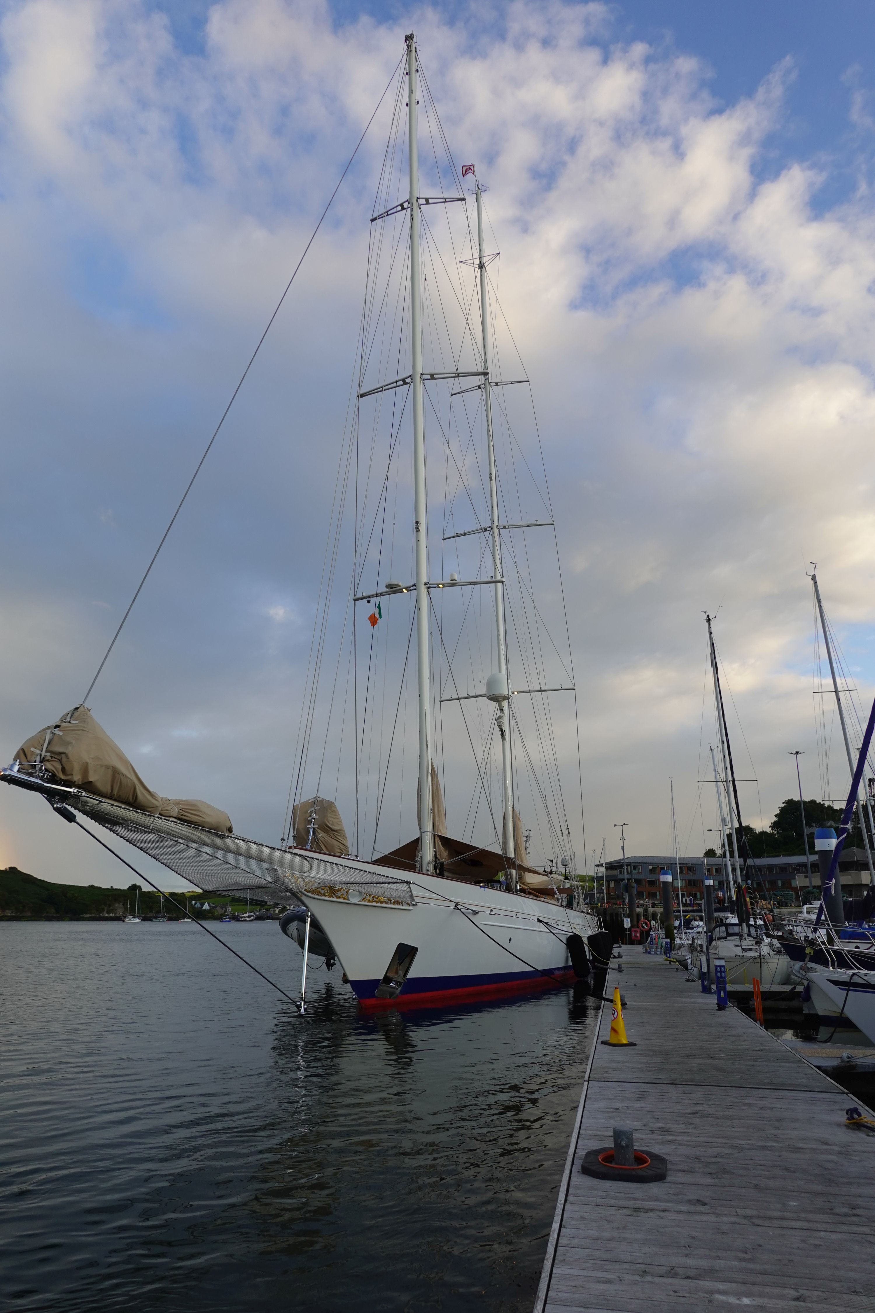 Am Morgen laufen wir zum Einkaufen. Der dichte Spar ist recht spärlich ausgestattet und so gehen wir gleich wieder zum SuperValu. Ein paar Kilo Nudeln, Mehl, Müsli, Fertigessen für unterwegs... Obst und Gemüse bekommen wir bei einem kleinen Gemüsehändler am Marktplatz. An Bord nutze ich die letzten freien Ecken um das alles zu verstauen.