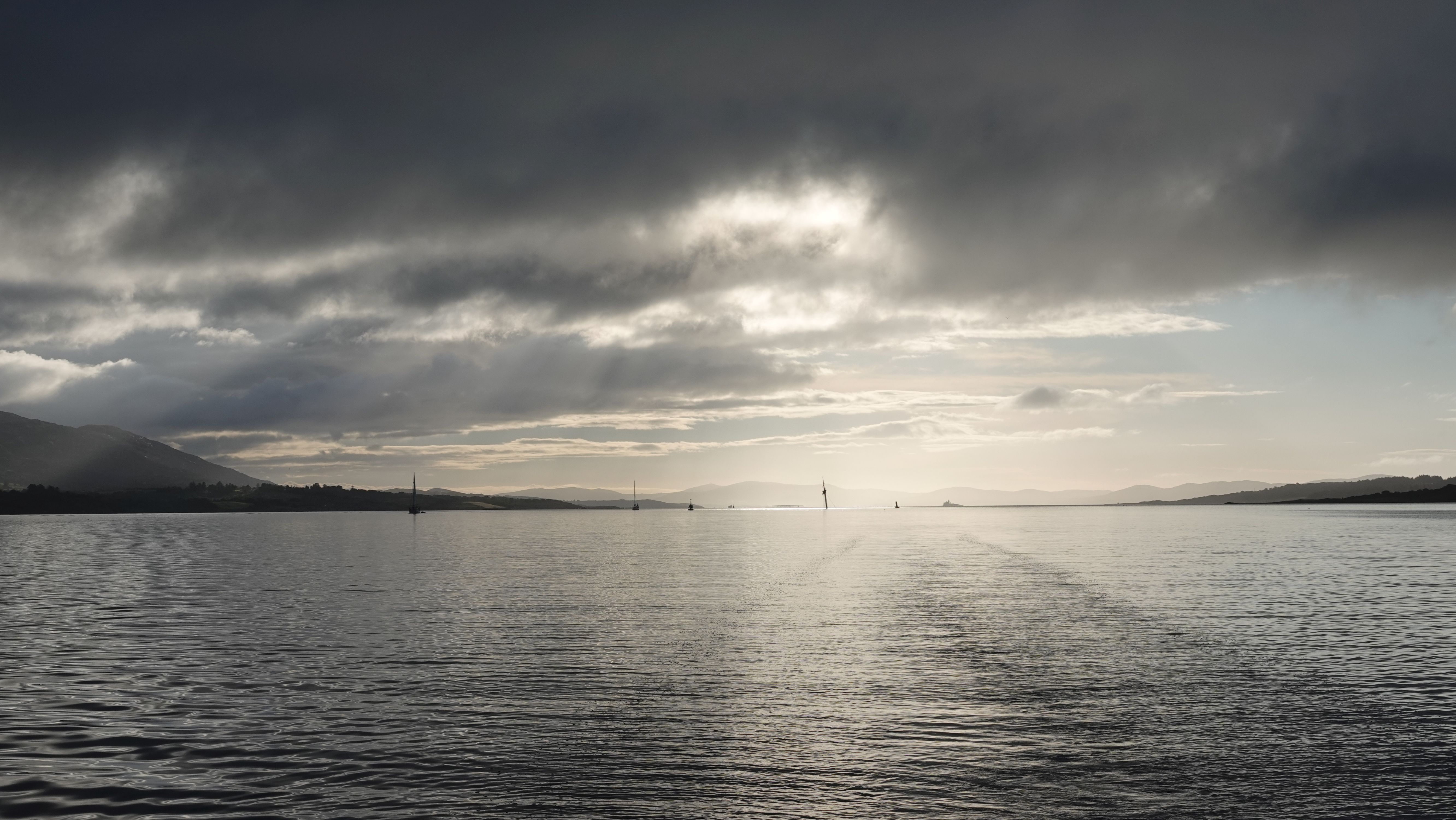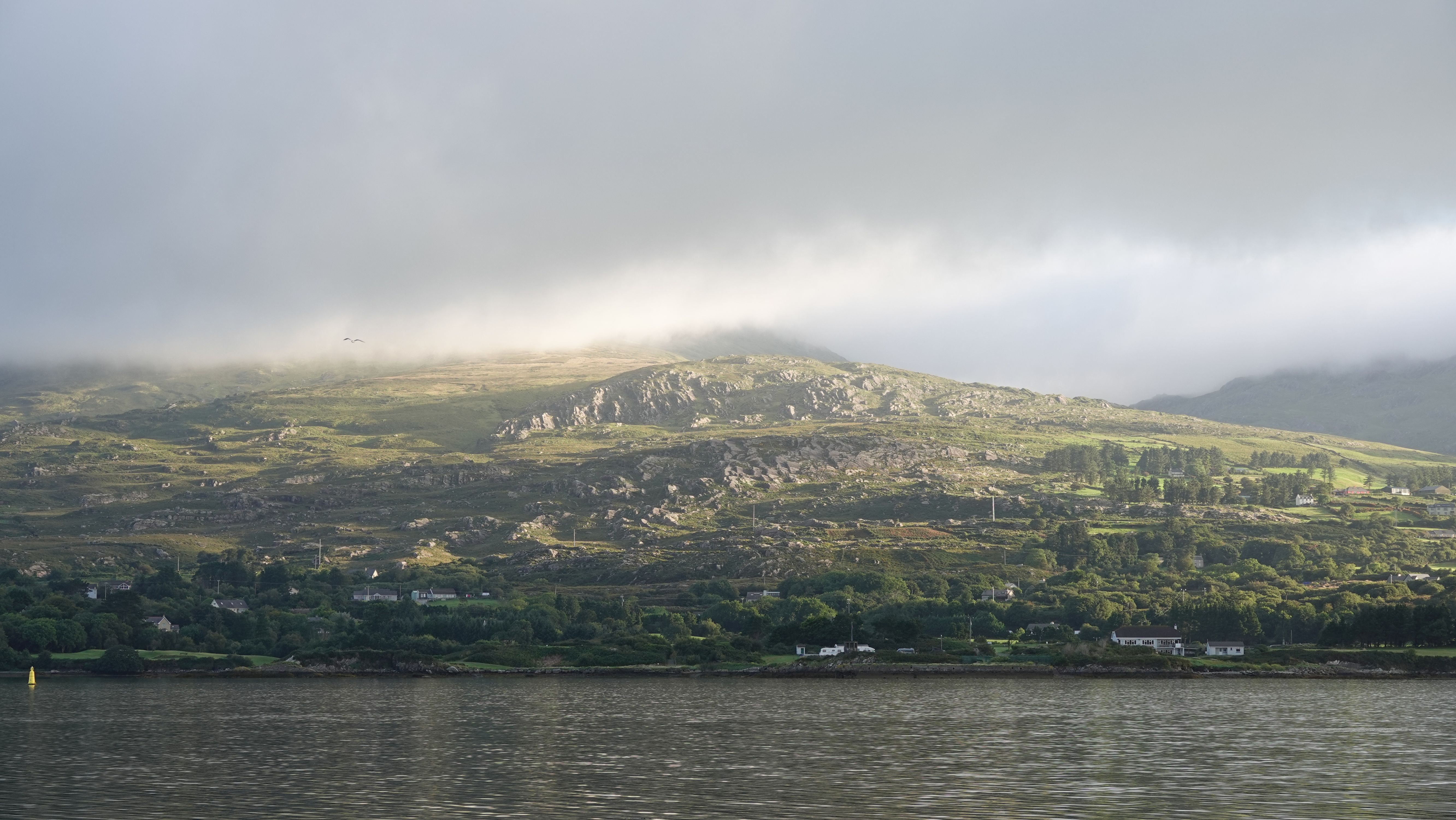 Kurz bevor wir Piper's Sound zum zweiten Mal passieren und den Schutz von Bere Island verlassen ziehen wir das Großsegel, draußen auf dem offenen Wasser kommt die Genua dazu und die reparierte Windpilot übernimmt das Steuer.