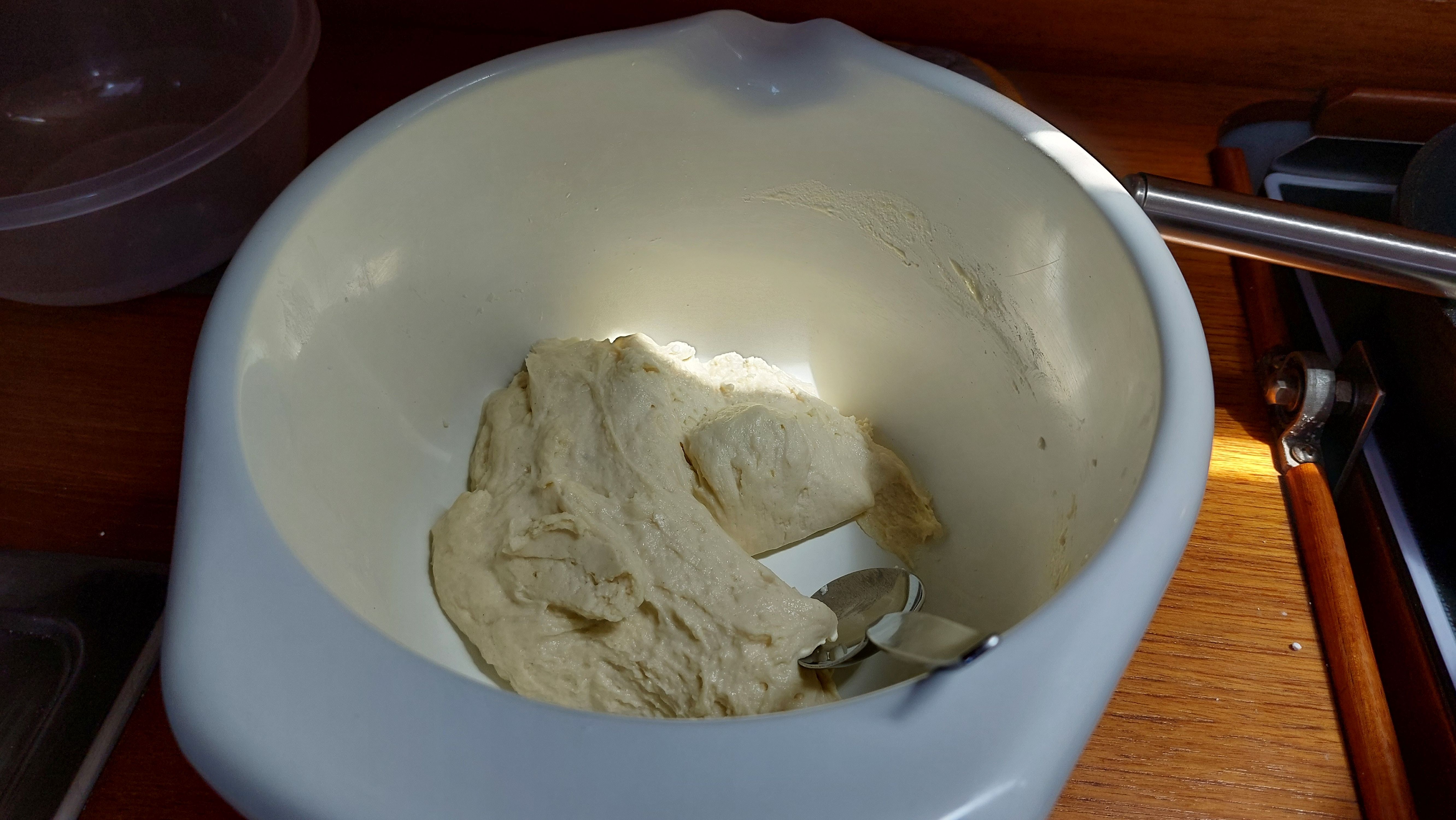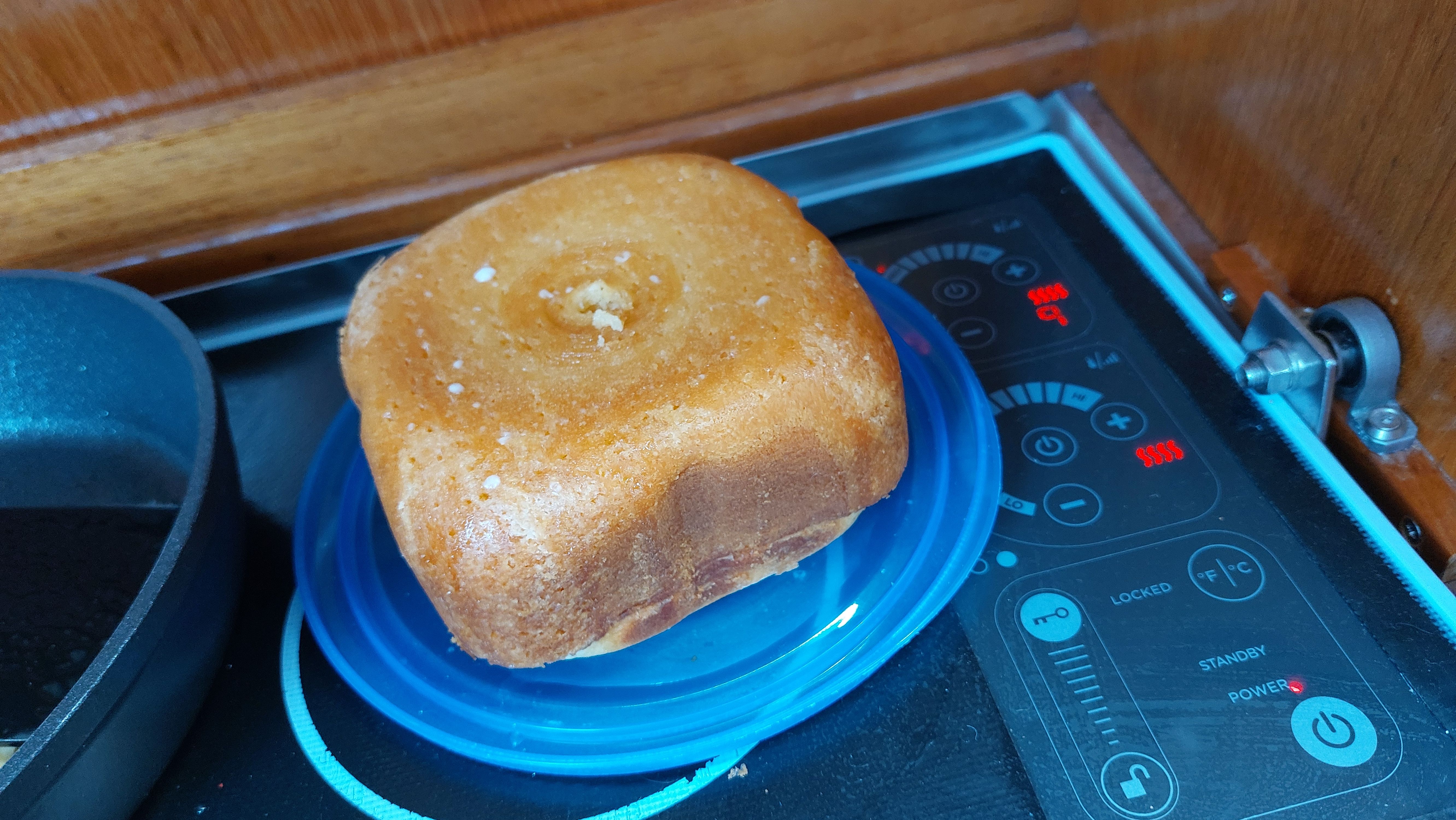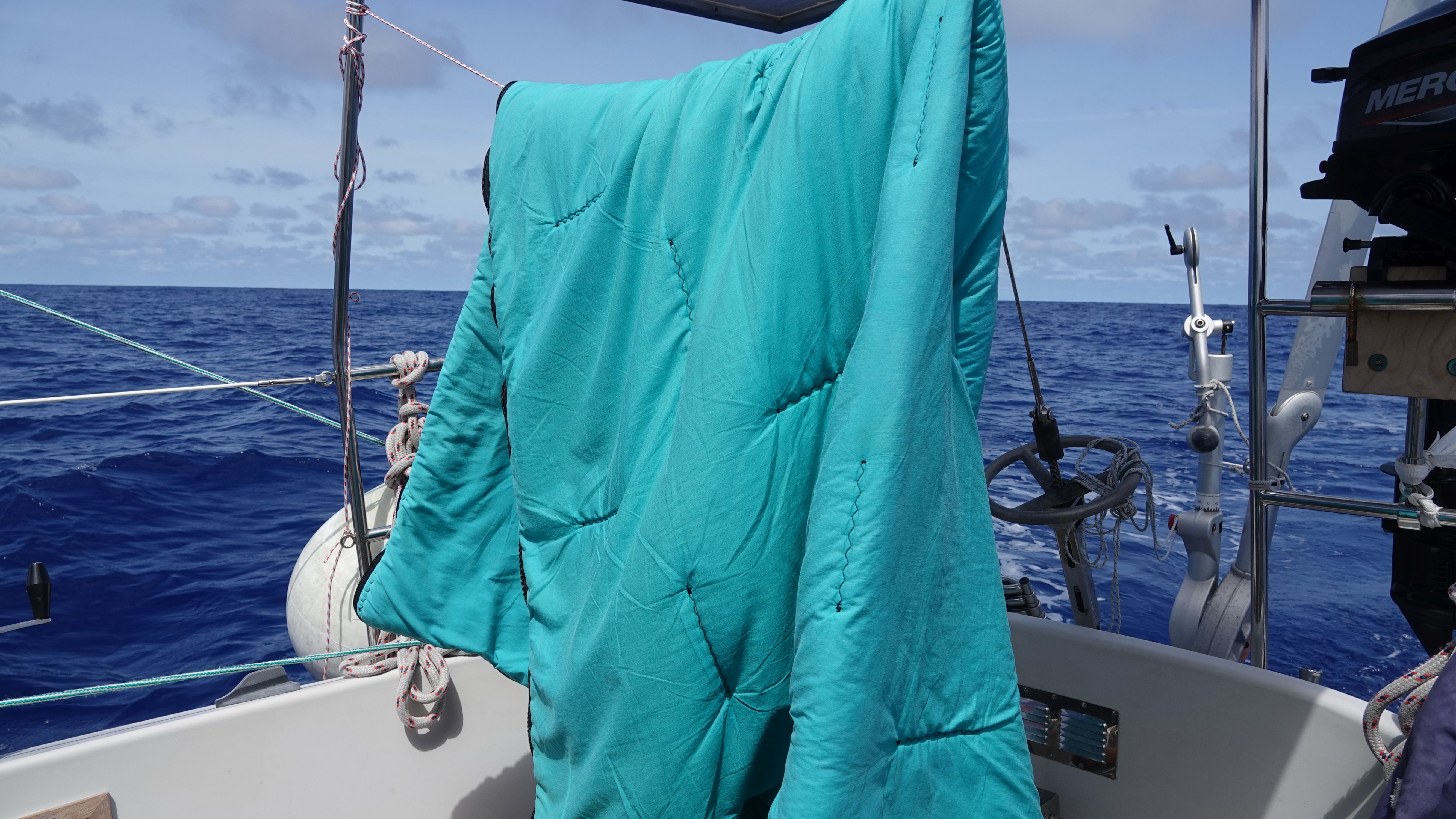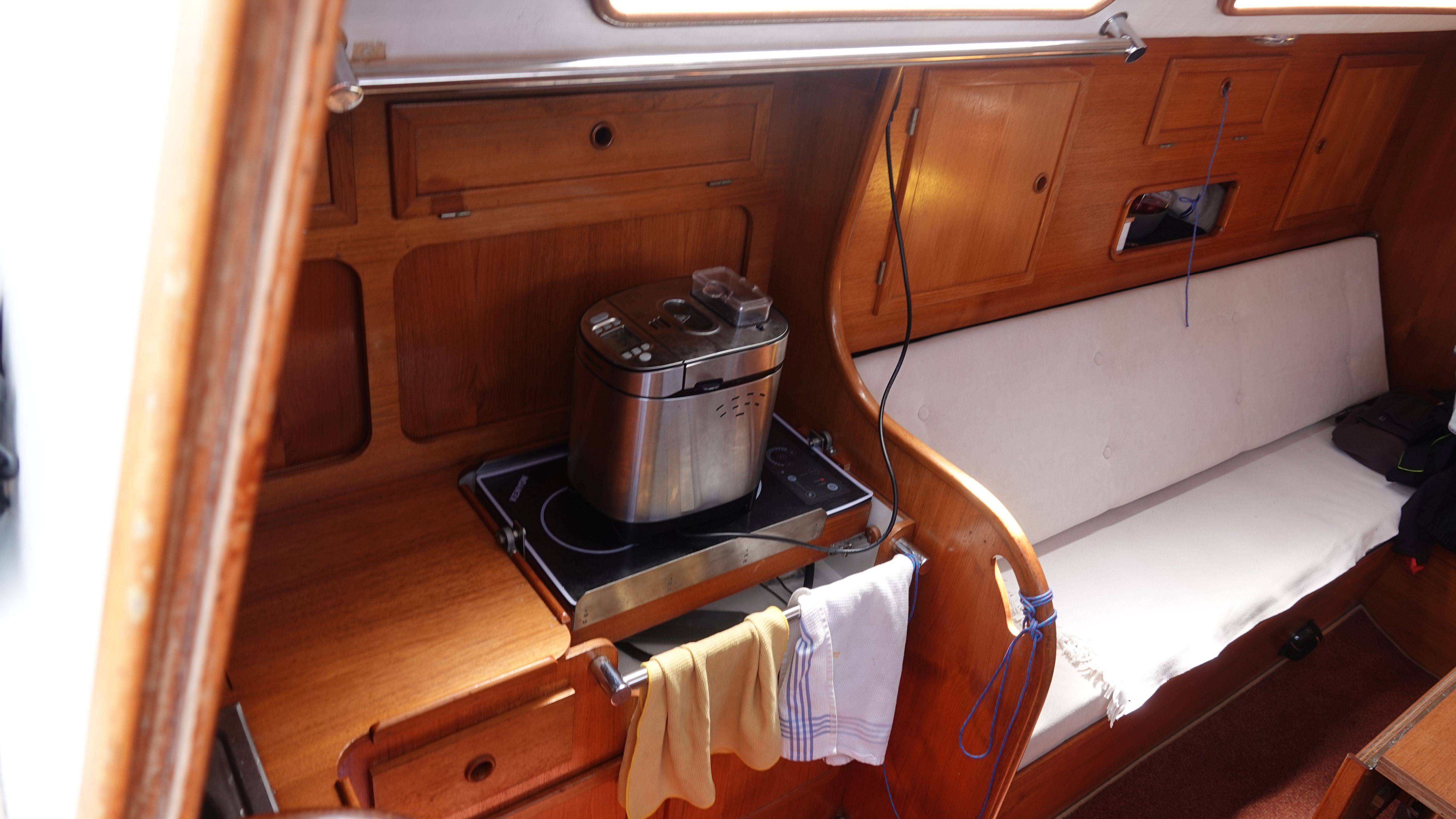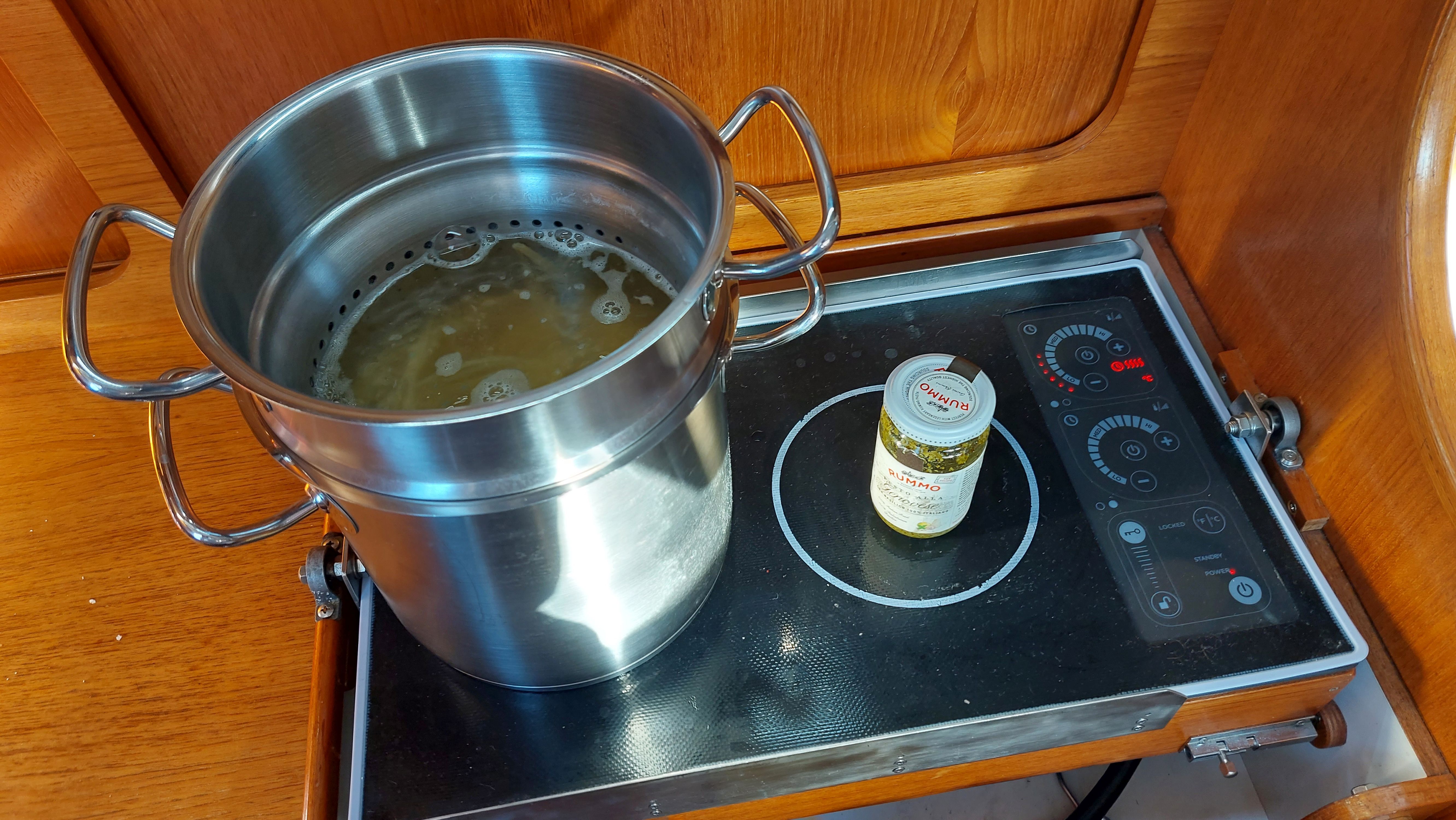 Die Flaute hat auch Vorteile: Es ist zumindest tagsüber in der Sonne relativ warm an Bord und ich kann uns ein richtiges Abendessen kochen.