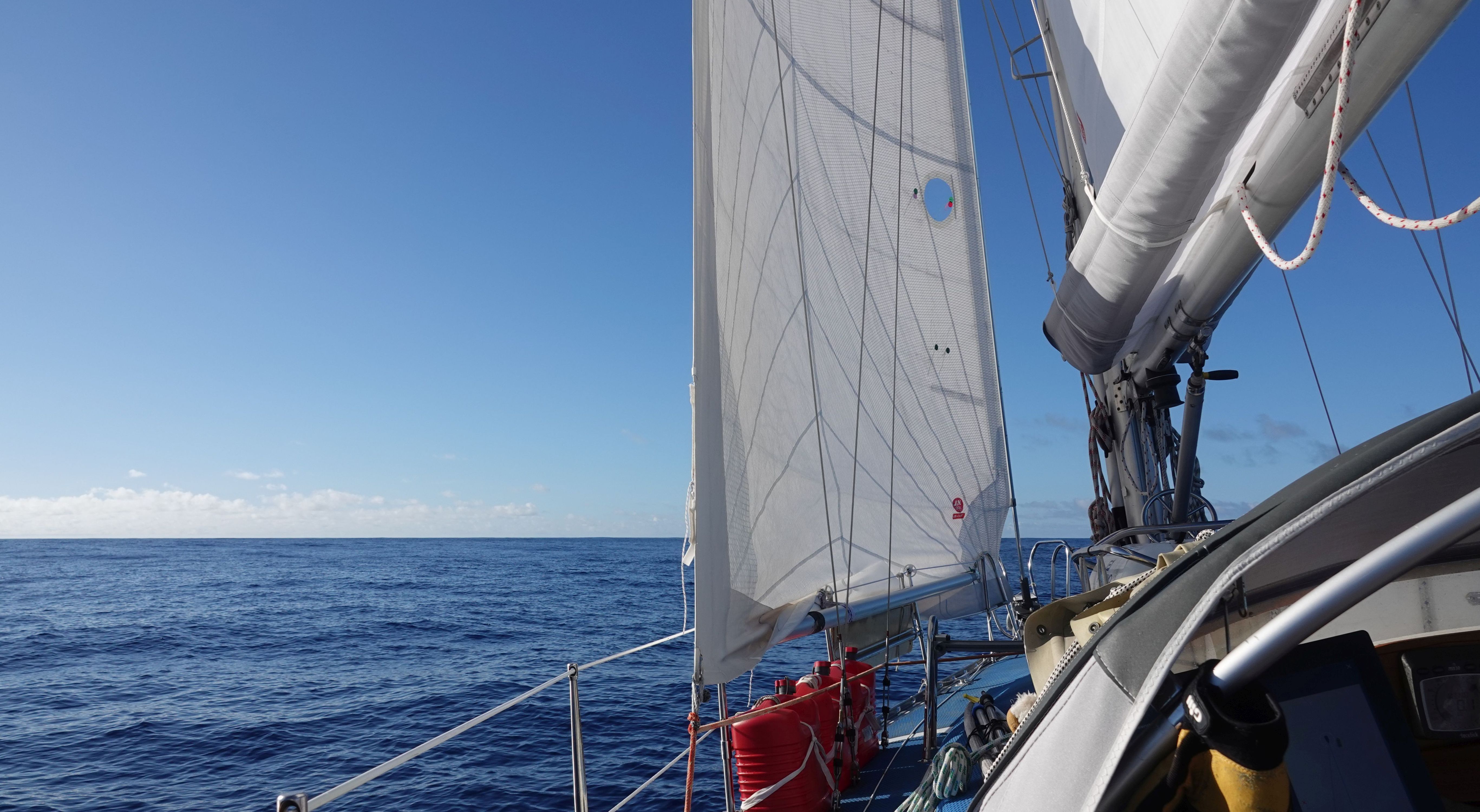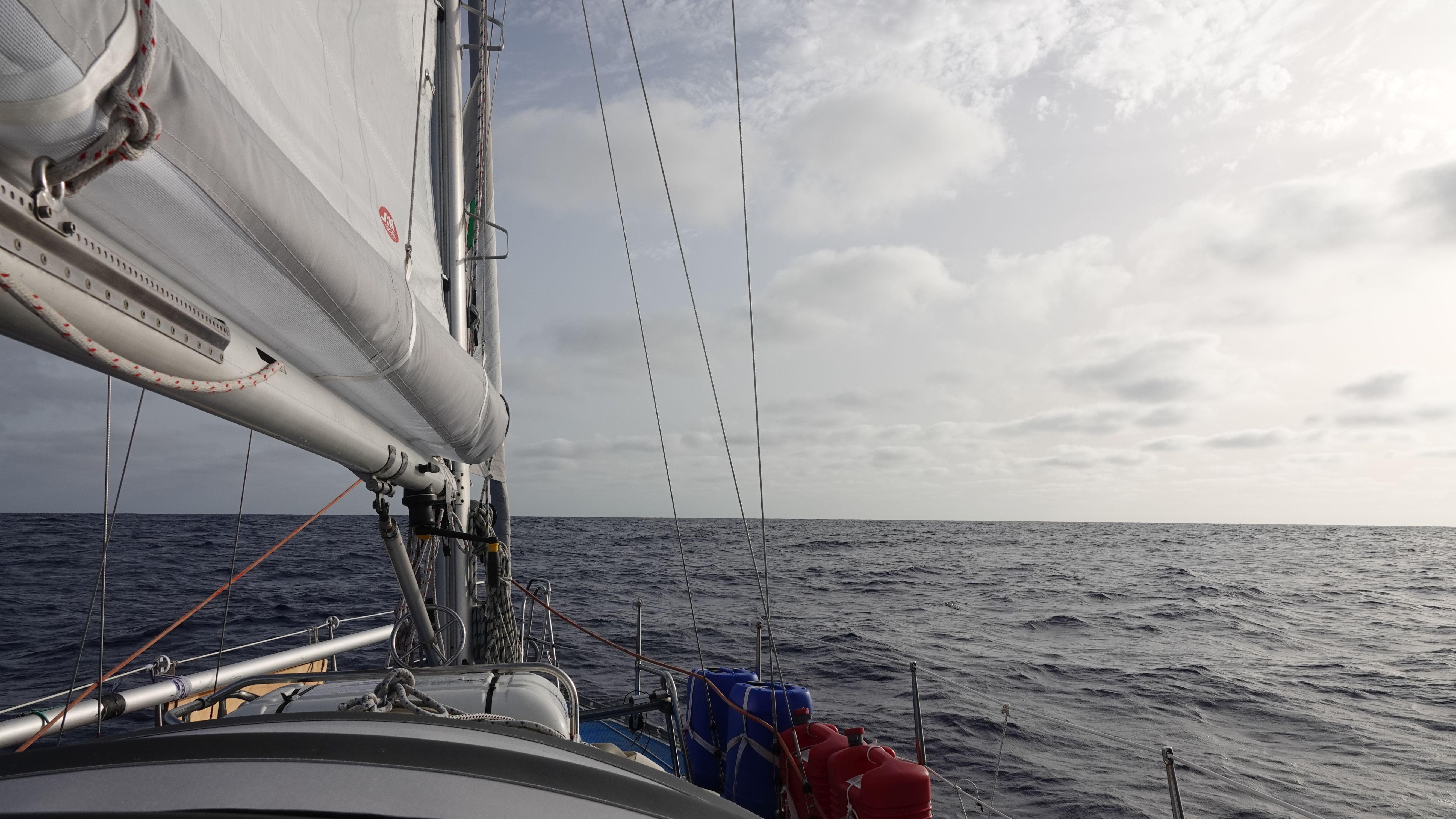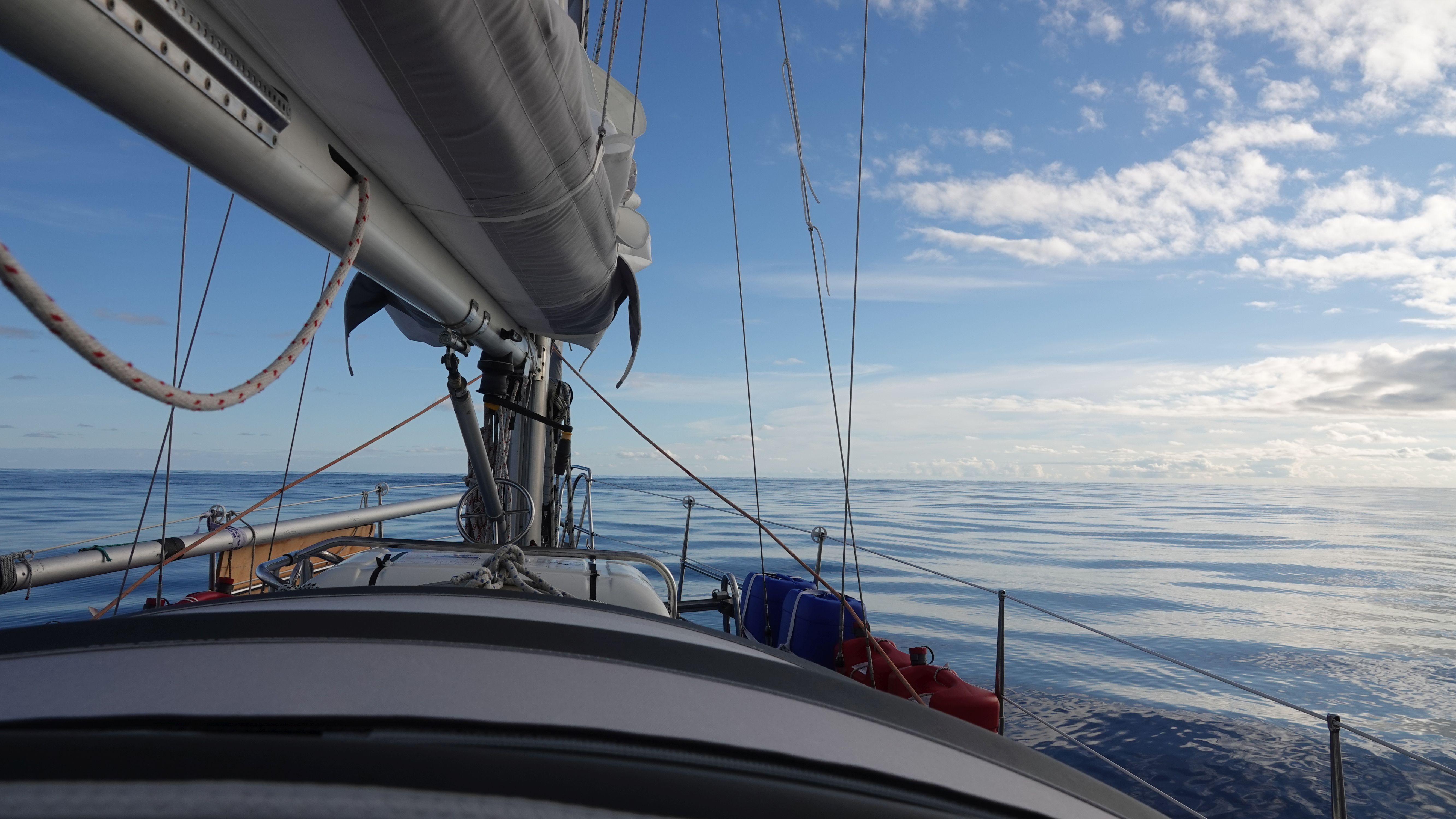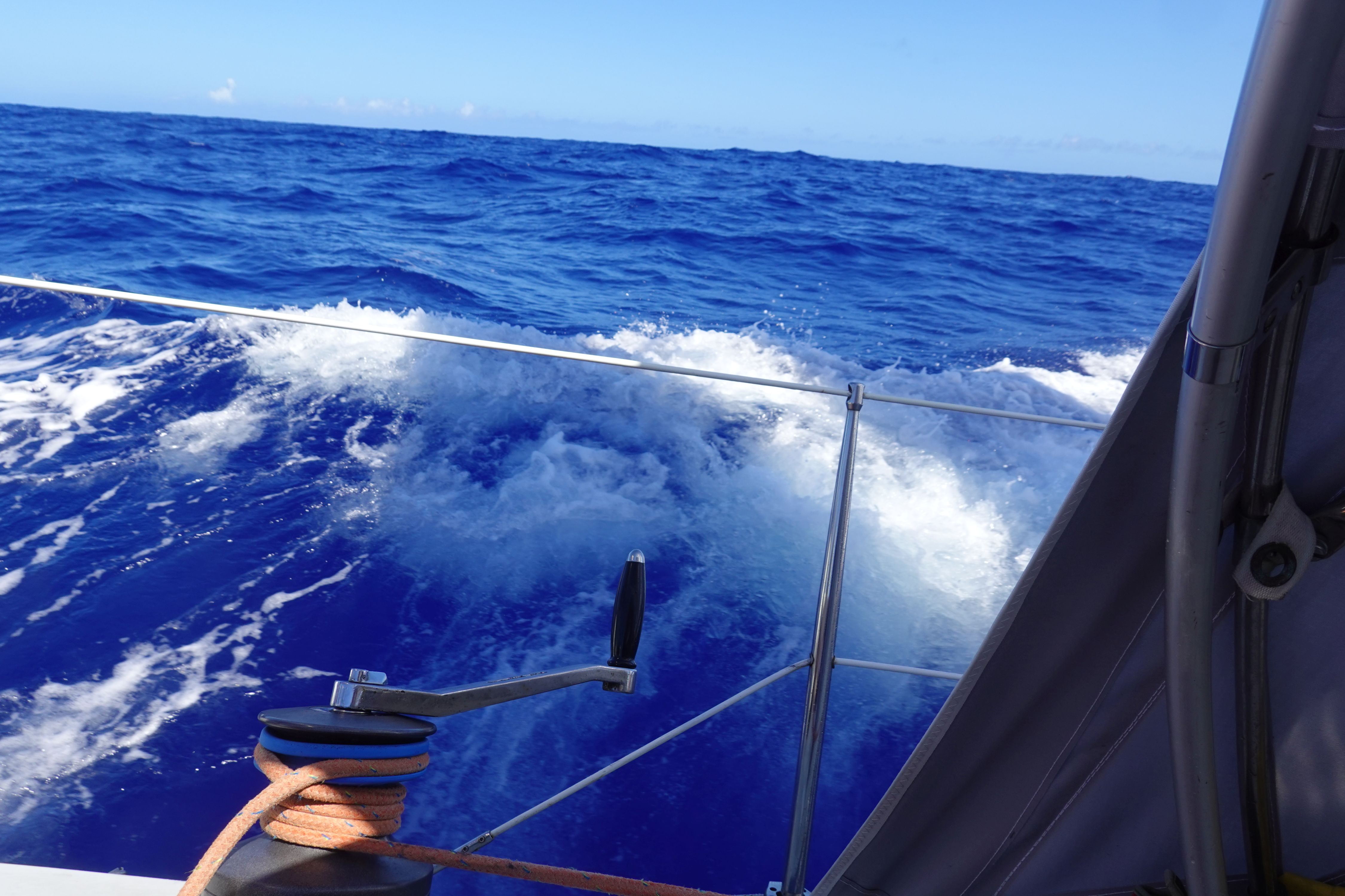 Über Nacht schwacht der Wind dann immer weiter ab. Wir setzen wieder mehr Tuch bis der Wind am Sonnabendmorgen komplett einschläft und nur noch die gewaltige Dünung an die vorangegangenen Stunden erinnert.