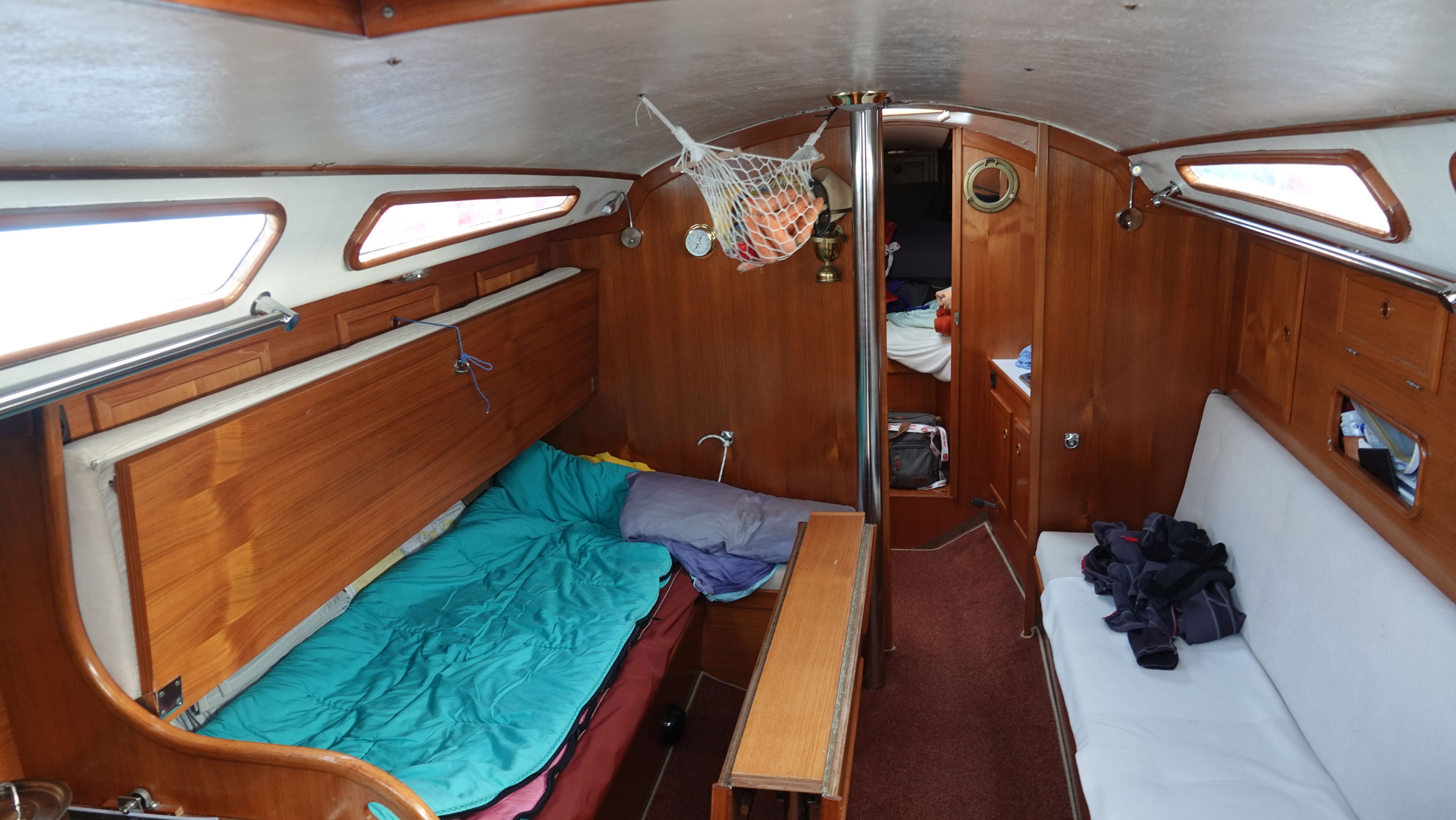 Nach einem Anruf in Hamburg räumen wir erst einmal unter Deck auf. Das Wasser, das