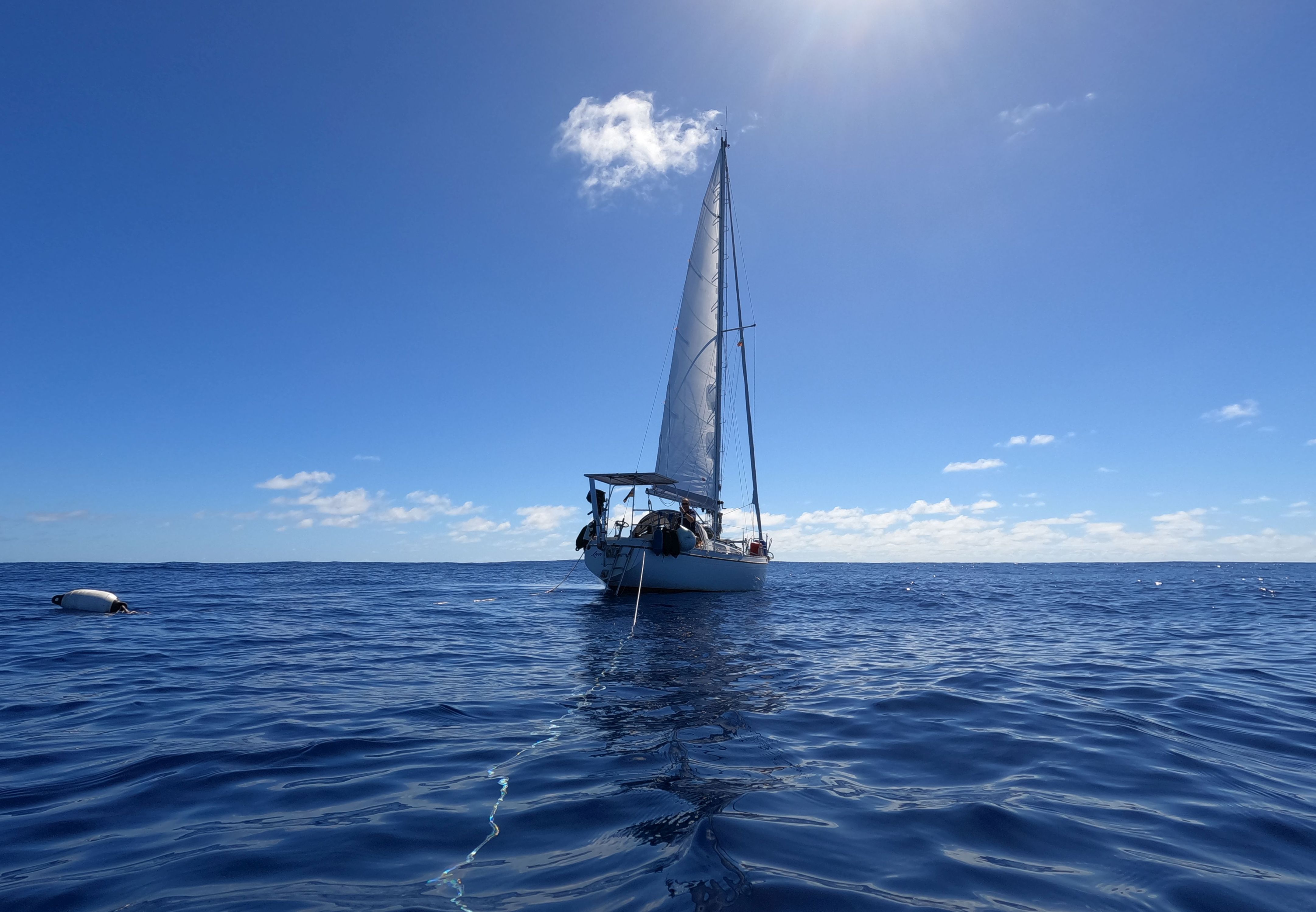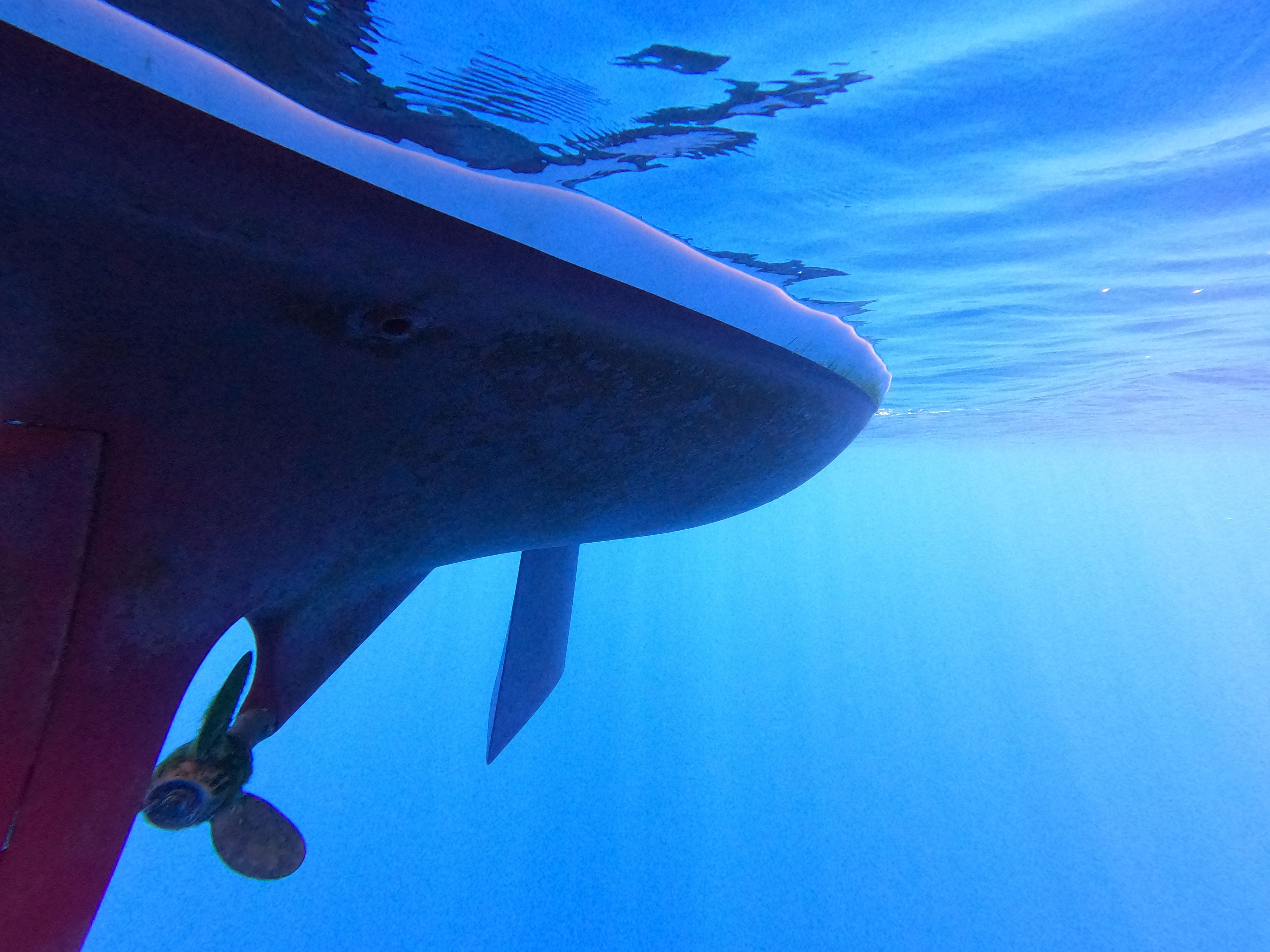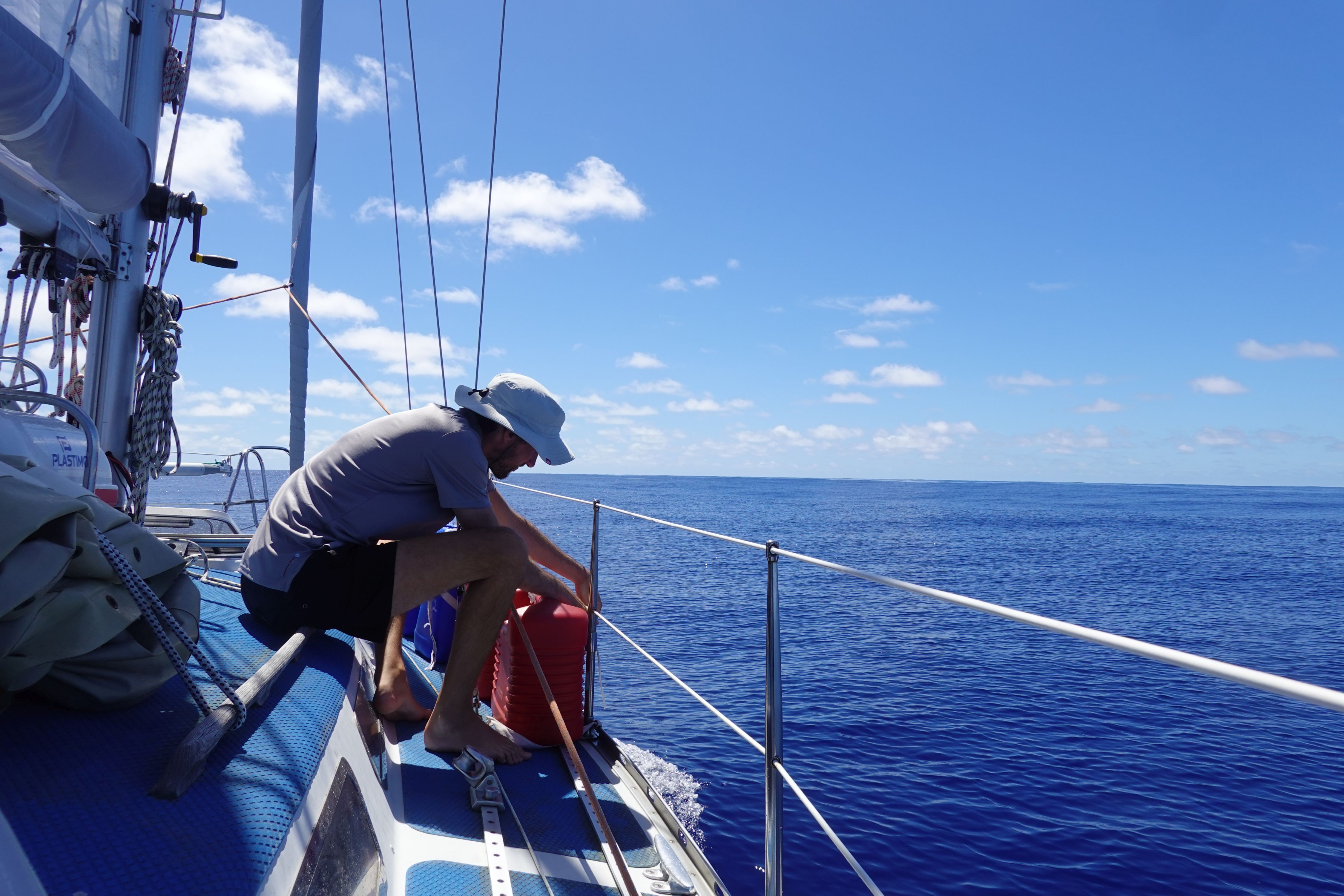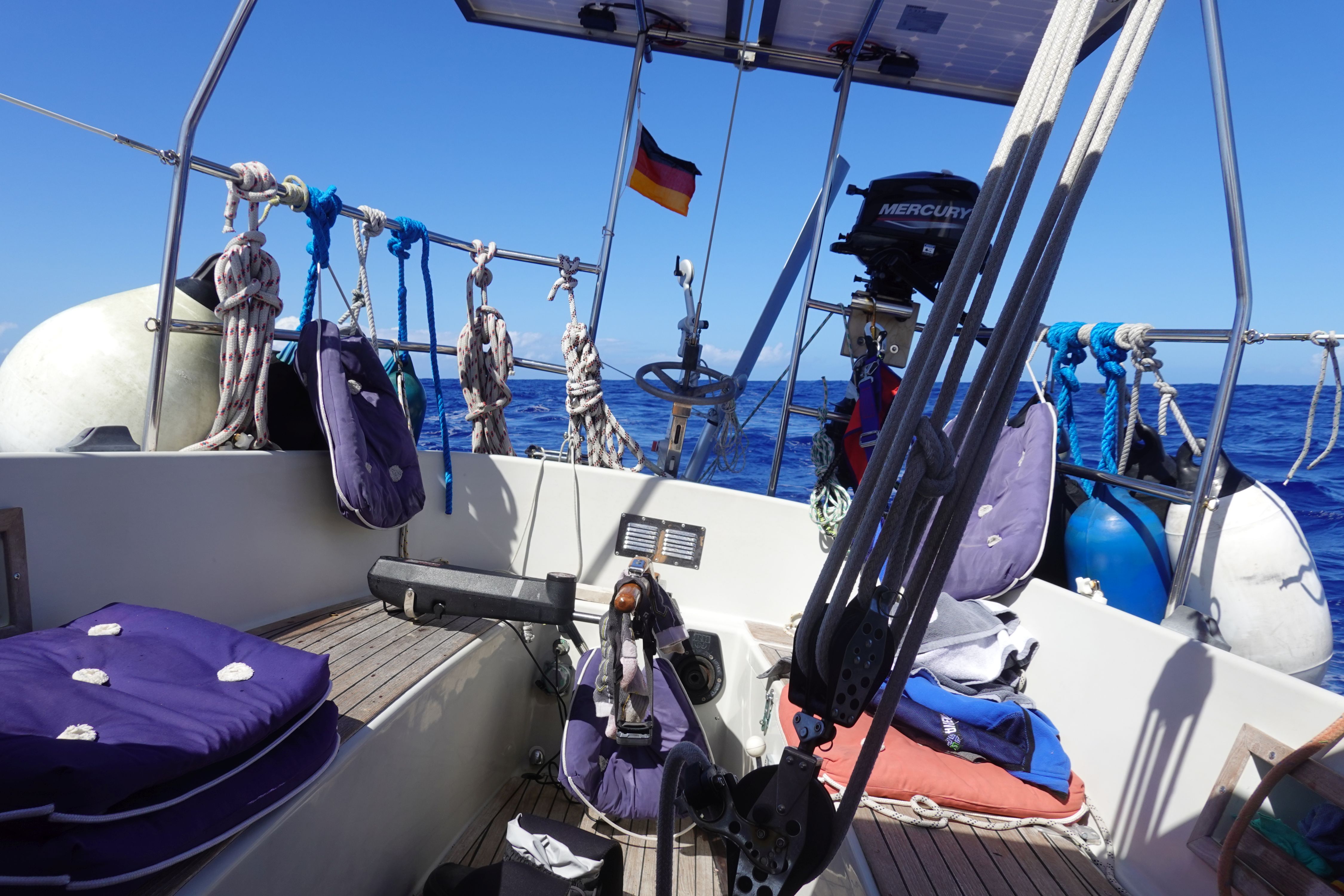 Bevor wie die Maschine starten und durch die Flaute motoren "dusche" ich am Heck und gehe eine Runde schwimmen. Ein unbeschreibliches Gefühl, mit viertausend Metern Wasser unter mir und weit und breit nur Wasser, Horizont und Lua.