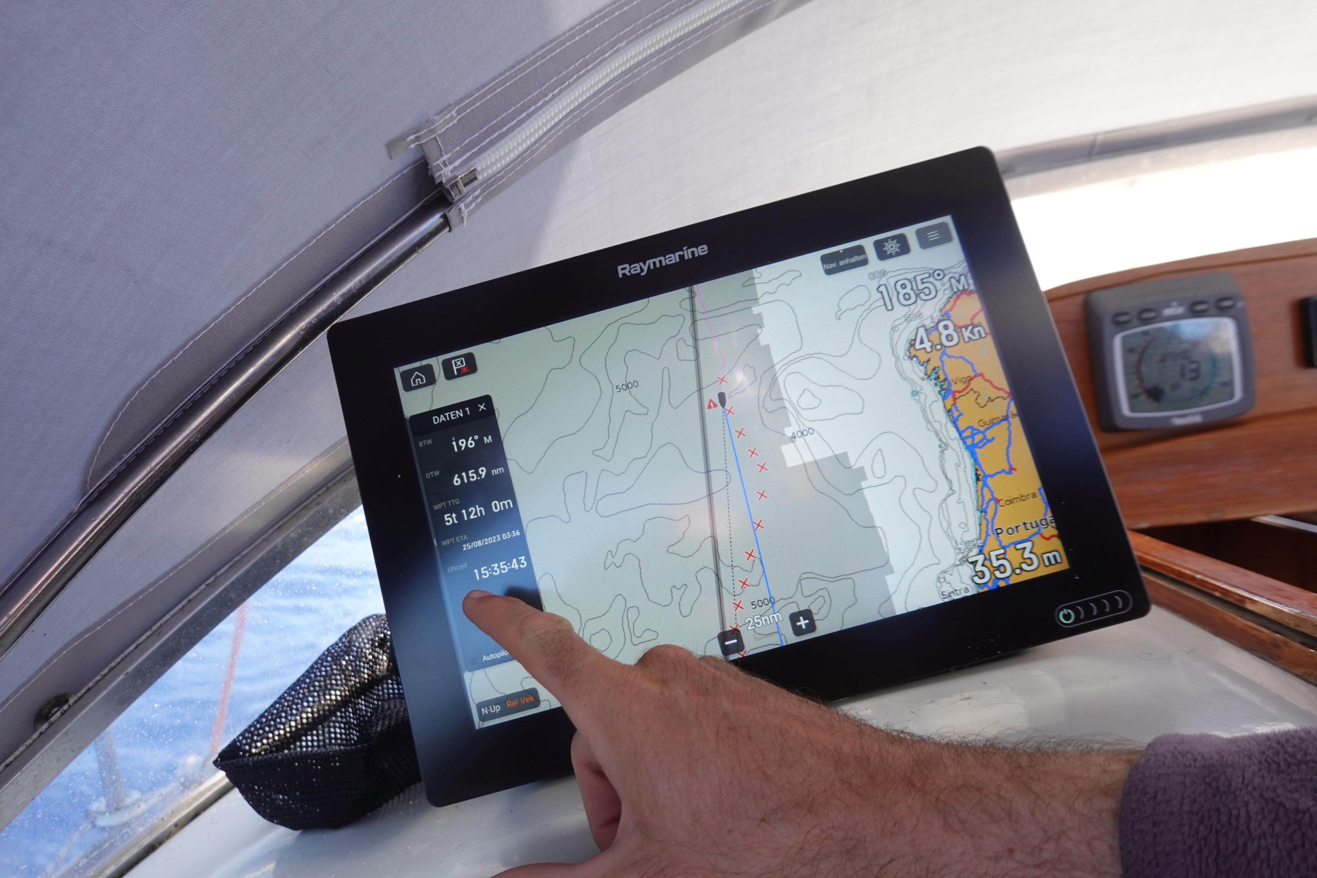 Schnell ist der Arm des elektrischen Autopiloten aus der Backskiste gefischt und
