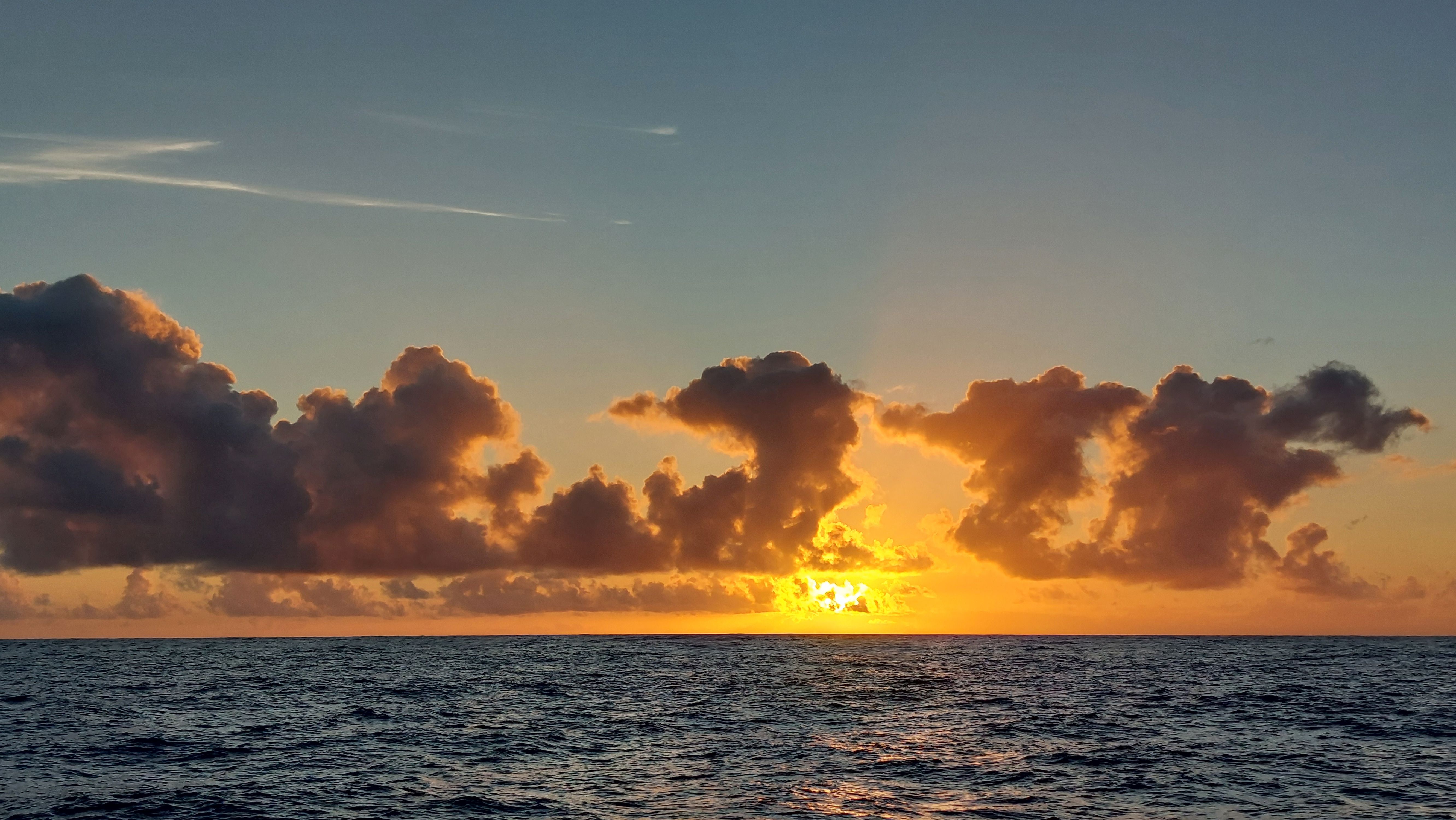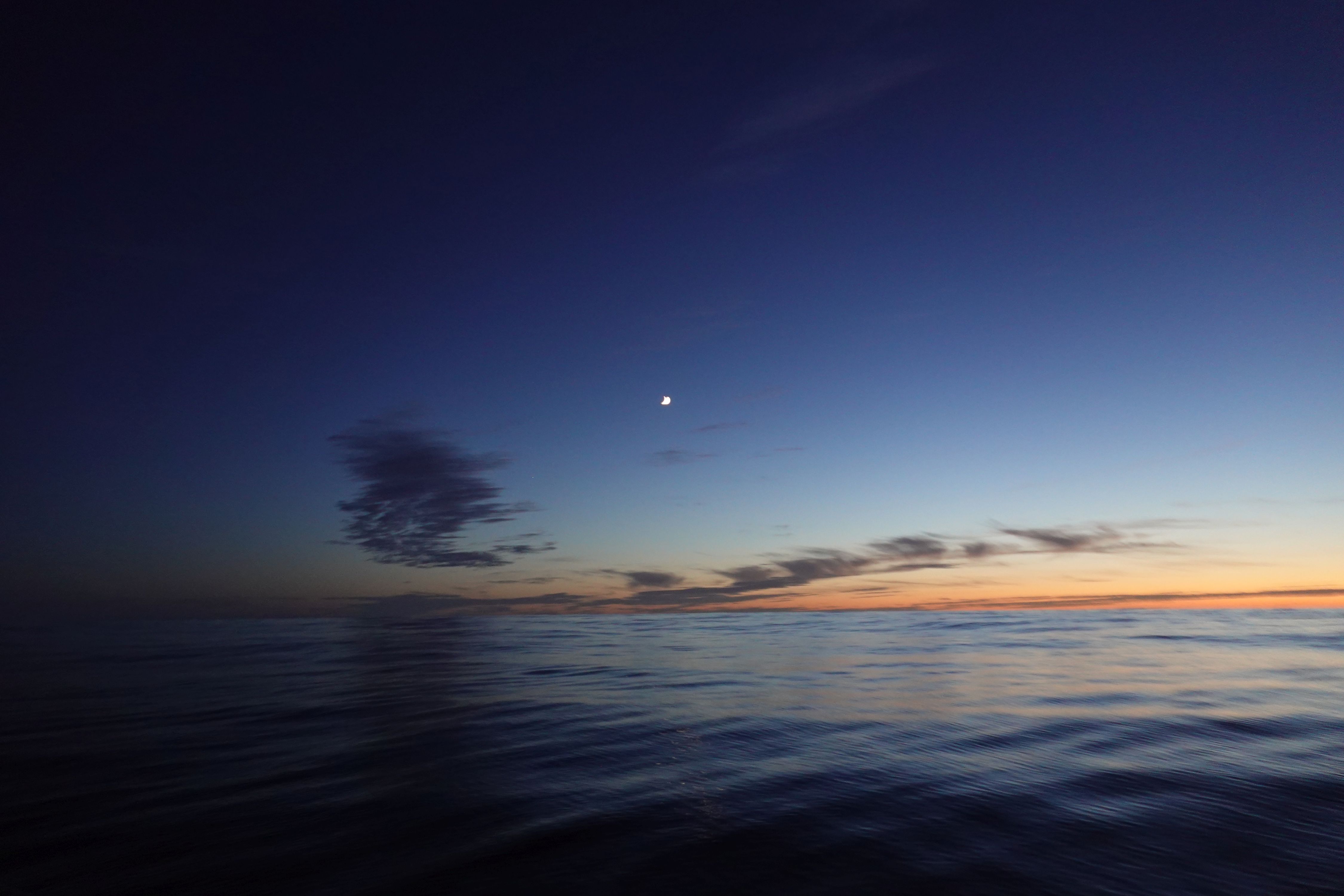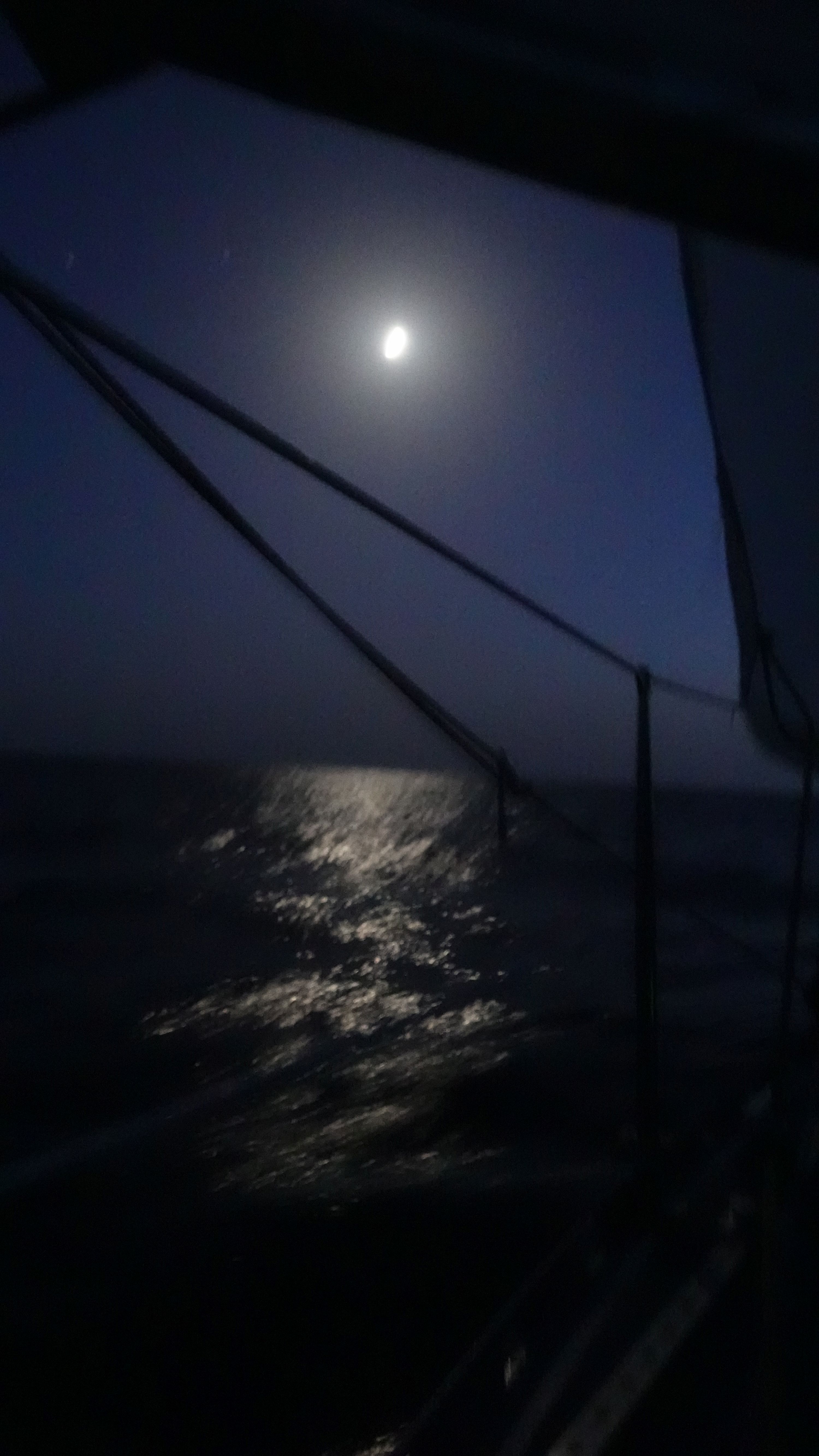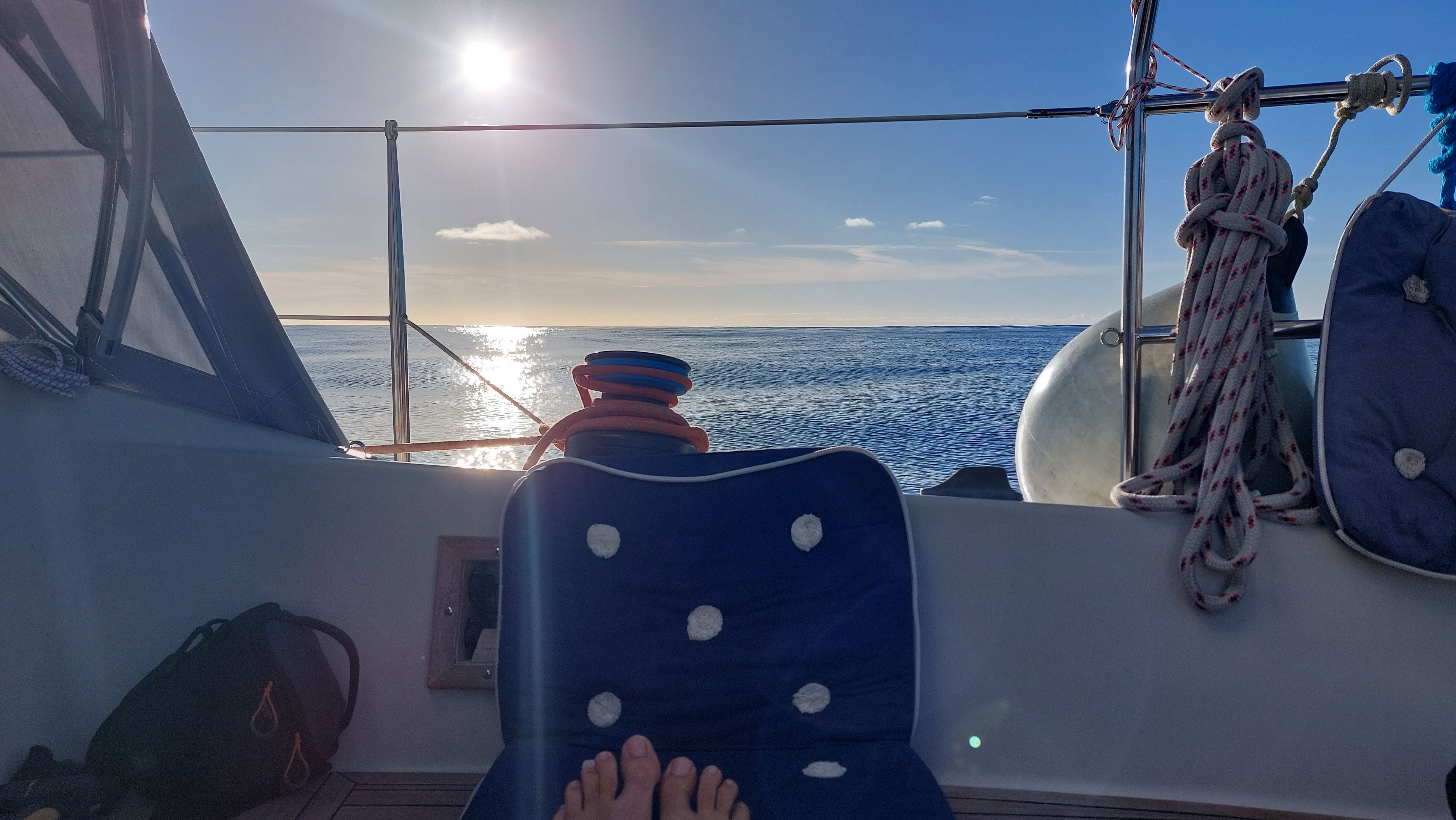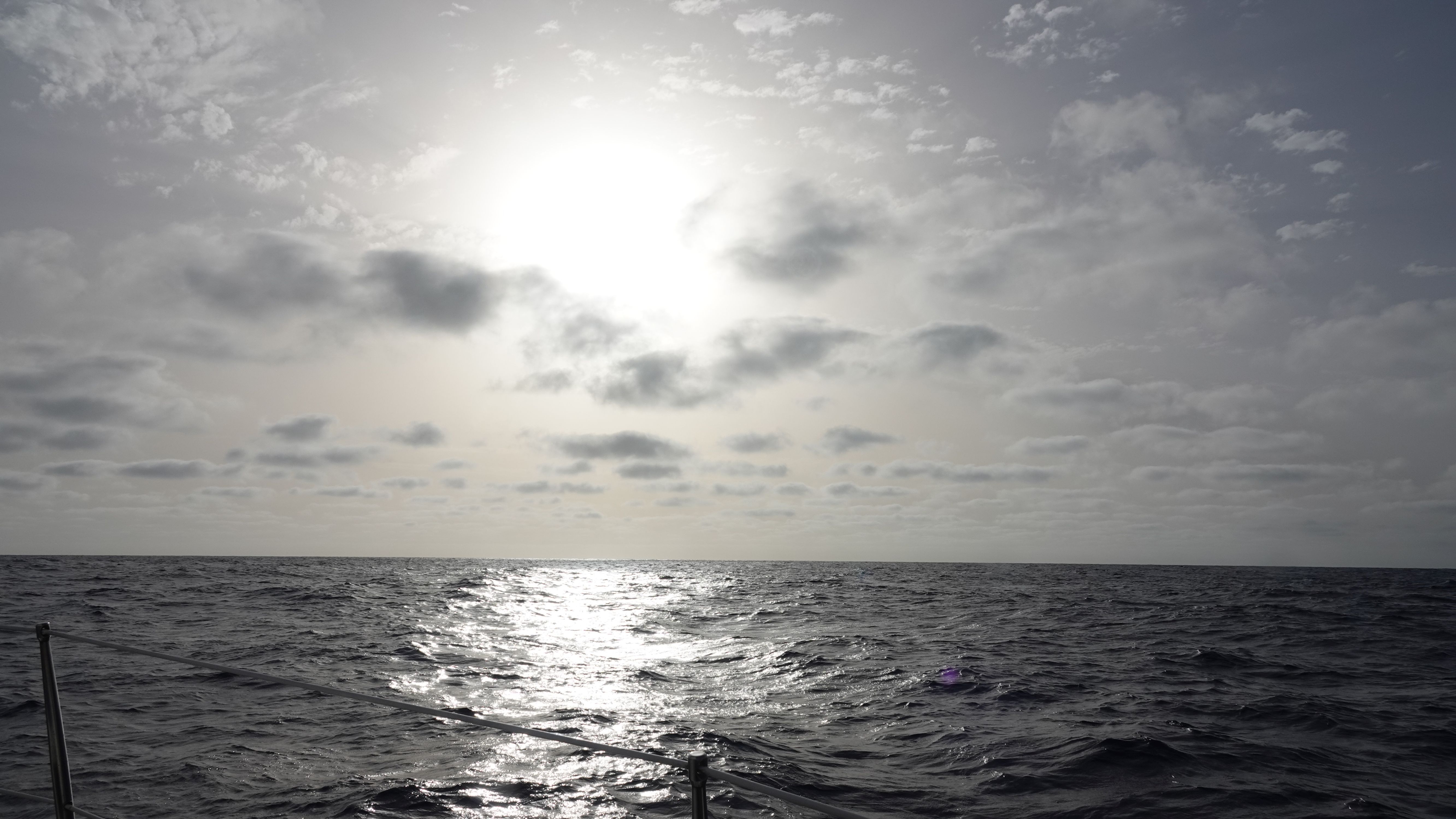 Es folgt der bisher schönste Segeltag. Der Wind bleibt schwach und irgendwie südlich, aber es reicht zum Segeln, die Sonne scheint und tagsüber ist es warm. Selbst nachts eingepackt in ein halbes Dutzend Lagen warmer Klamotten wird es aushaltbarer.