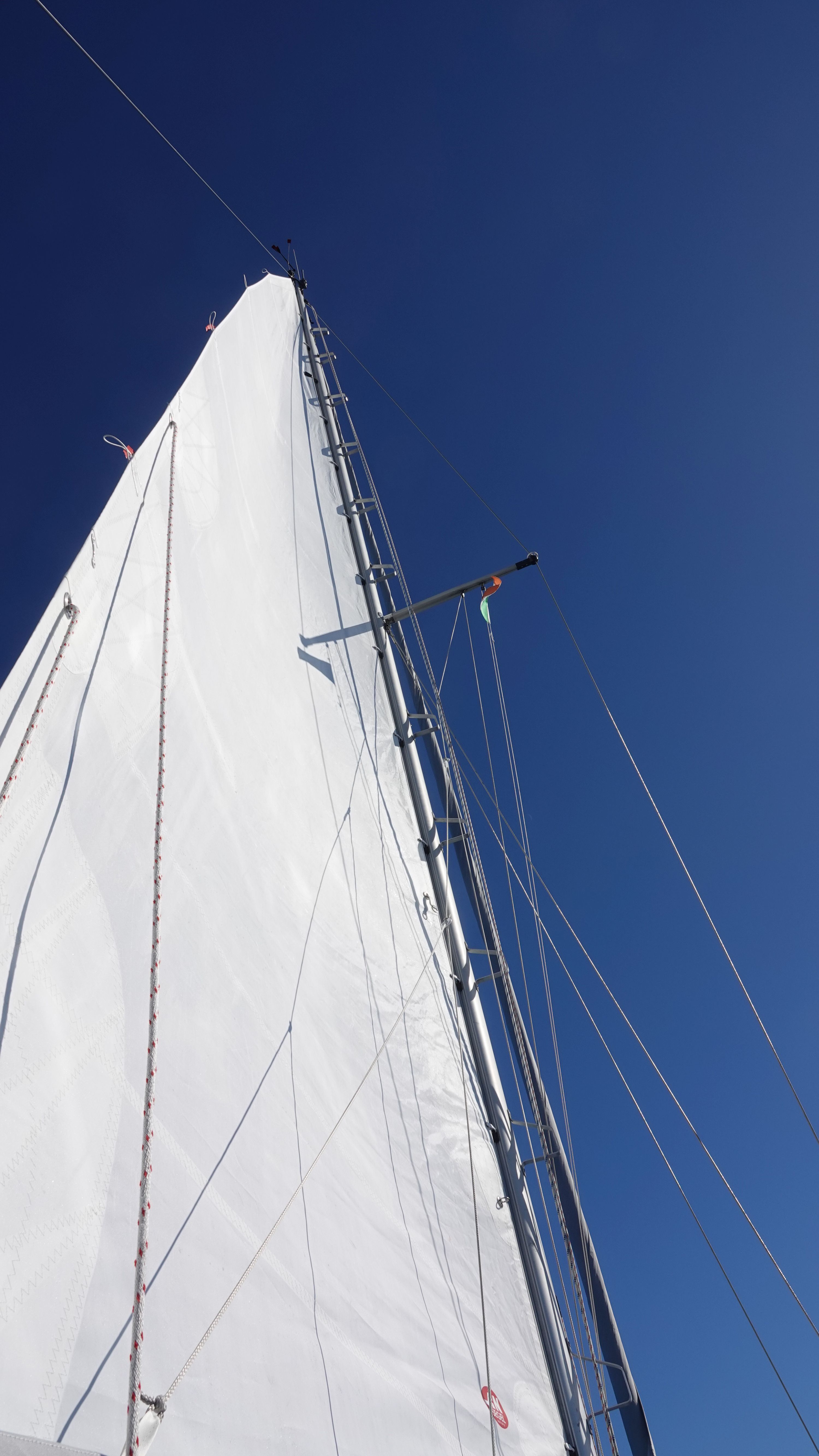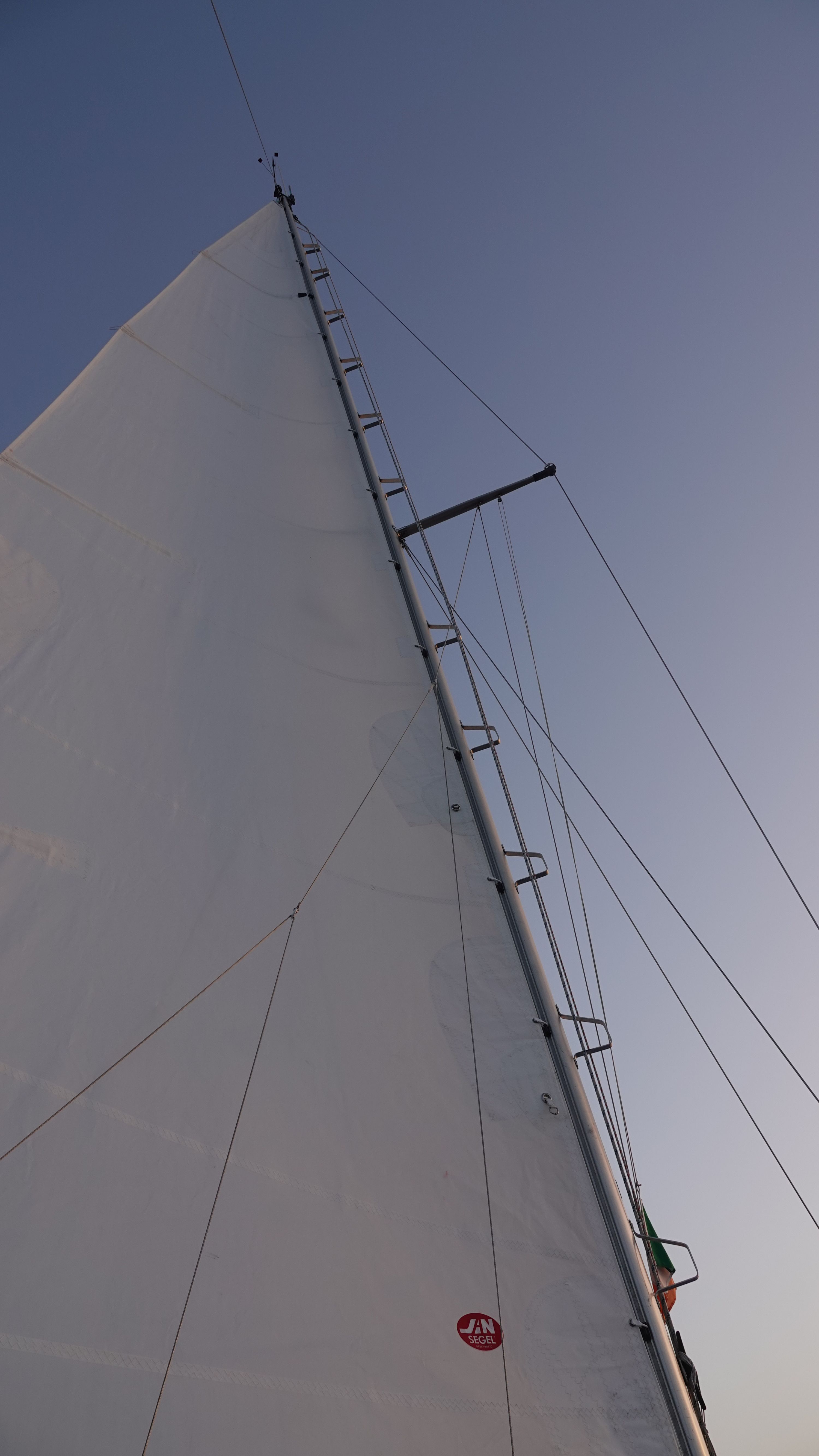 Jetzt bergen wir das Großsegel komplett. Am Abend reffen wir die Genua bis zur zweiten Markierung und beim ersten Wachwechsel um zweiundzwanzig Uhr verkleinern wir das Segel ein weiteres gutes Stück.