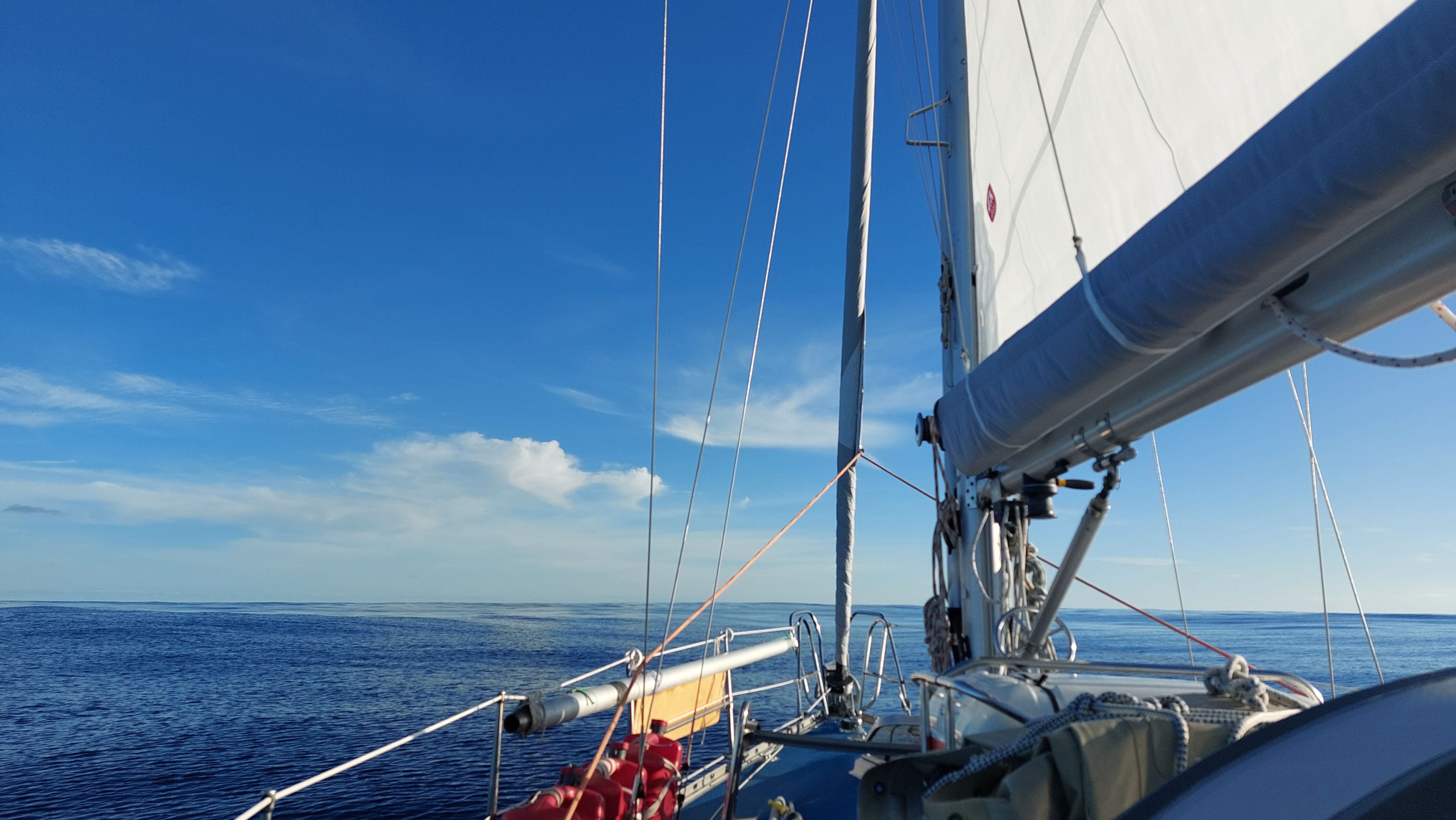 Ab Mittag können wir auch wieder segeln, noch immer mit südlichen Winden, so dass wir nicht direkt in Richtung Ziel laufen können, aber immerhin haben wir wieder etwas Ruhe an Bord.