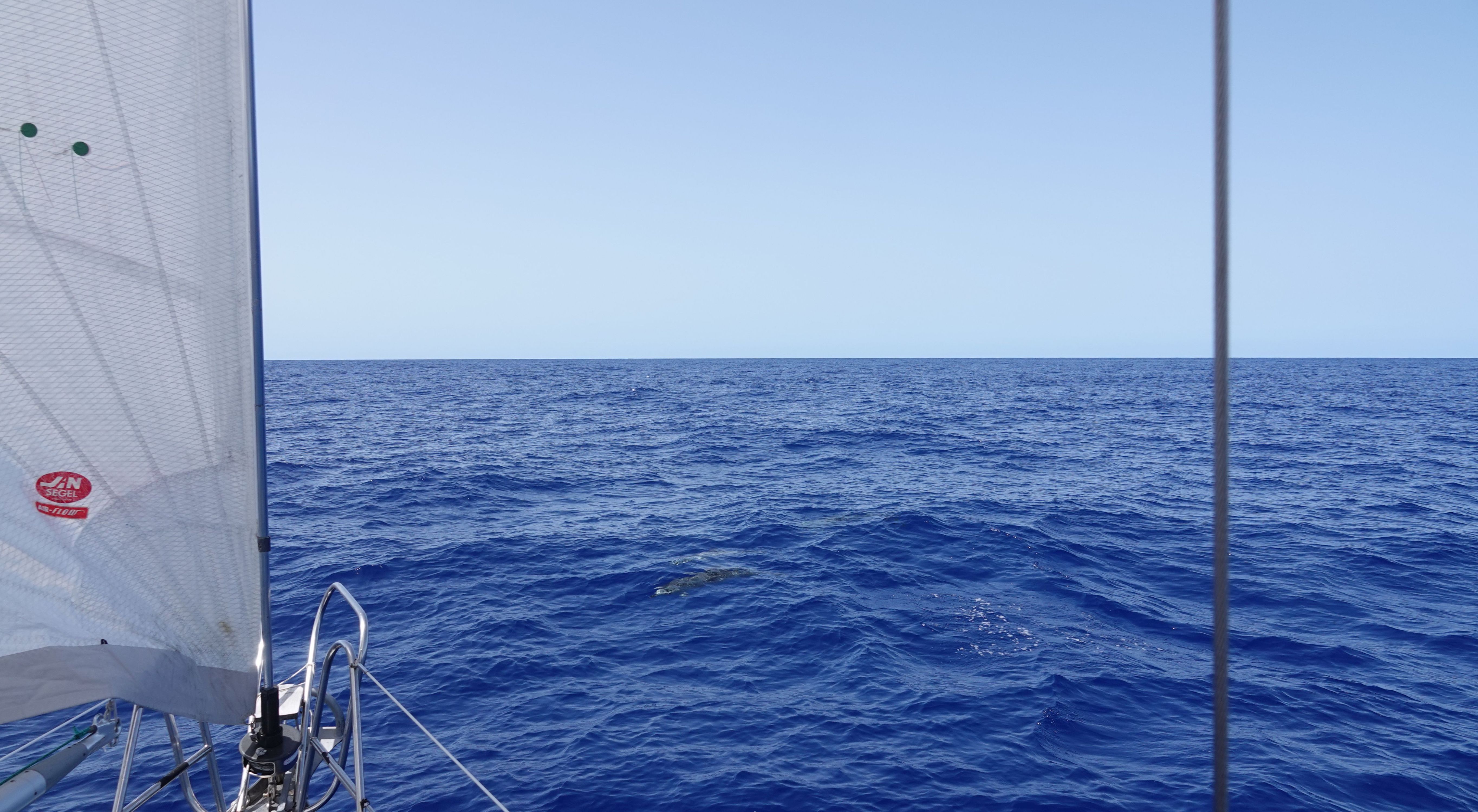 Ein Mondfisch treibt am Vormittag an uns vorbei und drei Portugiesische Galeeren sehen wir über den Tag verteilt an uns vorbeisegeln. Dazu jede Menge Delfine, die immer wieder mal kürzer, mal länger um Lua herum spielen.