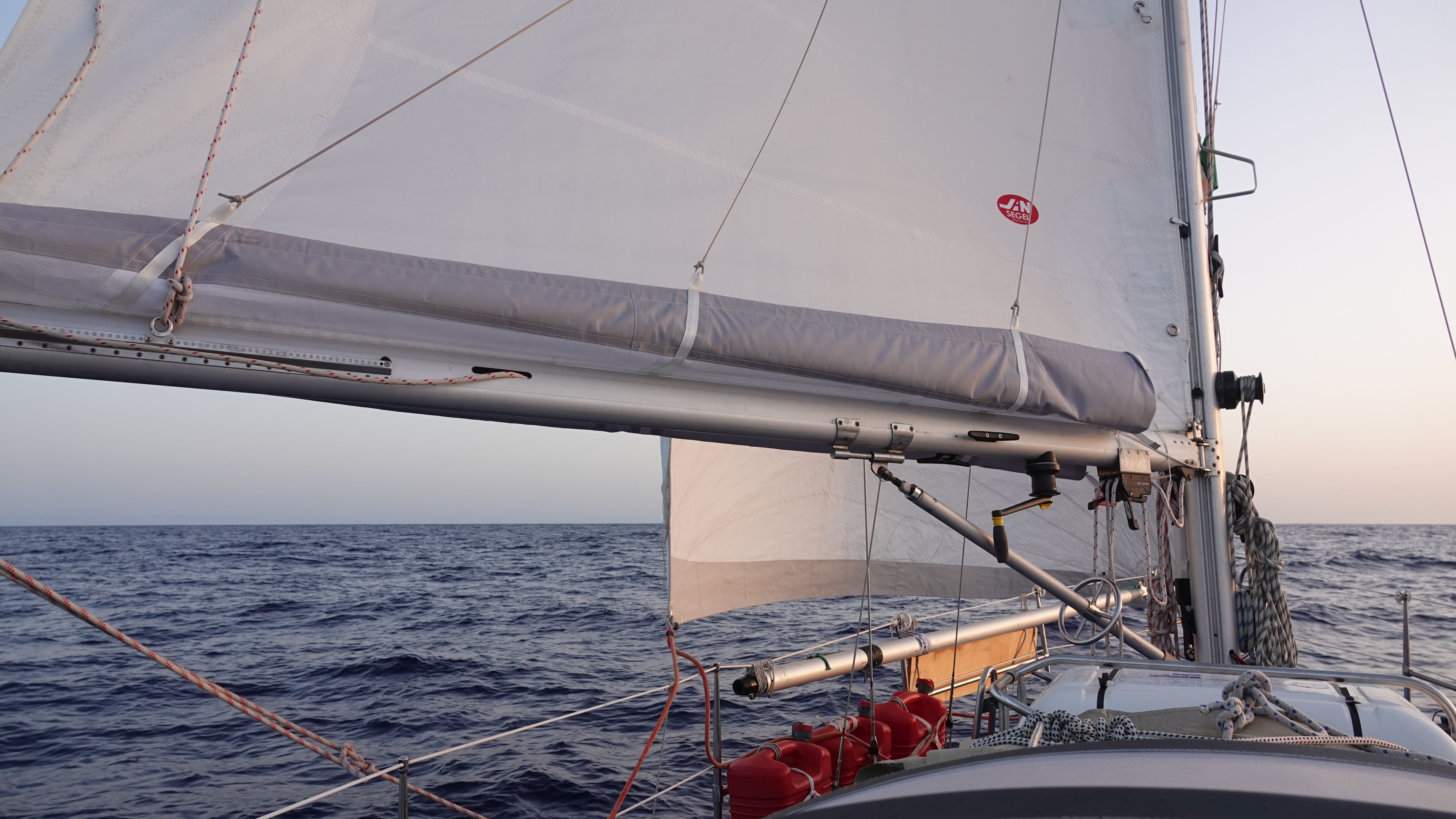 Irgendwann in der Nacht kommt der Wind wieder zurück und zum Wachwechsel um zwei Uhr früh können wir nach sechzehn Stunden Motorfahrt endlich wieder Segel setzen.