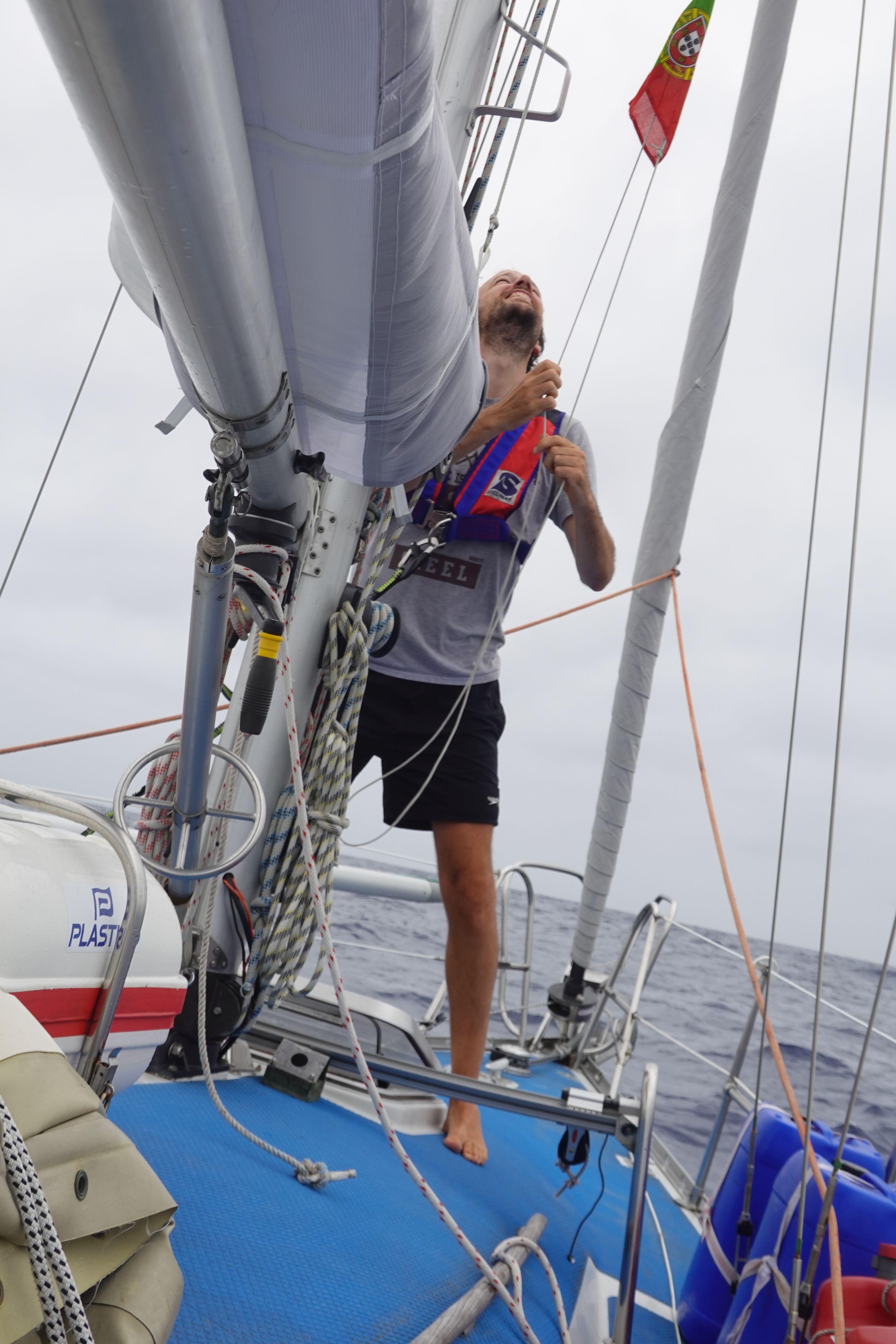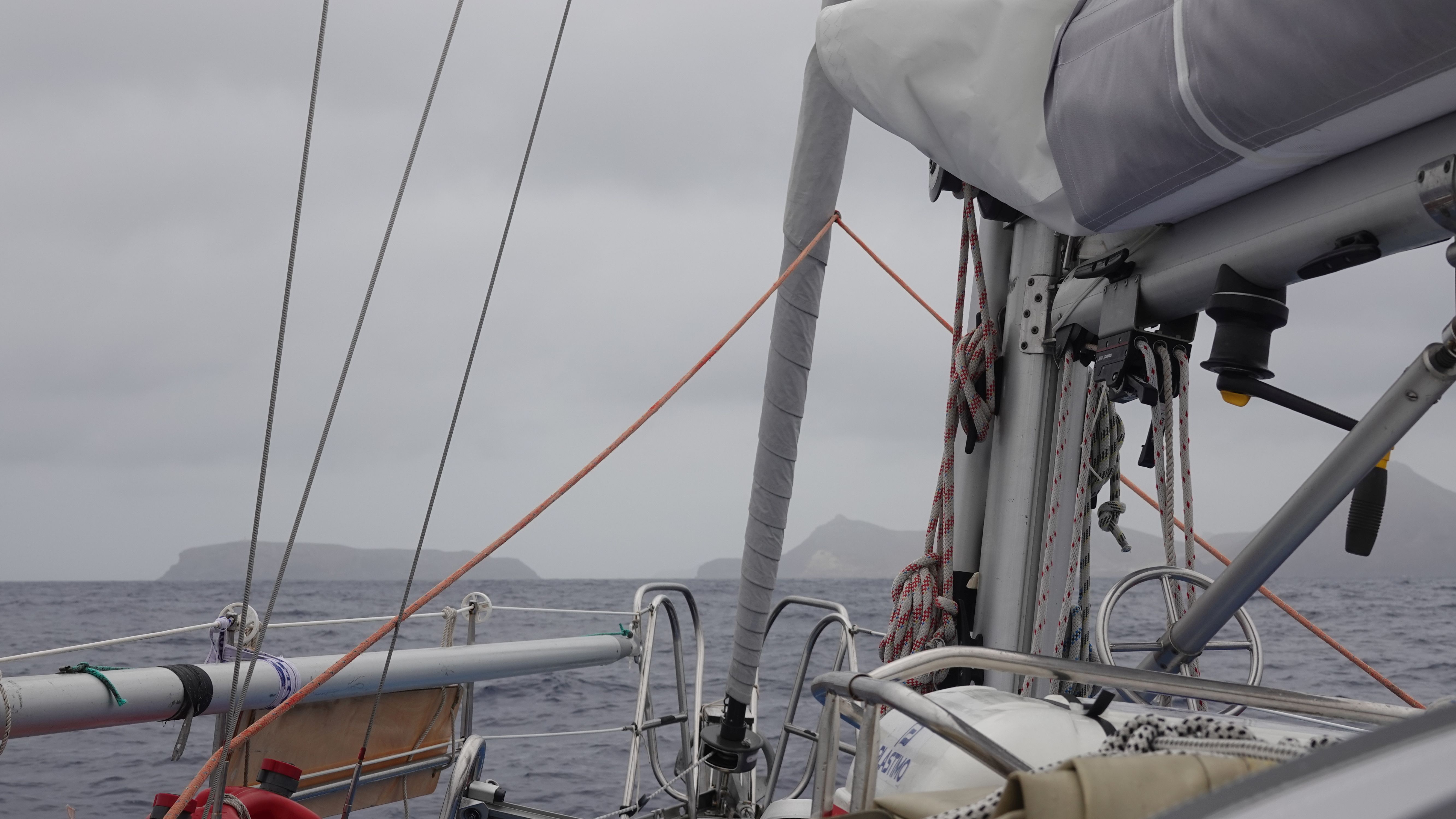 Die restliche Zeit verläuft enstpannt. Dienstagabend läuft nochmal für ein paar Stunden der Motor, ansonsten können wir segeln. Den Blister setzen wir leider kein zweites Mal. Ohne die Scheuerstelle am Fall zu beseitigen wollen wir das nicht riskieren und das zweite Spinnakerfall ist leider zwischen Vorstag und Genuafall vertörnt. Da ich wenig Lust habe ohne Zwang in der Dünung den Mast zu erklimmen, muss das bis Porto Santo warten.