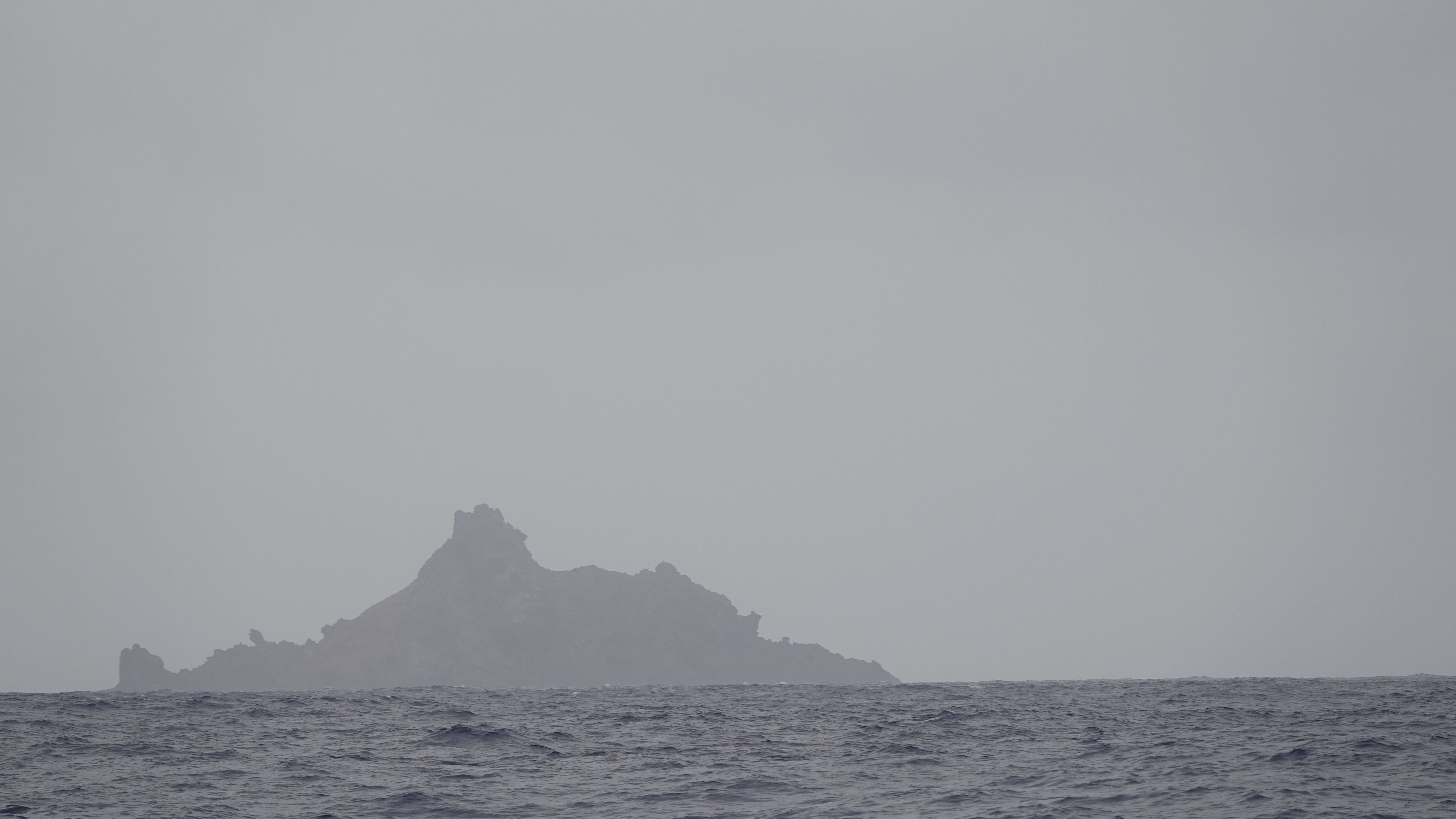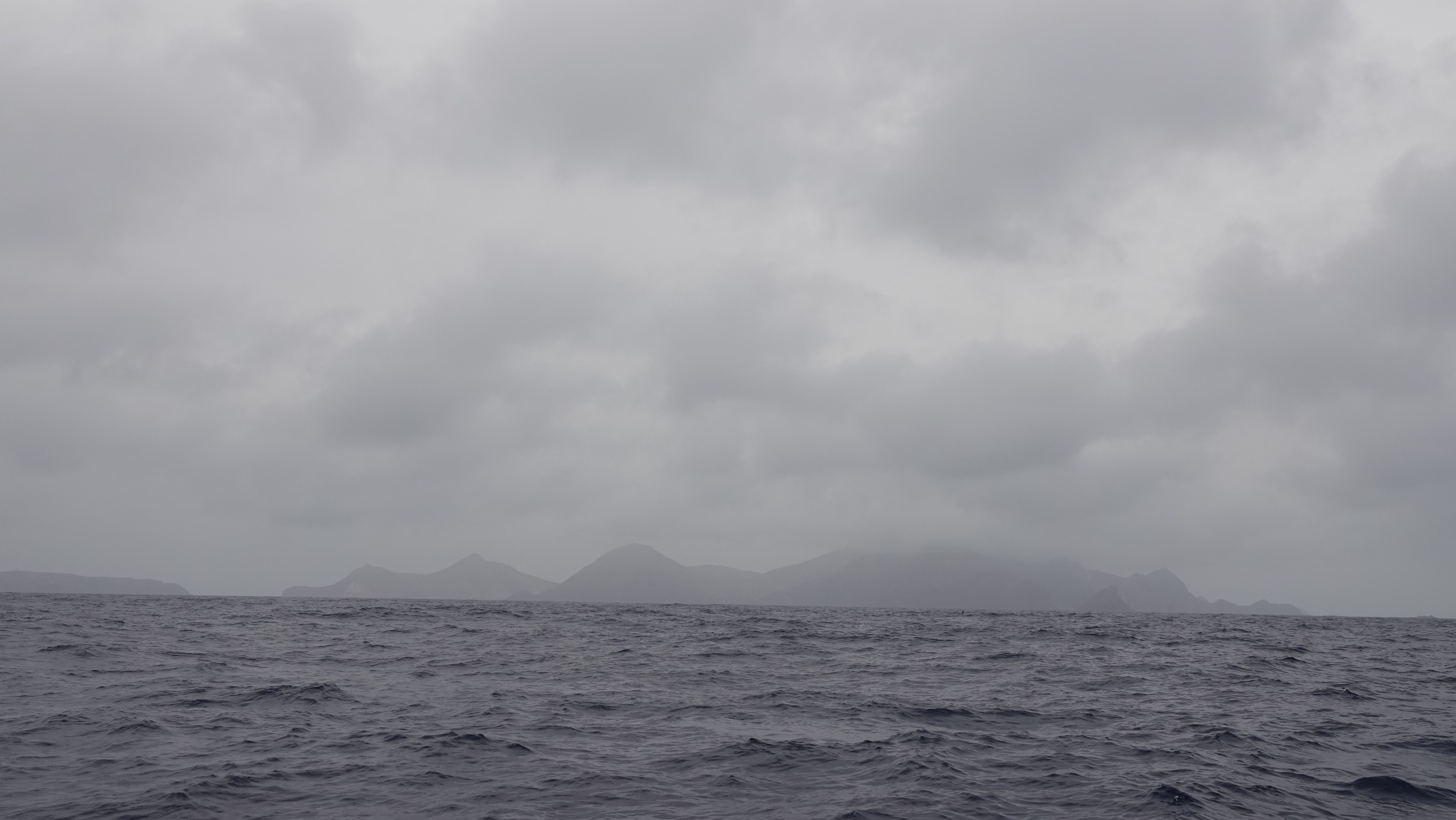 Kurze Zeit später taucht erstmals Porto Santo aus dem Dunst auf. Zunächst lassen sich die Bergspitzen nur schemenhaft ausmachen, doch nach und nach nimmt die Insel Form an.