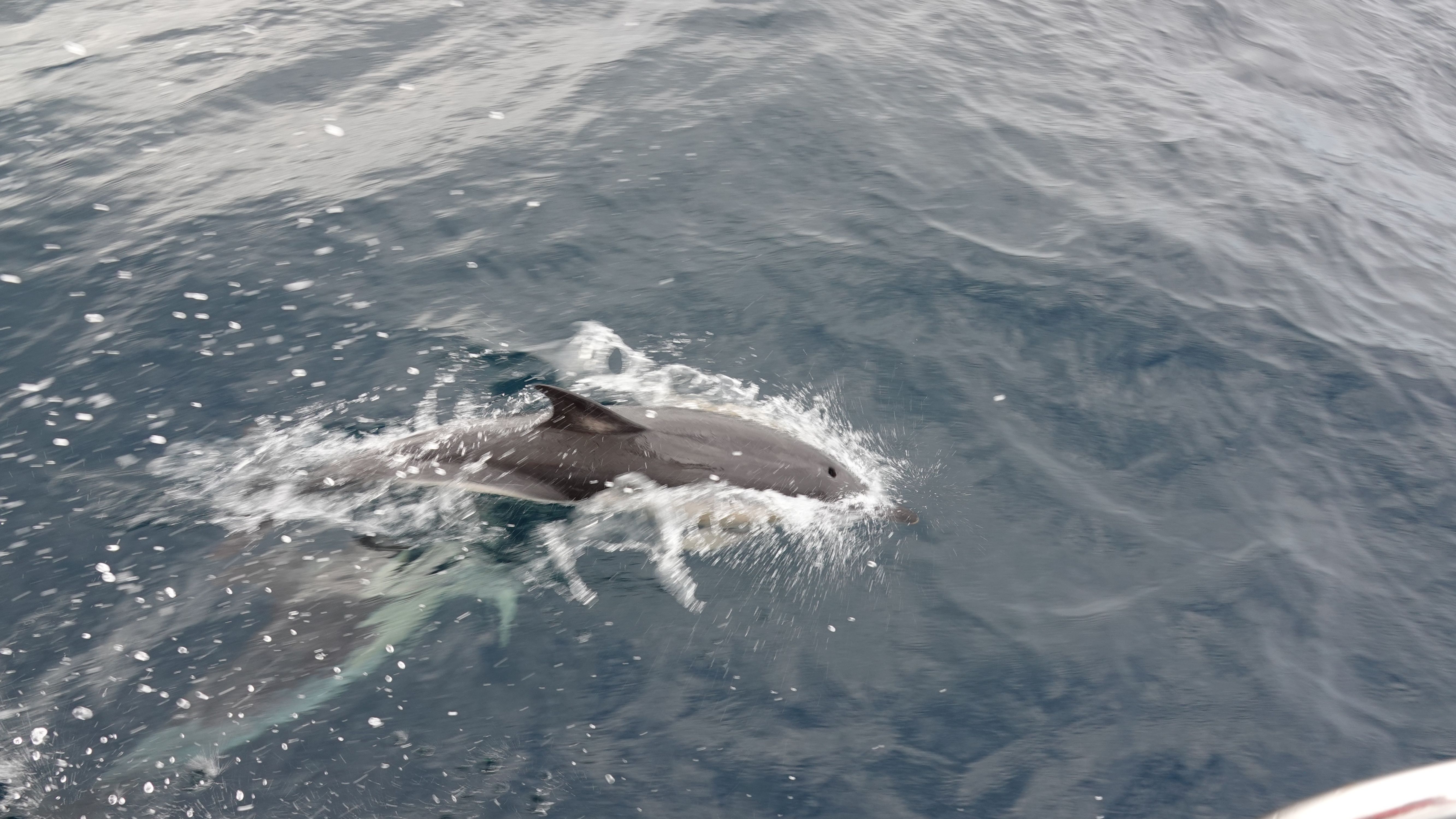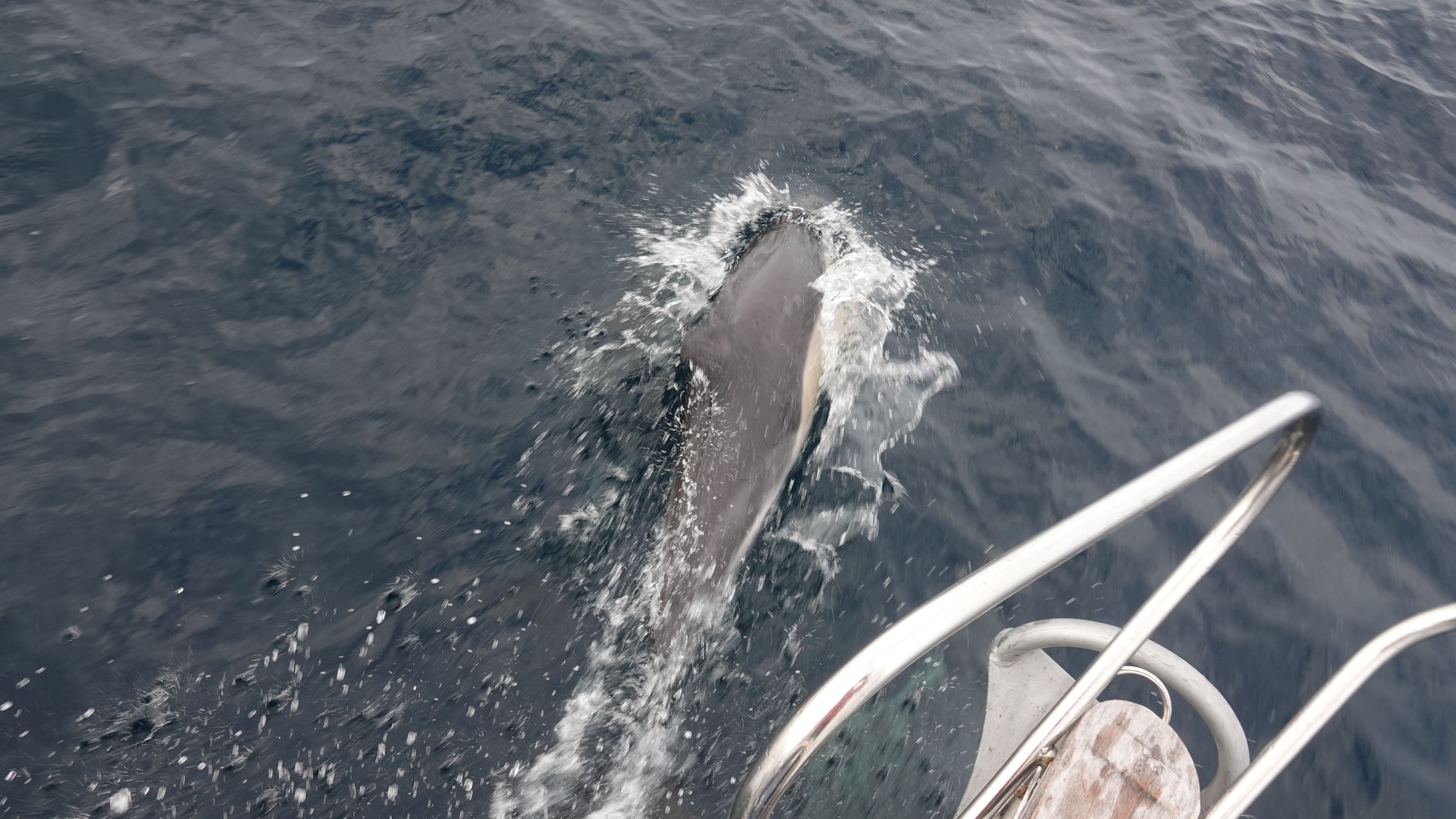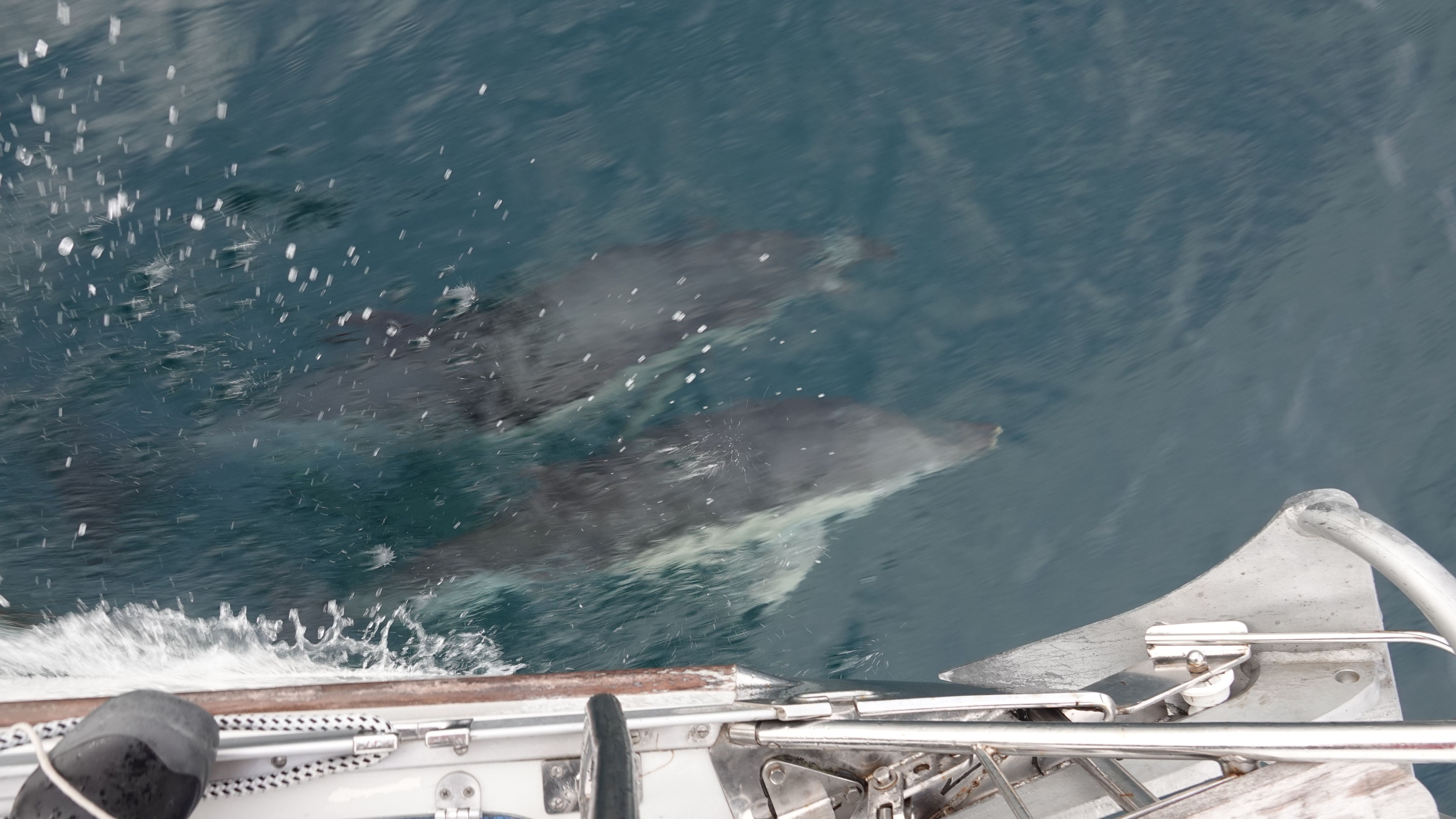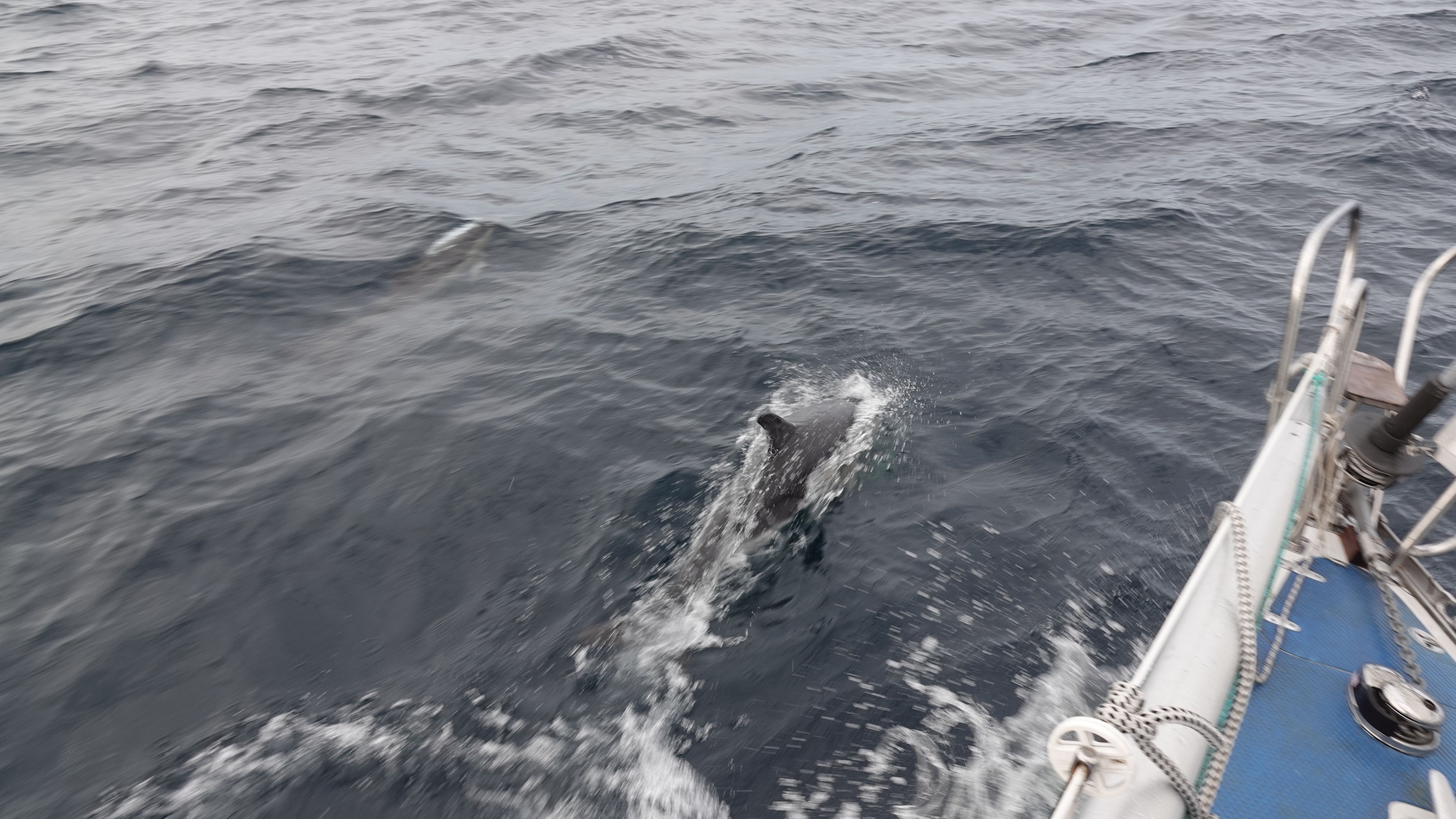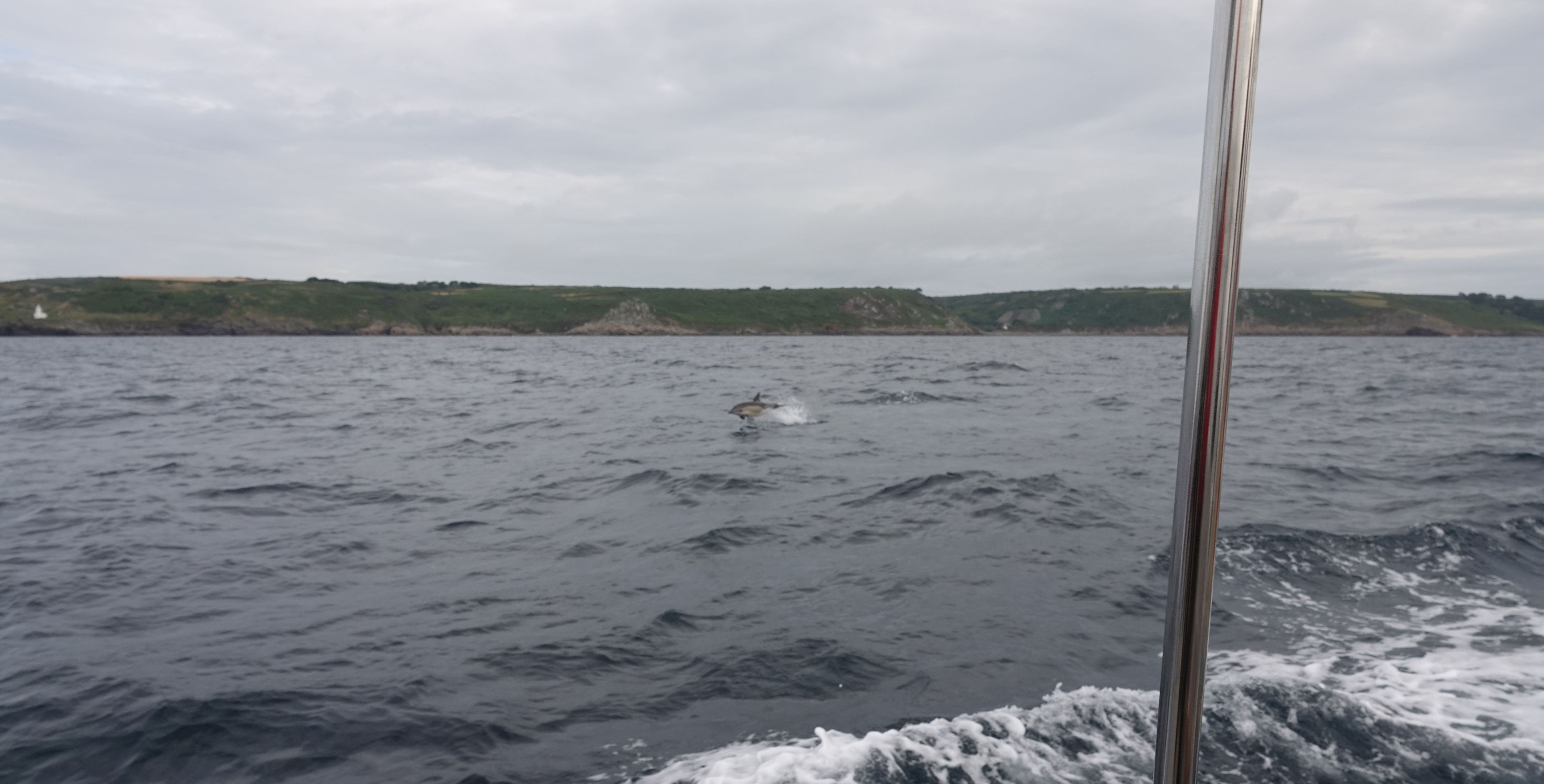 Die gesamte Küste entlang, von Newlyn bis Land's End kommen immer wieder Delfine heran und spielen um Lua herum.
