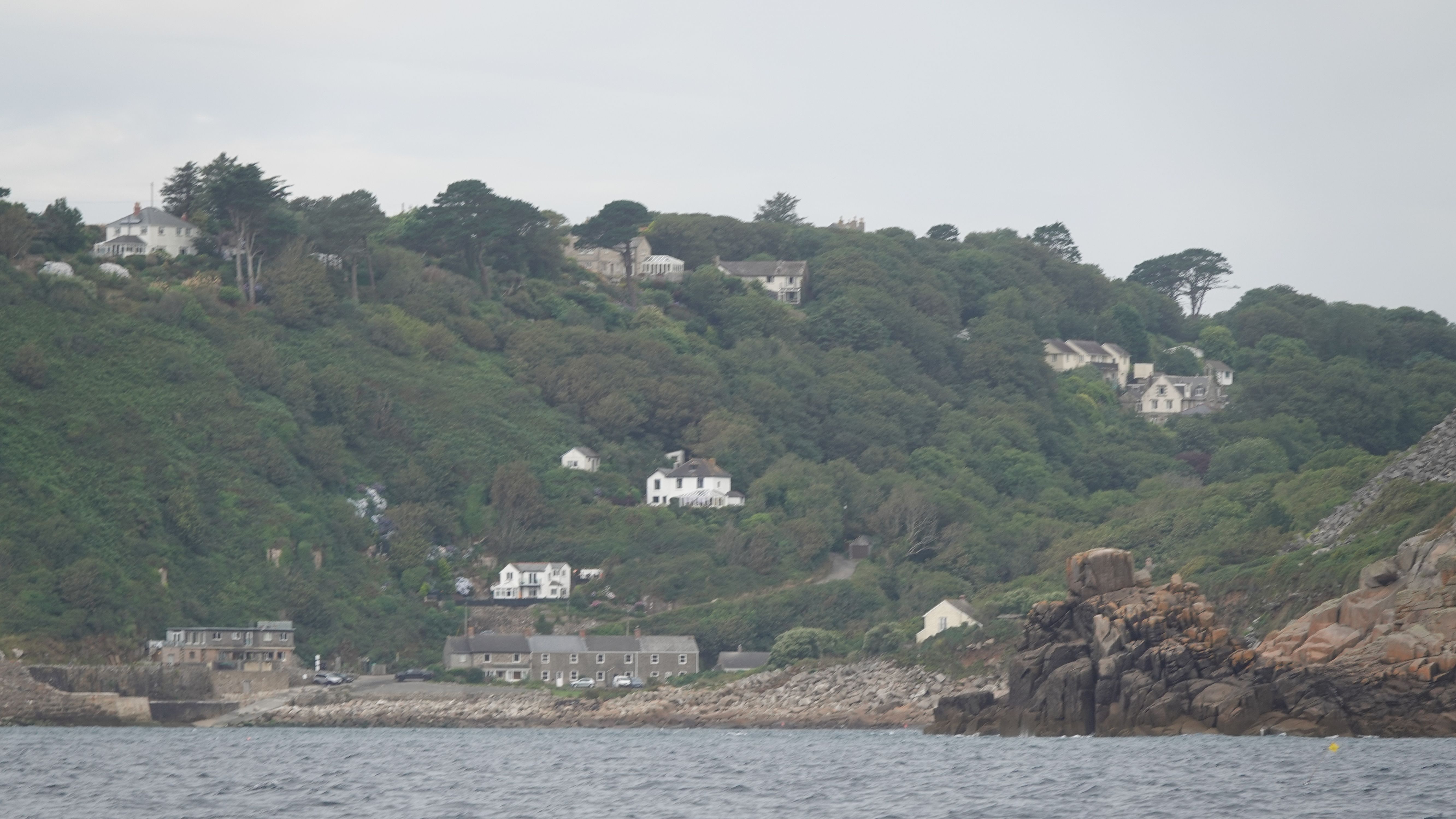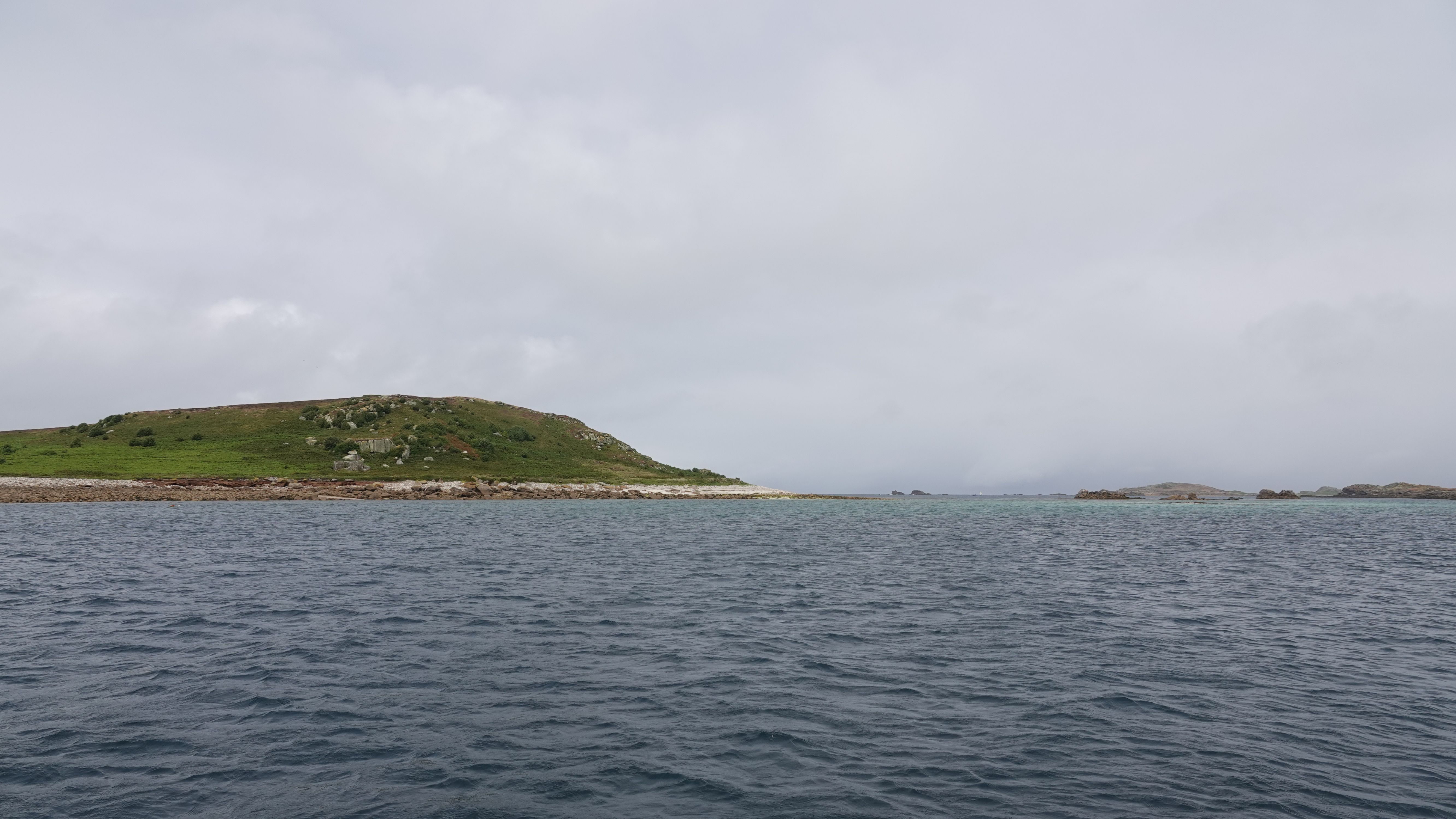 Im Schutz von Round Island geht es über ruhigeres Wasser dicht an zwei Rockies vorbei und über ein Flach hinweg in tieferes, nahezu glattes Wasser. Das ist St Helen's Pool, einer der wenigen Ankerplätze auf den Isles of Scilly, der gegen alle Windrichtungen geschützt sein soll und mein Zuhause für die nächsten zum Teil recht stürmischen Tage.