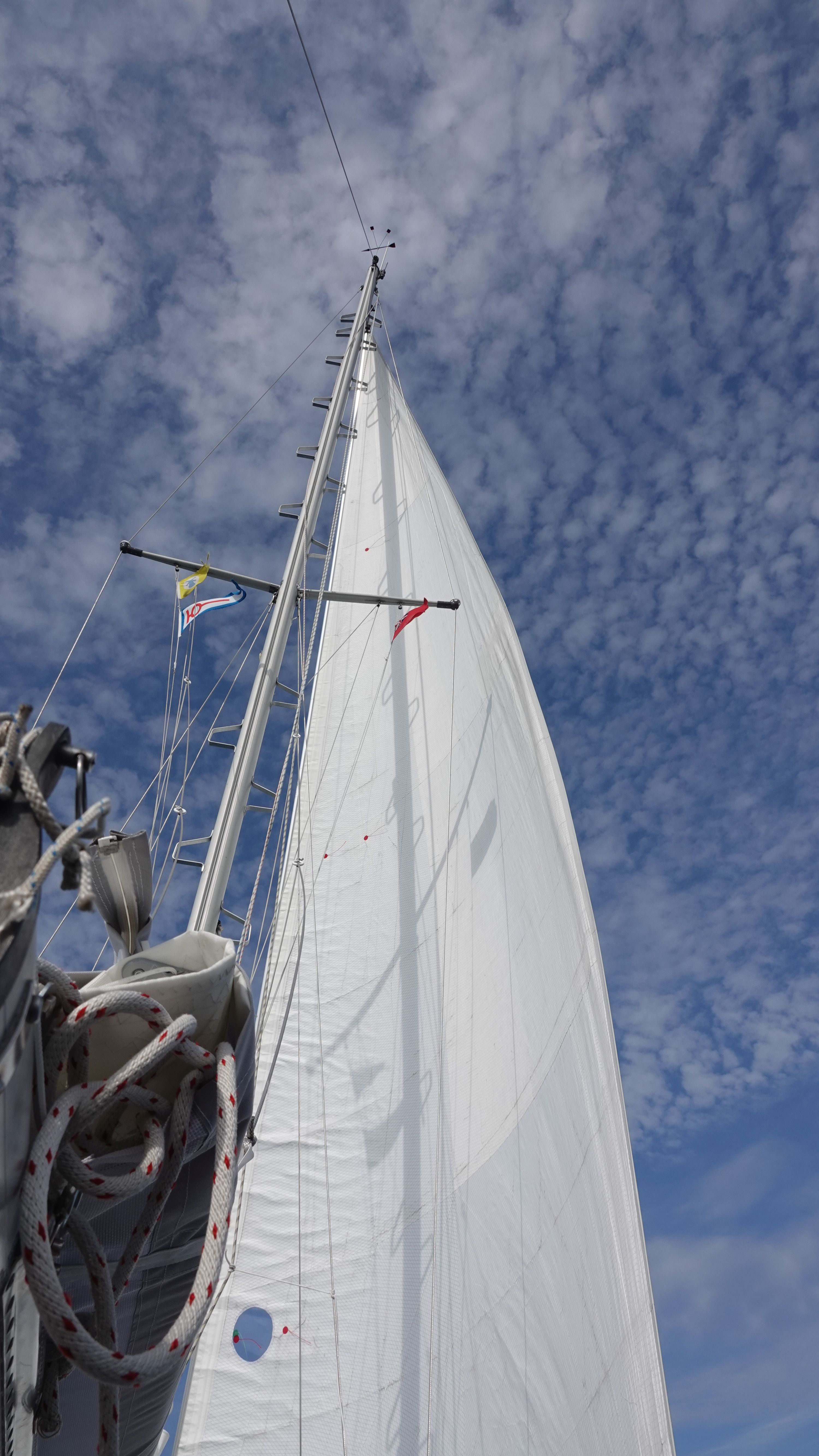 Ich mache es wie die Locals und starte die erste Stunde motorsegelnd um genug Höhe zu laufen und vernünftig aus der Bucht herauszukommen. Der Wind beginnt schwach, nimmt im Laufe des Tages aber immer weiter zu.