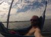 Beim Abendessen hängt ein Mückenschwarm über der Plicht. Mit WC-Duftspray lassen die sich etwas verscheuchen, aber nie für lang. Den Sonnenuntergang schaue ich mir überm Vorschiff in der Hängematte an. Dabei besucht mich noch kurz ein Schweinswal und taucht direkt unterm Bug hindurch. Anschließend flüchte ich vor den Mücken unter Deck.