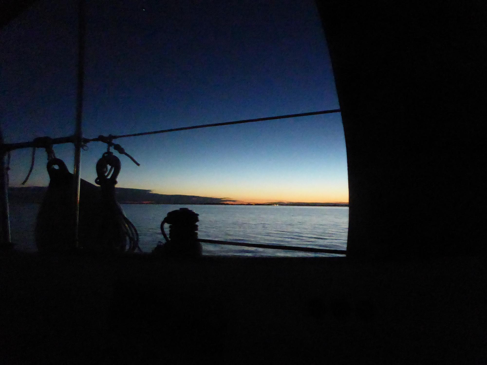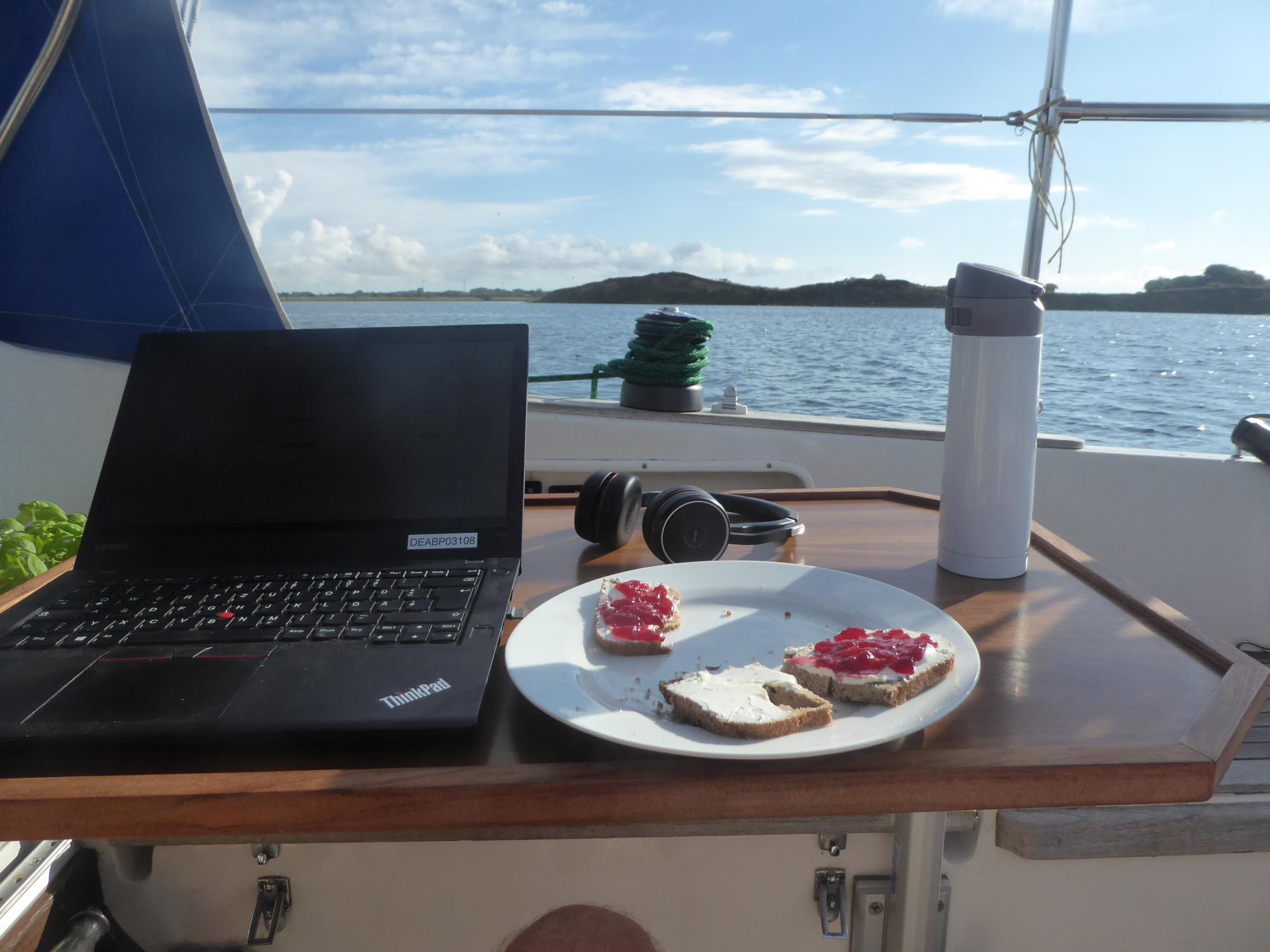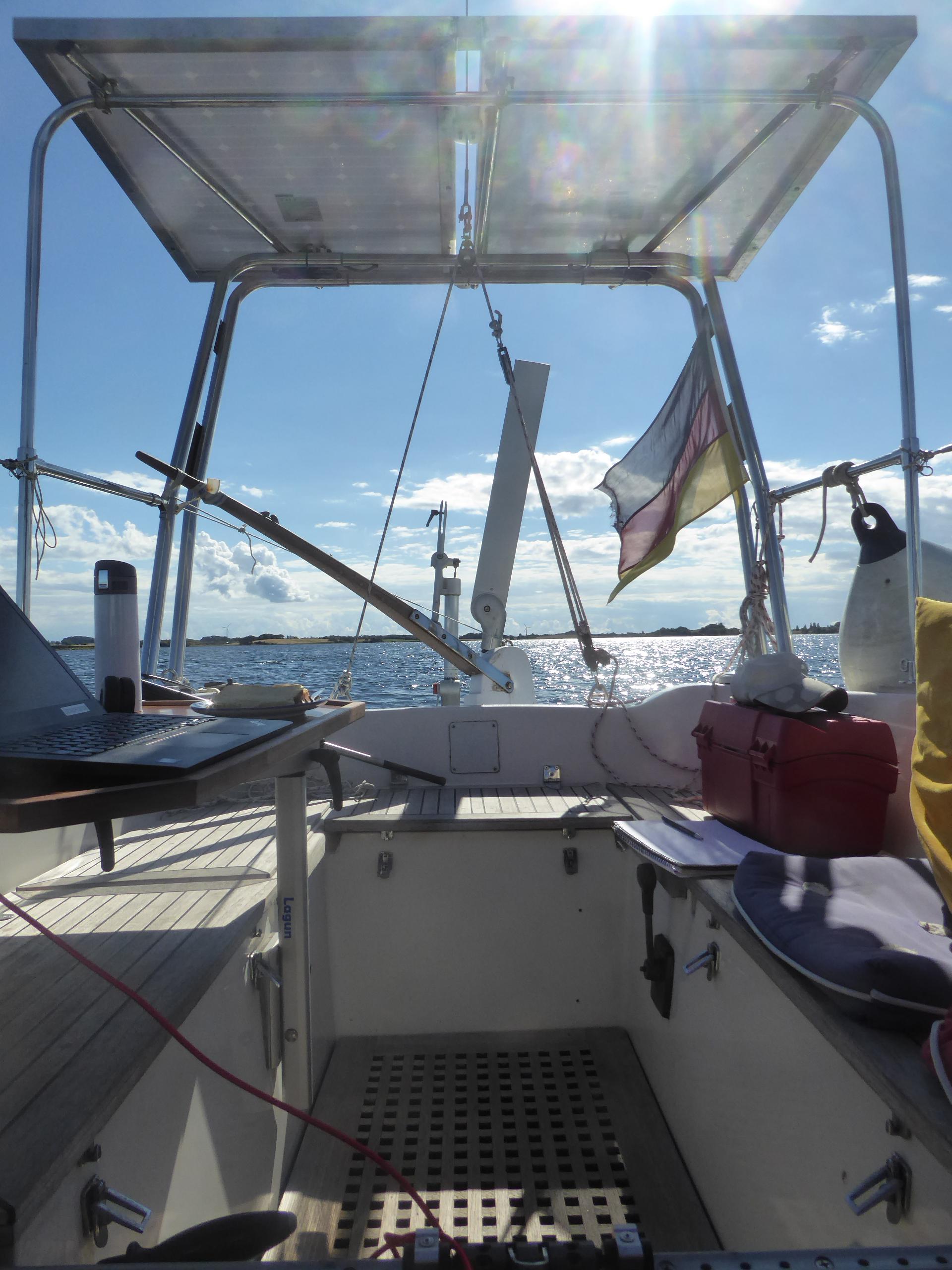 Kurz nach sieben eröffne ich das Büro Es ist grau, kalt und nass vom Regen in der Nacht. Als um halb zehn die Sonne rauskommt schmiere ich mir ein paar Frühstücksbrote und ziehe ins warme Cockpit um.