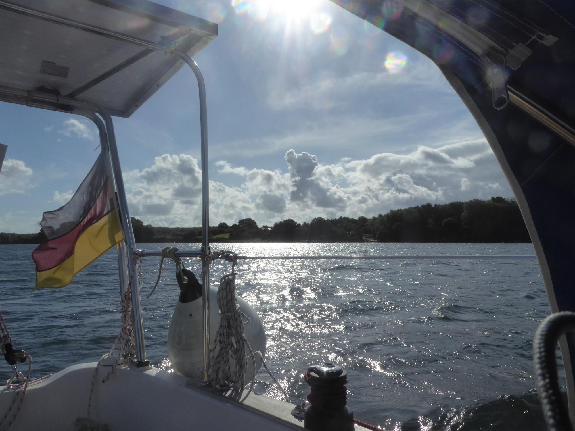 Hand an der Pinne, die andere an der Großschot um schnell fieren zu