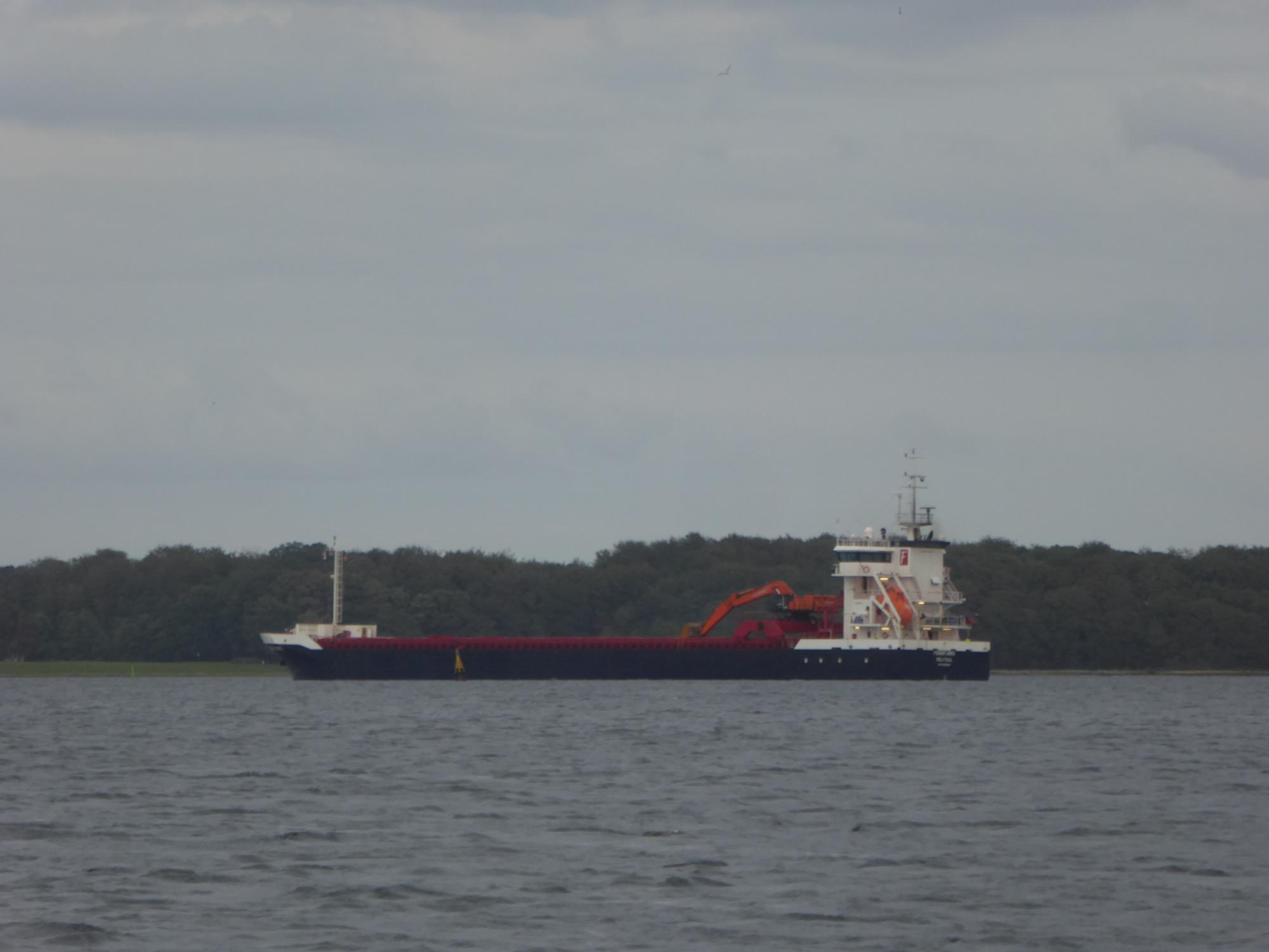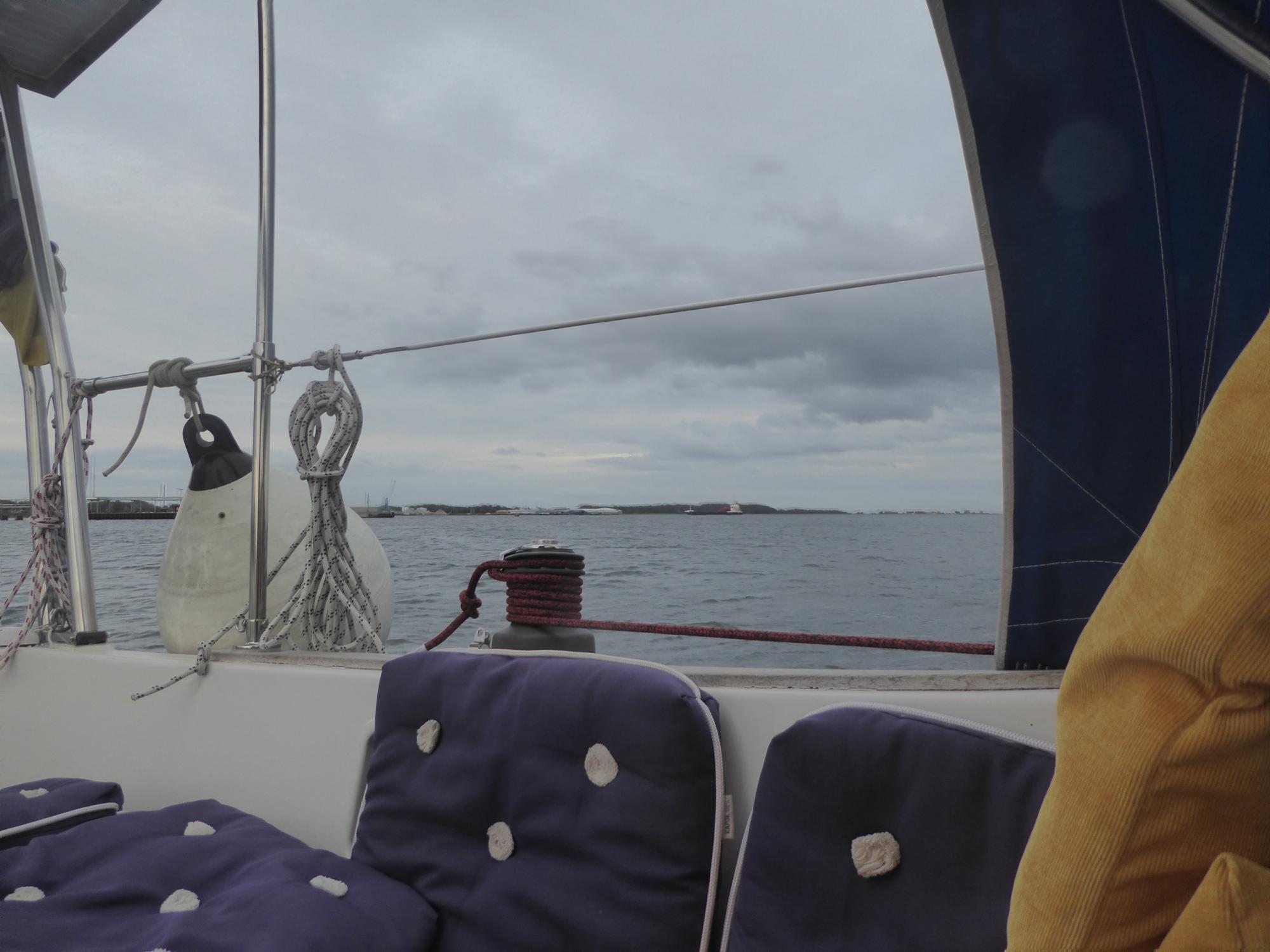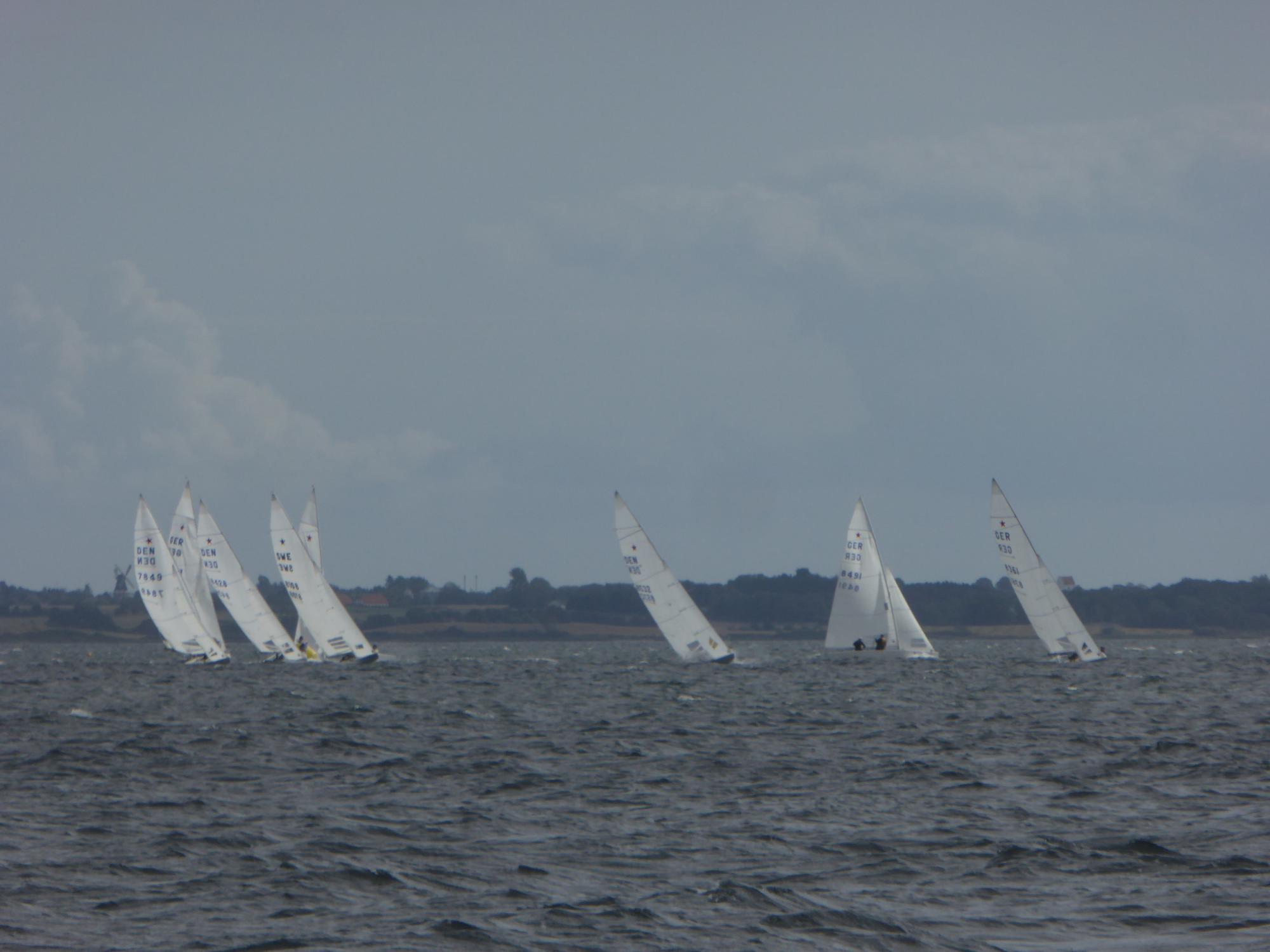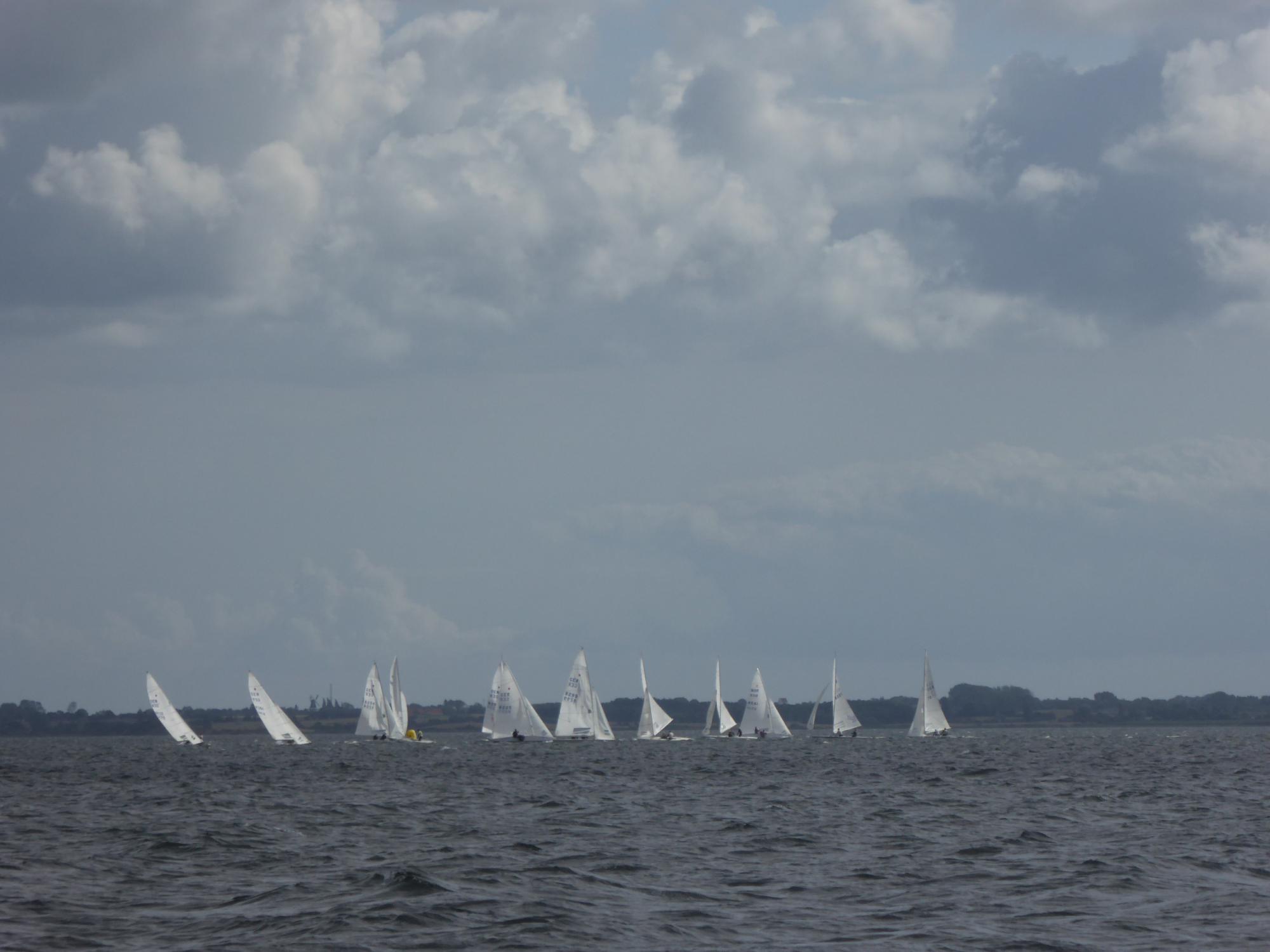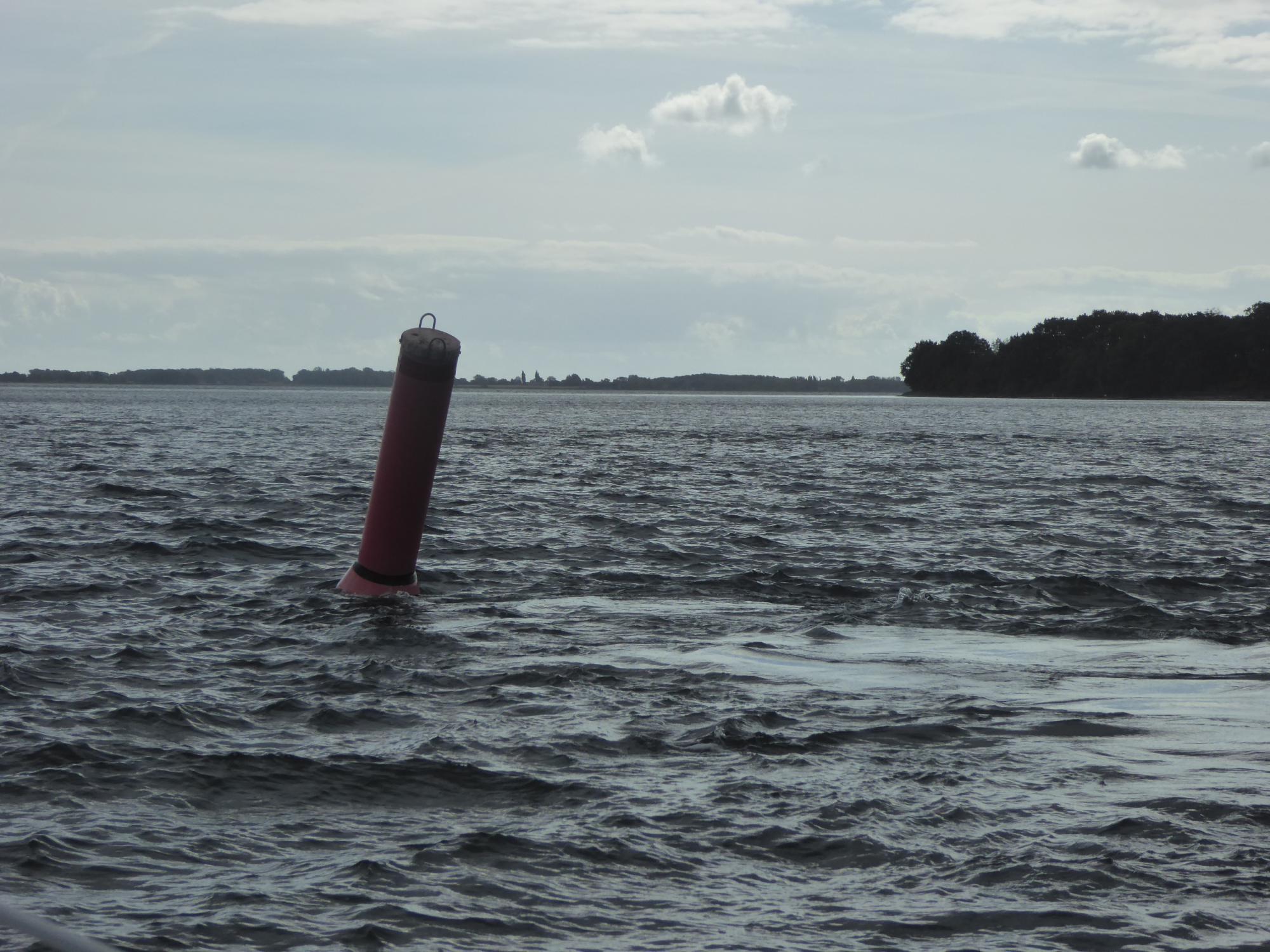 Um ein Uhr mache ich Feierabend und breche auf nach Nyborg. Im Sund habe ich fast das Gefühlt rückwärts zu fahren, so stark drückt der Strom in den Sund hinein. Ich starte mit dem zweiten Reff im Großsegel, schütte das allerdings bald aus. Auf dem Nordkurs lässt der Wind nämlich nach. Mit vollen Segeln steigt meine Geschwindigkeit auch zügig von viereinhalb auf sechseinhalb Knoten. Unterwegs bekomme ich ein paar leichte Schauer ab, überwiegend ist es aber sonnig.
