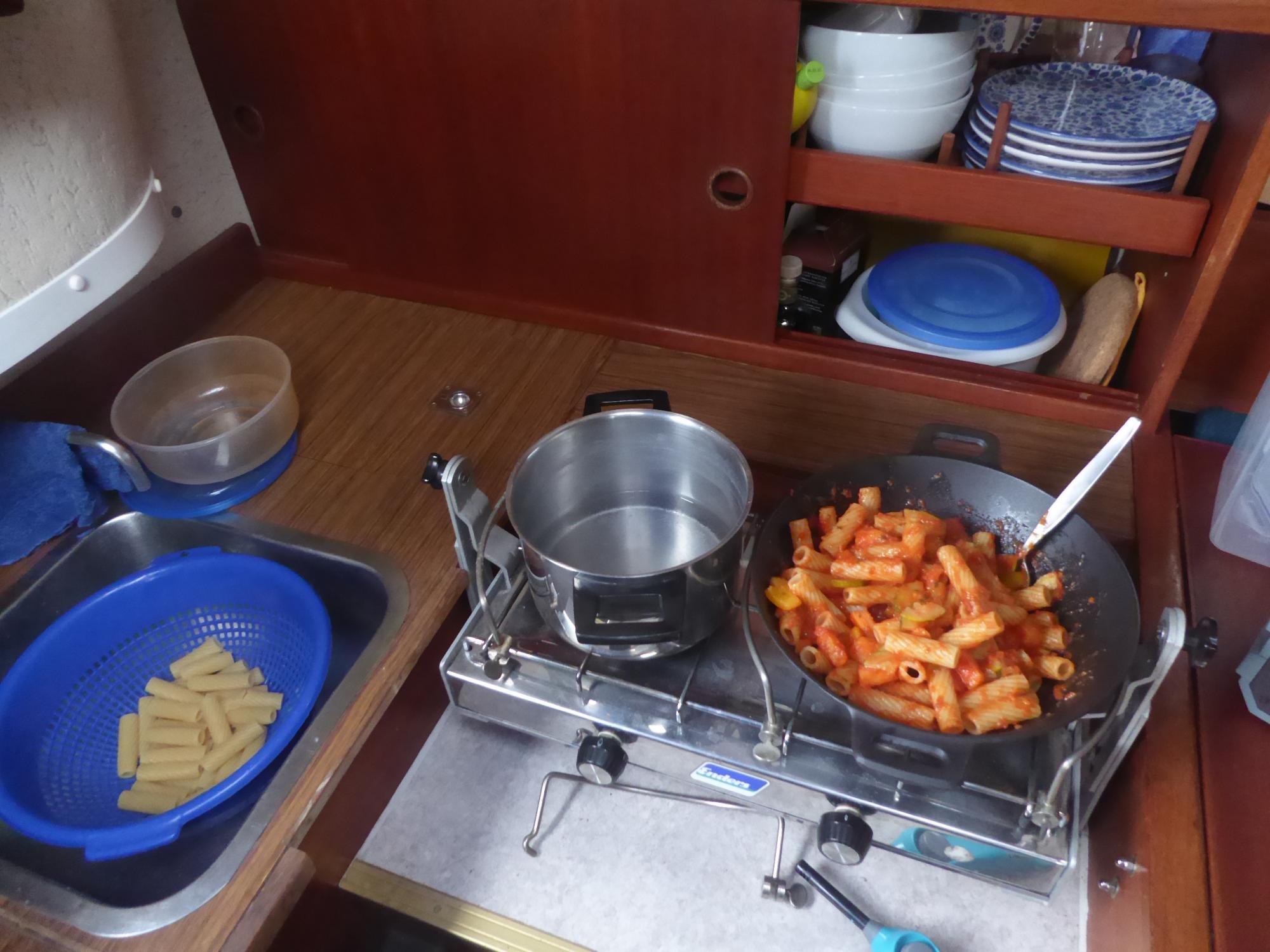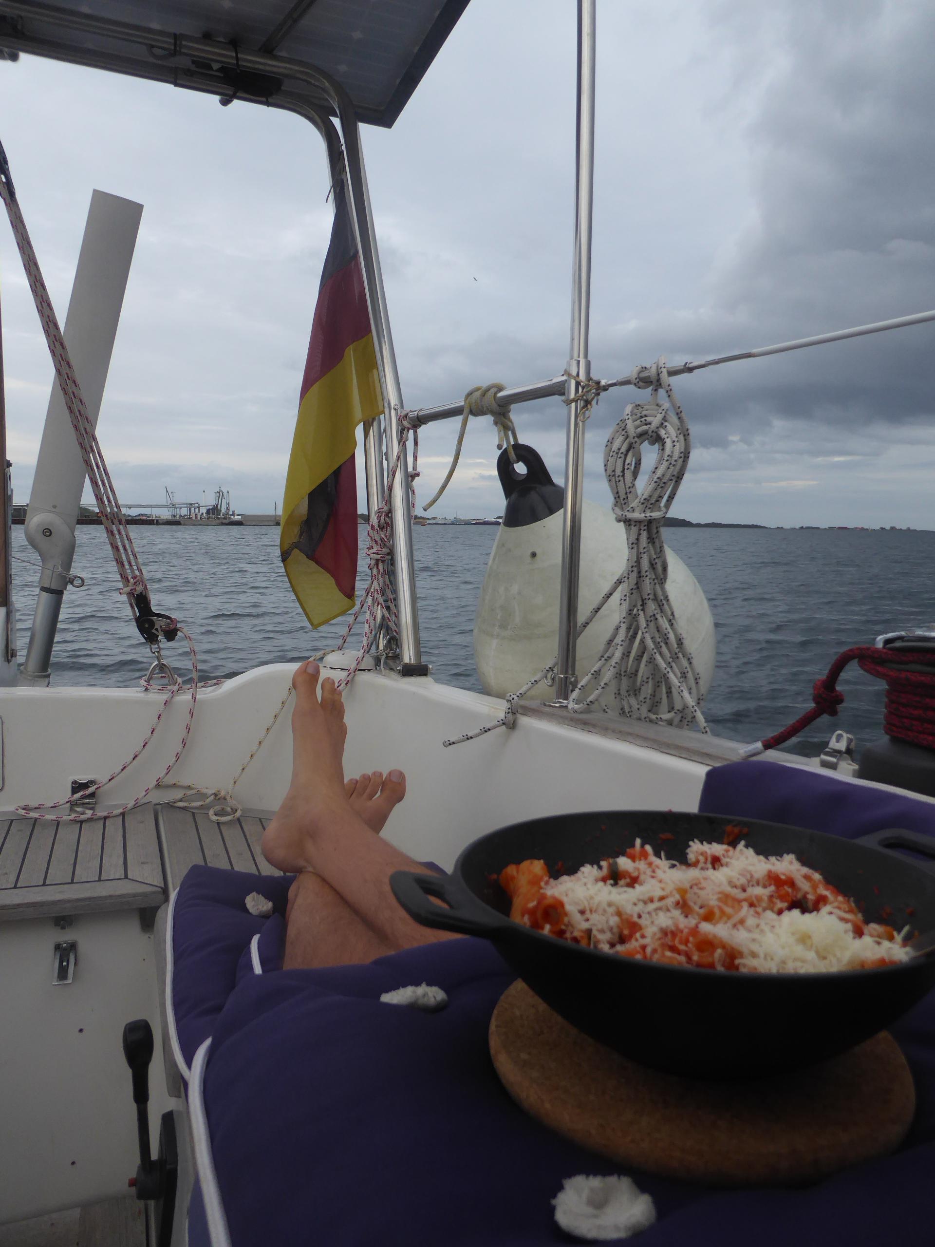 vor Anker. Nicht unbedingt der idyllischste Ankerplatz, aber vor Wind